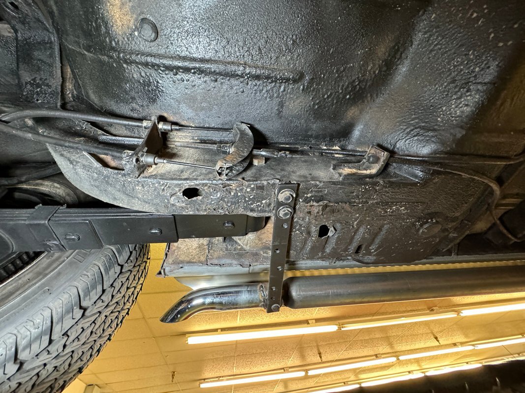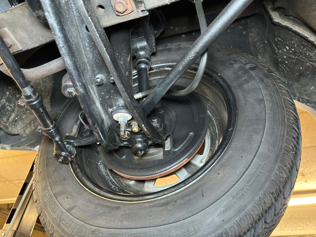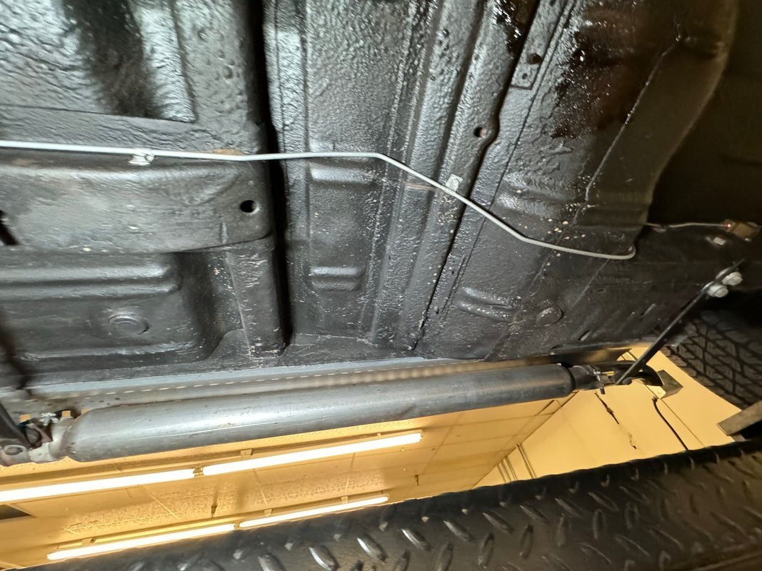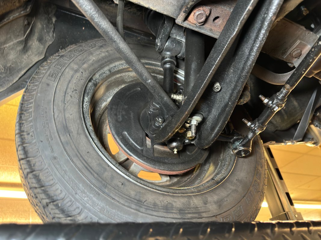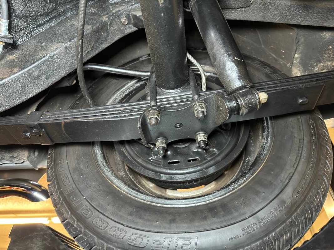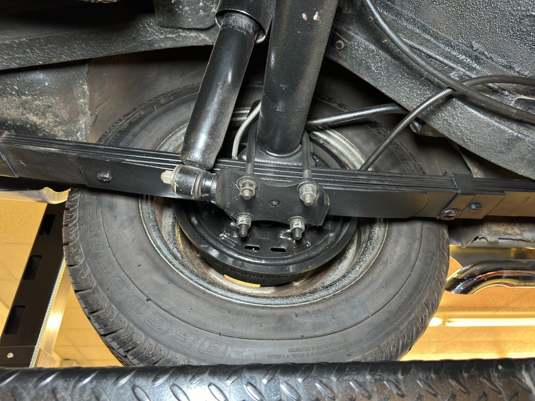 The car has been driven less than 500 miles since the restoration was completed in 2020, and it shows underneath which is nearly spotless. Under here, the Moser axles, pitman arm, and rear leaf springs are newer. Coil springs are up front. There's no surface rust or oil leaks, no dirt, and no grease built up anywhere. If not for some minor dust and road splash and basic patina, the underside would rival day one off the assembly line. As noted, the exhaust leaves the engine and immediately heads to the sides where side pipes send the spent gas along their way down the rocker panel, guarded by and dressed up with the louvered heat shields.