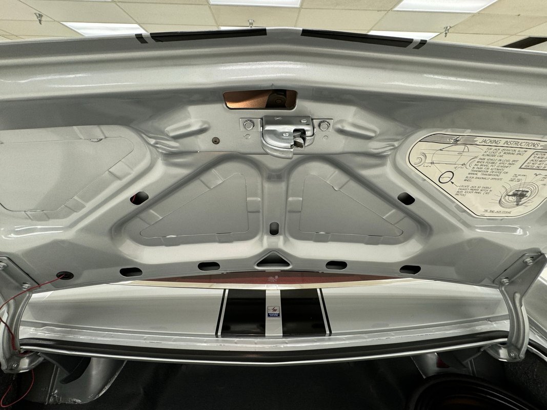 The car was stripped to bare metal in 2011, rusted metal was replaced with new, and a coat of the original color, Turbo Silver Metallic was applied along with Over the Top Go Package stripes in black. At this time, 15-inch chrome Magnum 500 wheels were fitted along with the correct AMC deep dish center caps and redline tires. A Trendsetter Sidewinder side exhaust system was added along with new hardware, mirrors, and rechromed bumper guards. Gaps are spot on, and the slim tail light flanks a black band with AMX spelled out at the point where the stripes terminate. The profile is unique with steeply leaning B-pillars that bleed into the rear haunches, while a long nose reaches back to the sloping windshield and there's simply no mistaking this car as any other except the longer Javelin. The paint, chrome, and stainless is near flawless on this car and we could not find any glaring imperfections.