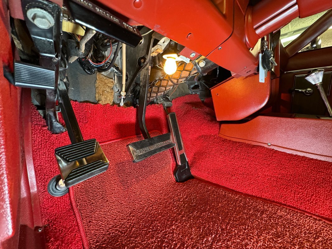 Under the hood is the gleaming 390ci V8, rated at 315 horsepower and equipped with an Edelbrock R4B intake manifold under an Edelbrock 650cfm 4-barrel carburetor. Setting the car into motion is a Borg Warner M12 3-speed automatic transmission which sends power to the rear equipped with AMC Twin Grip and 3.15 gears. Power brakes are onboard with discs in front and drums in the back and much of it is new as of 2019 including wheel cylinders, rotors, drums, pads, and shoes. Lines, hoses, and a master cylinder were put in in 2011 along with a new wiring harness.