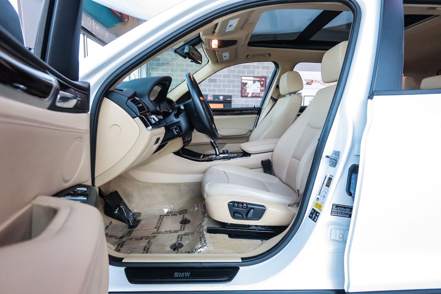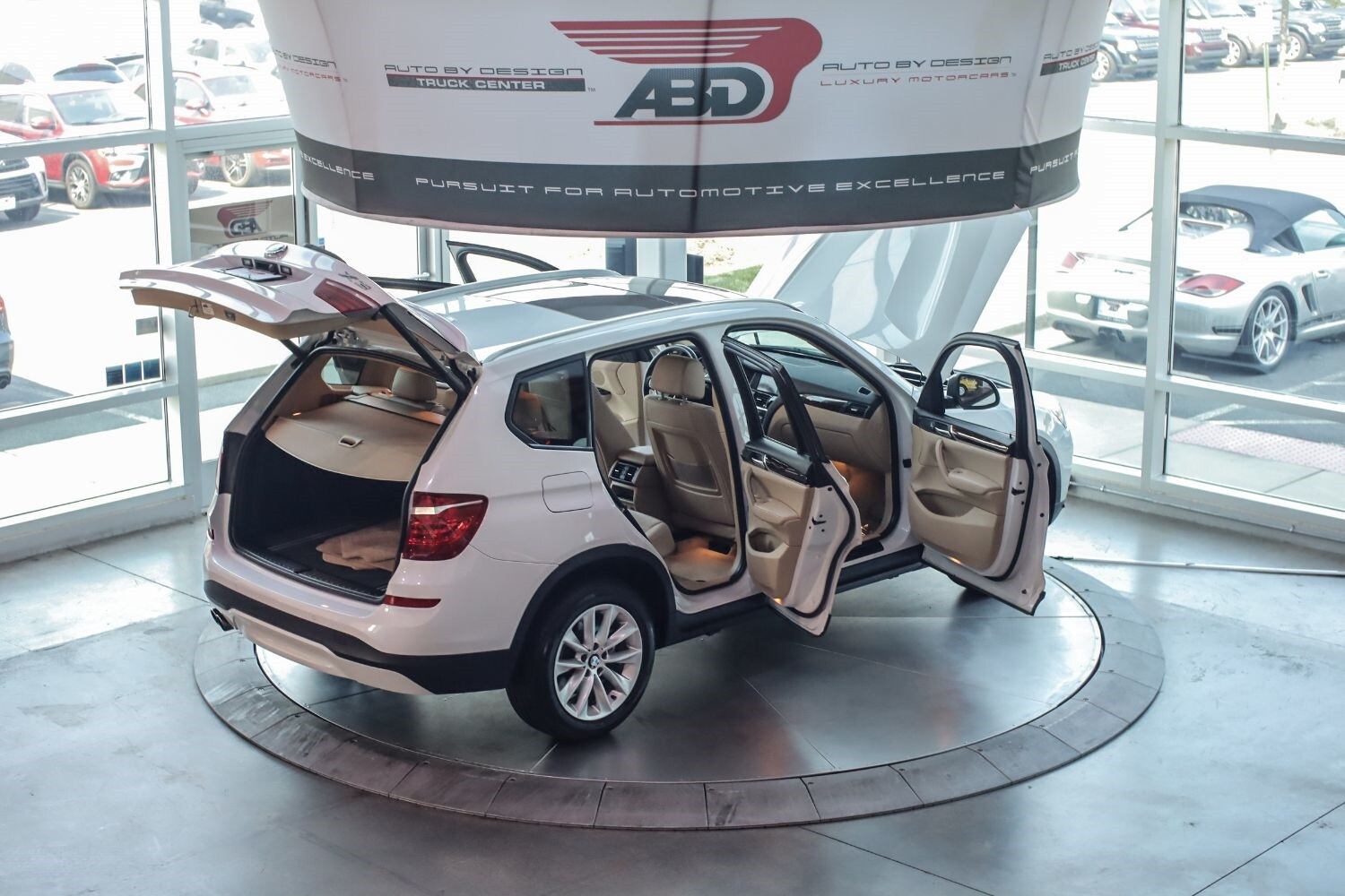 LUXURY AND COMFORT BMW X3 AWD! This 2016 BMW X3 xDrive28i is Finished in Mineral White Metallic with Sand Beige Nevada Premium Leather Interior! Powered by 2.0L L4 Turbocharged Engine mated to a 8-Speed Steptronic Automatic AWD Transmission. This Amazing BMW X3 Comes Optioned with Premium Package, Roof Rack Rail, Panoramic Sunroof, Power Heated Seats w/Memory, Rear Heated Seats, Sport/Eco Pro Drive Select, Multifunction Steering Wheel w/Paddle Shifters, Reverse Camera, iDrive Interface, Bluetooth, CD Player, Dual Zone Automatic Climate Control, Keyless Entry, Xenon Headlights, Fog Lights, LED taillights, 18 Inch Factory Wheels wrapped in 245/50R18 Pirelli All Season Tires. This 2016 BMW X3 xDrive28i is well-regarded for its balance of performance, luxury, and practicality, making it a strong contender in the compact luxury SUV segment. This BMW X3 xDrive28i Has been Fully Serviced and Inspected. ******* Auto By Design strives to provide you a worry free buying experience! All of our high-end vehicles are processed through a Free Multi-Point Inspection to ensure that the vehicle is of Highest Quality & Drivability. This Vehicle will come with our Free Oil Change and Multi Point Inspection for Life Program, including FREE SHIPPING Right to your doorstep with our No Haggle Free Online Pricing. Please ask your representatives for more information certain inventory vehicles may not be eligible,***certain exclusions may apply*. ******We also offer shipping logistics worldwide, as well as special financing with rates as low as 5.79%** for well qualified buyers**. Auto loans are our specialty. We are experts in helping individuals with good and bad credit to help obtain a car loan for the purchase needs. Please inquire with our associates.