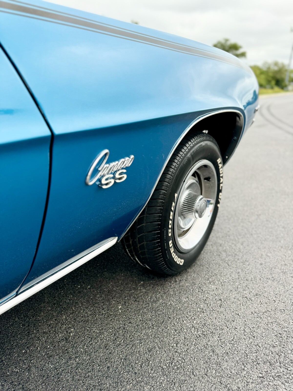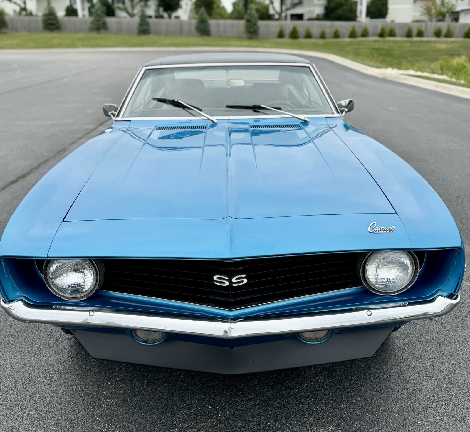 This 1969 Chevrolet Camaro SS is a classic car that has been restored to its original glory. The owner has had the vehicle for 2 years and has put a lot of time and effort into cleaning and maintaining it. The car runs great and is perfect for those who love to attend car shows. The blue color is vibrant and eye-catching, making it a great addition to any collection. The mileage on the car is 39,000, which is considered low for a car of its age. Make a statement about the cleanliness and overall appeal of the vehicle.Seller's Notes