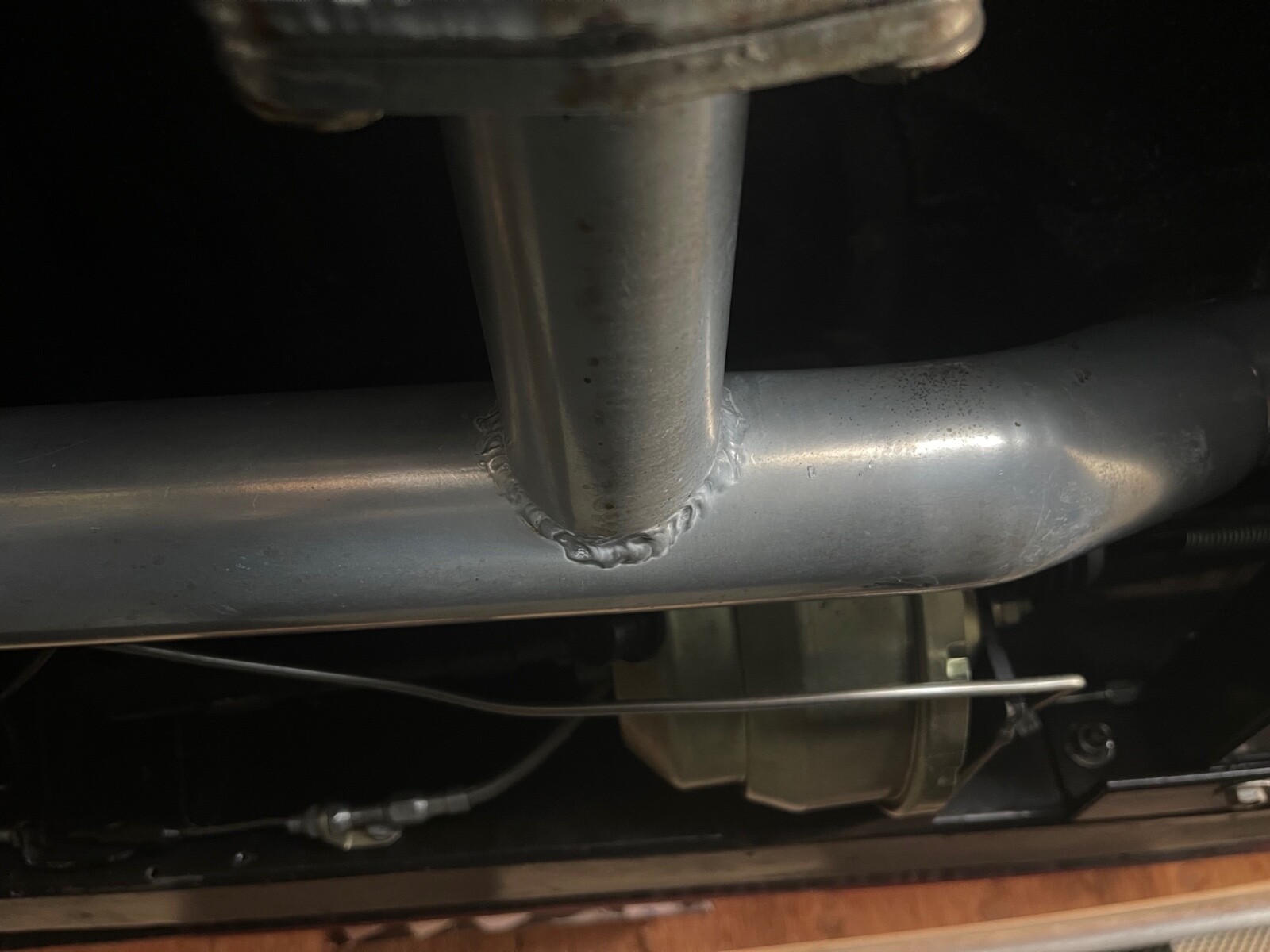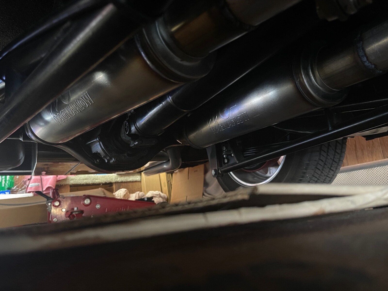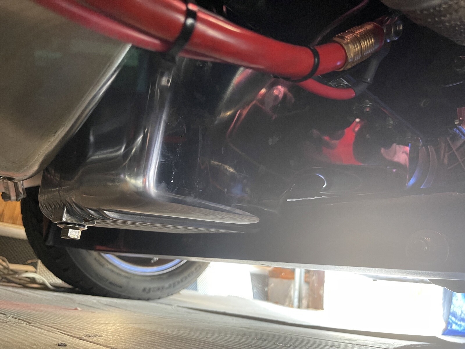Engine stays cool thanks to a custom triple pass aluminum radiator with a brand new Spal brushless series fan.Other notable features include: Ford 9 inch limited slip differential rear end, traction bars, custom audio sound sound system, and engine dressed up with polished aluminum and serpentine belt system, ceramic coated 2.5 in exhaust. New floorpans front/rear/trunk at time of restoration. Floor pans undercoated and frame painted black.