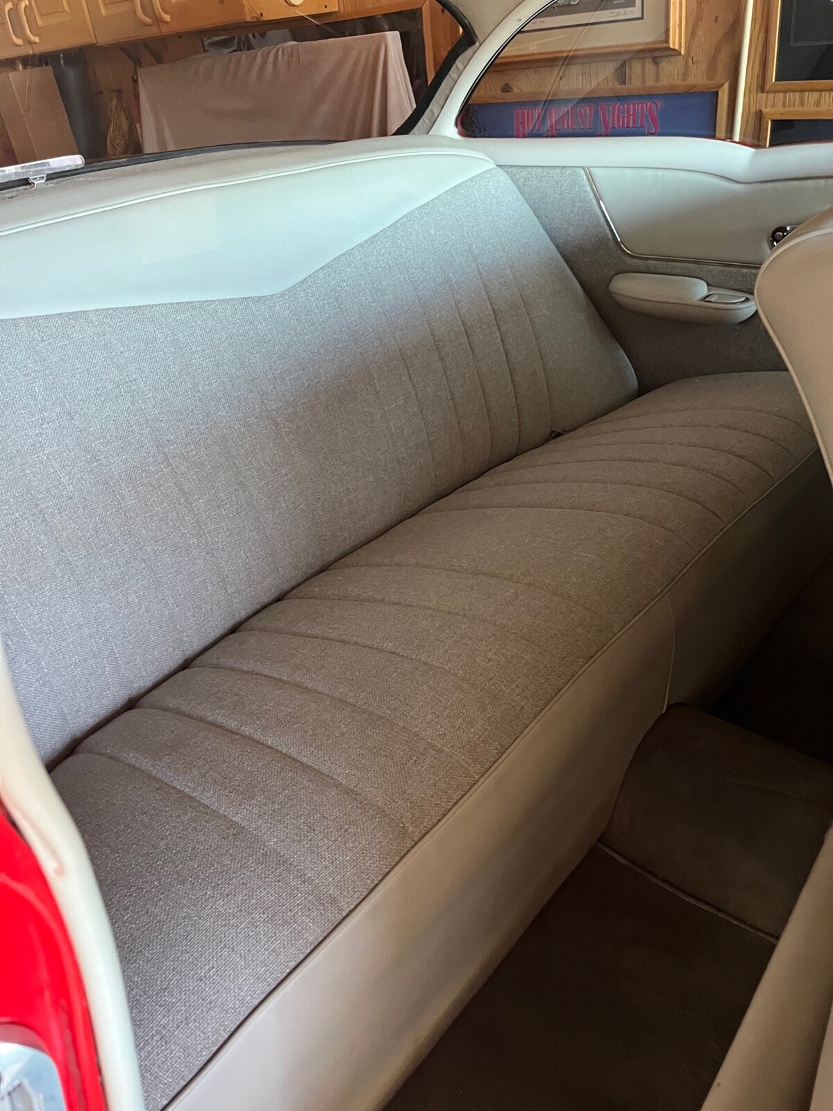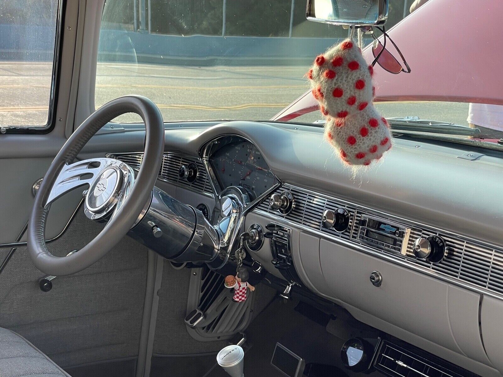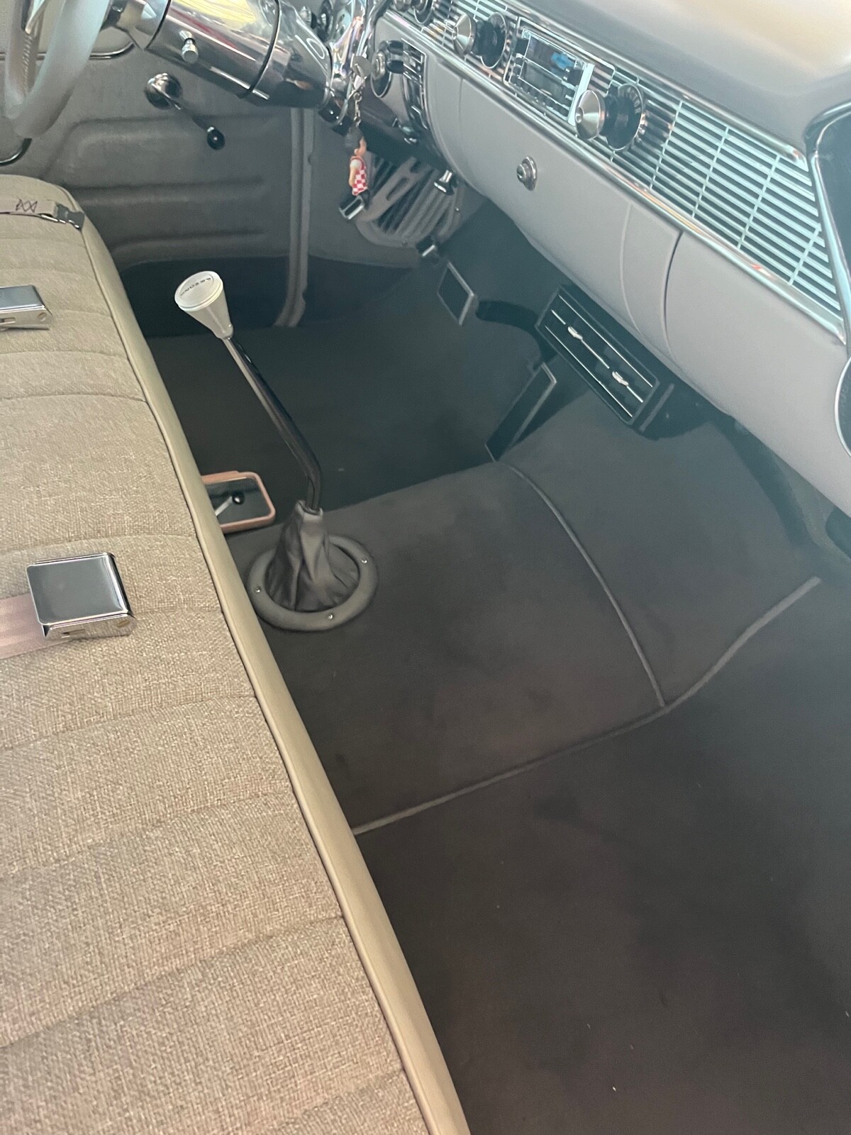 This is a 1956 Chevy 210 Post after complete restoration. This classic works mechanically to perfection! Stay cool in the heat of summer with Vintage Air AC, or warm on a cold night with the perfectly working heater. You’ll be comfortable and riding in classic 50’s style on original seats reupholstered in leather and tweed (gray).