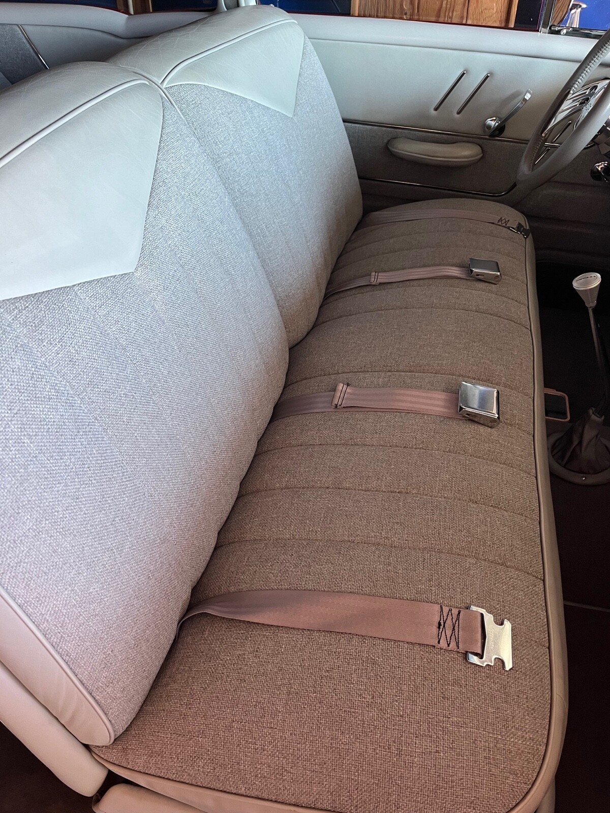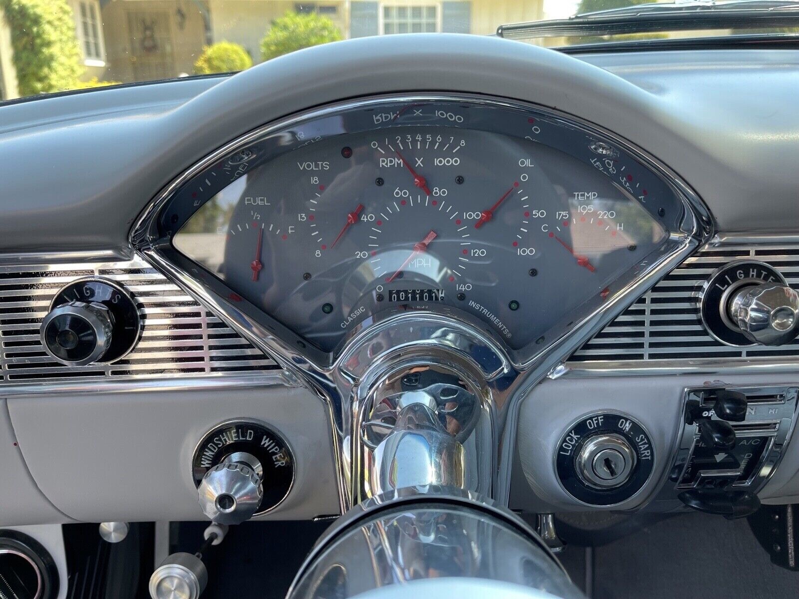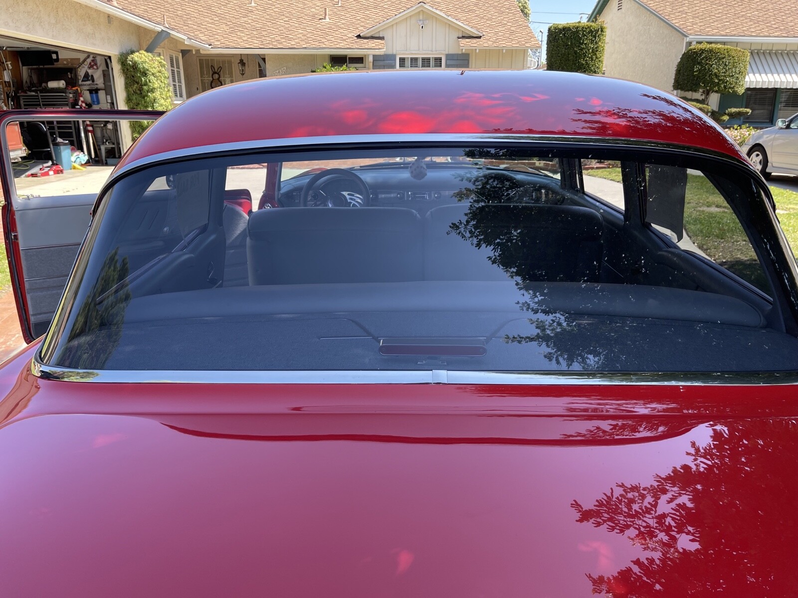This is a 1956 Chevy 210 Post after complete restoration. This classic works mechanically to perfection! Stay cool in the heat of summer with Vintage Air AC, or warm on a cold night with the perfectly working heater. You’ll be comfortable and riding in classic 50’s style on original seats reupholstered in leather and tweed (gray).