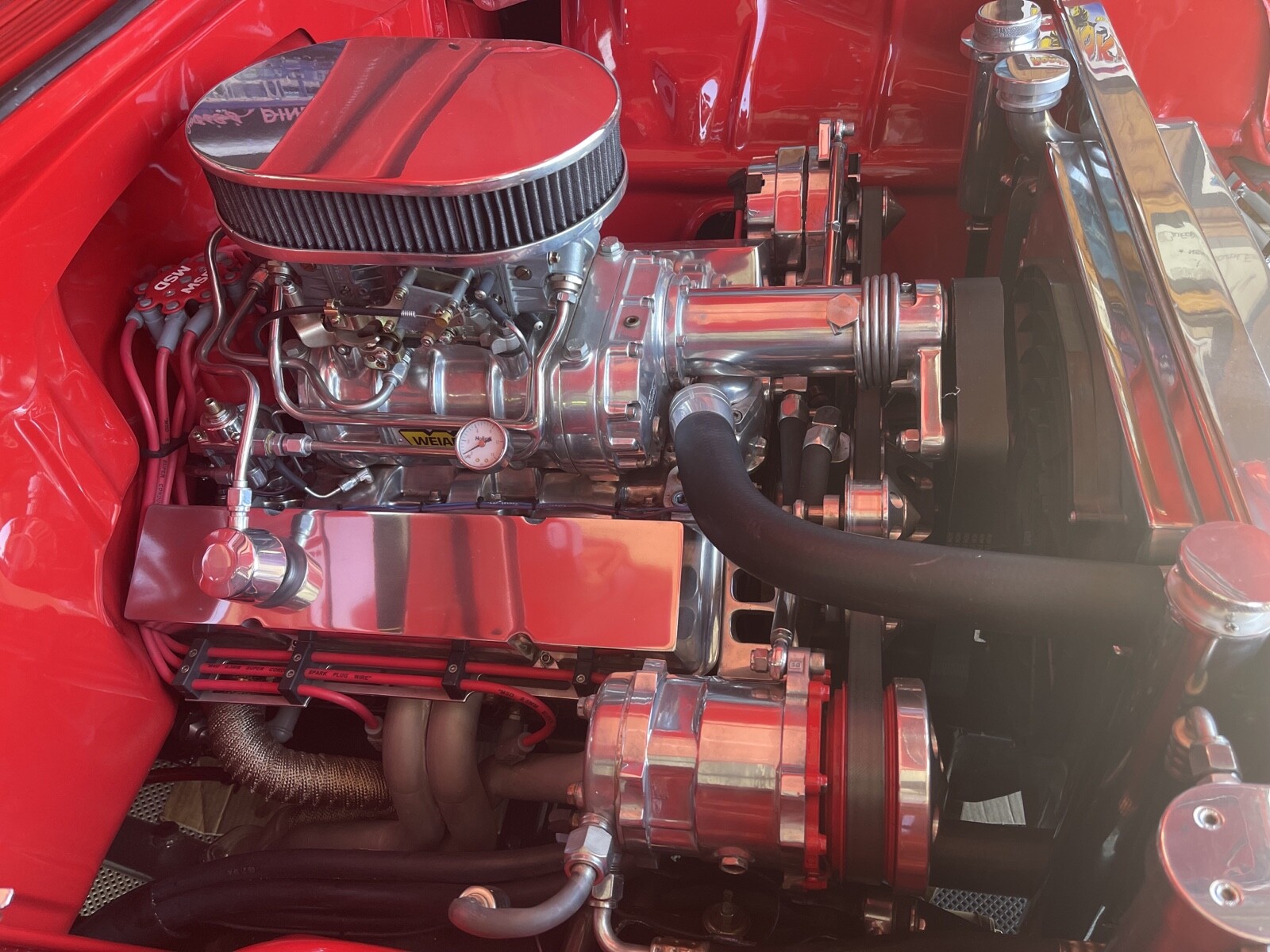 This car truly drives like a dream, hugging the road flawlessly with the help of coil over suspension, anti sway bar, power rack and pinion steering, and stainless steel upper and lower control arms by Heidts Hot Rod Shop and of course power disc brakes.Under the hood is where you’ll find a fully dressed, supercharged 350 engine.