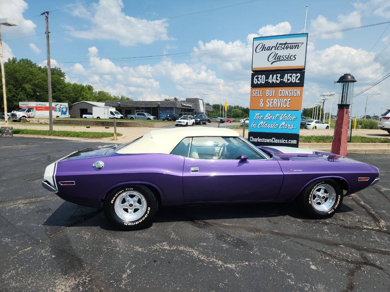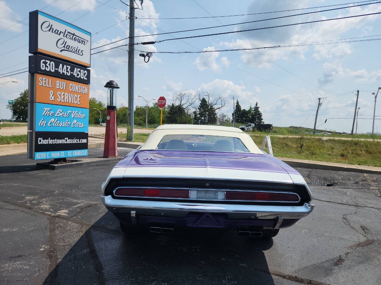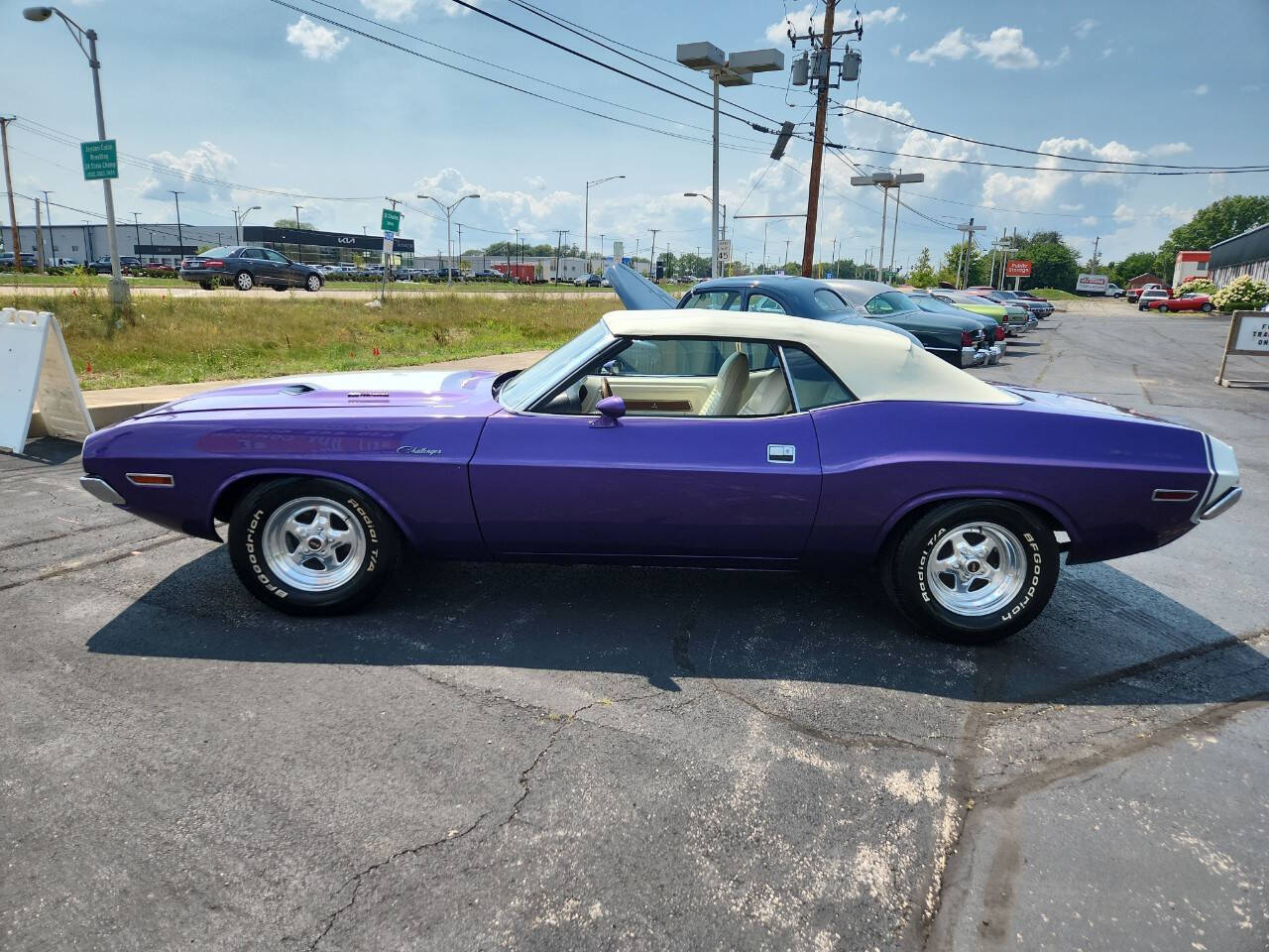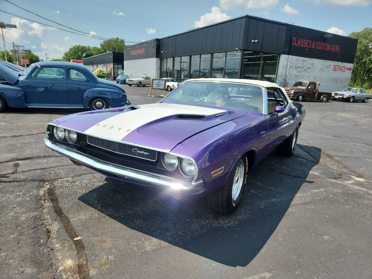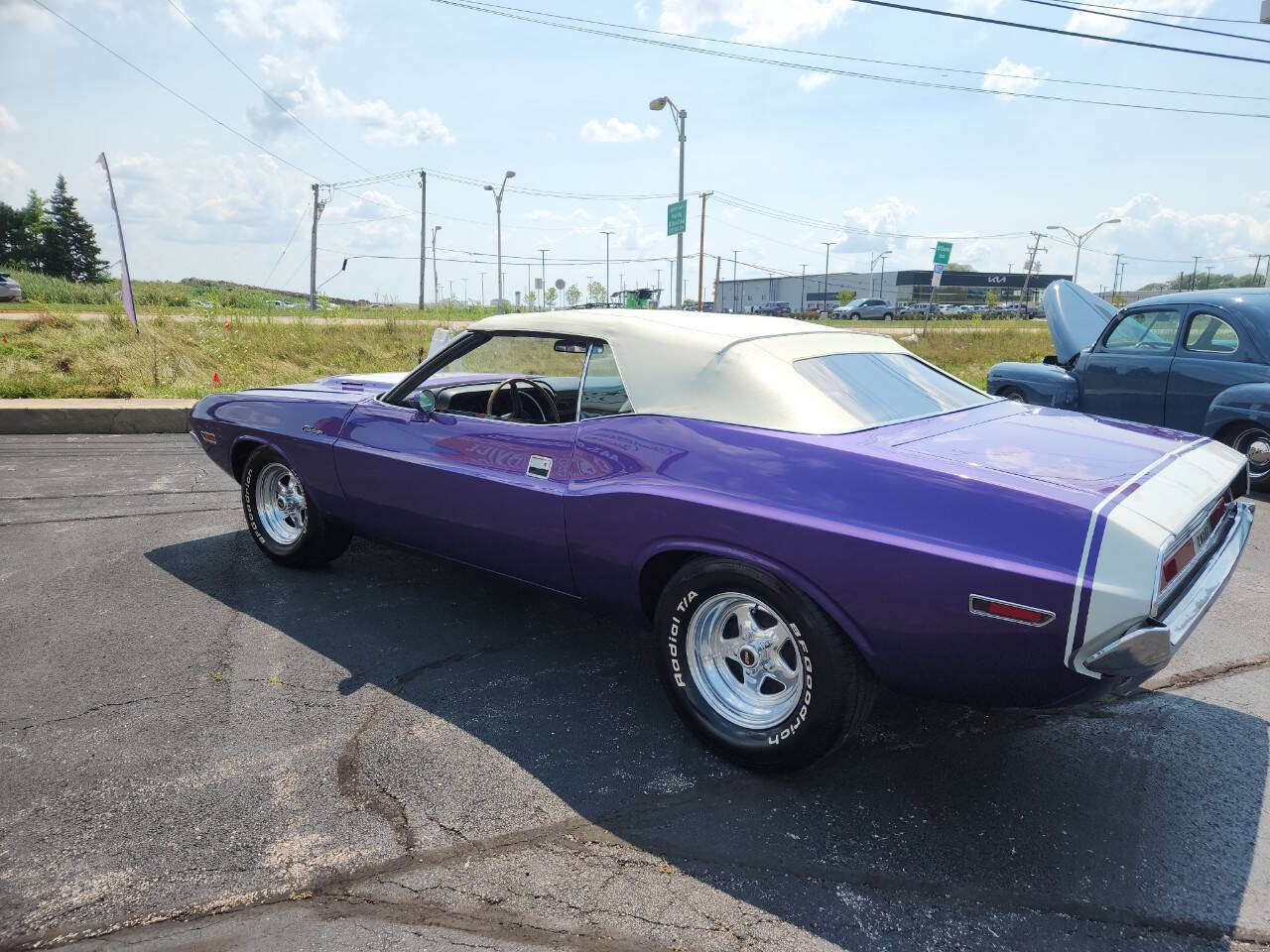 1970 Challenger Convertible , 383 cu in, auto trans , beautiful Plum Crazy Purple paint, Deluxe White top in prefect condition, beautiful White interior, 212 383 cu in Challenger made, less the 20 Plum Crazy Purple! Floor shift A/C , Power Windows, Dual Exhaust, Carter Carburetor. Runs and sounds nice. We just change coolant , oil & filter, Trans service and selector shaft seal, power steering seal, fuel filter, brake flush! Call now won't last long!!!