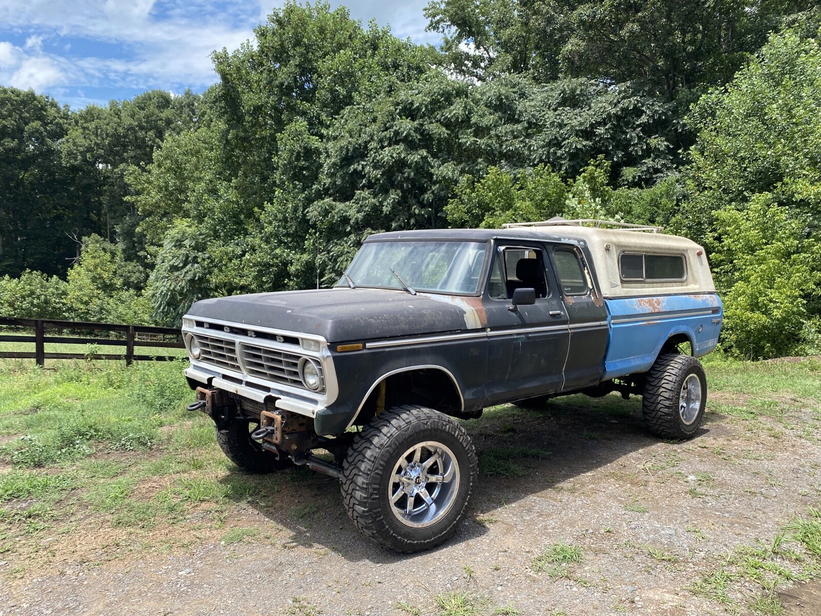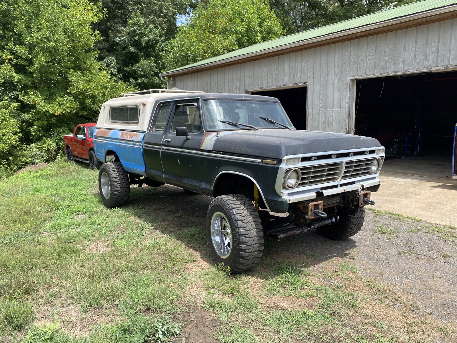 2004 f350 6.0 powerstroke 4x4 automatic with a 1974 supercab on top. It has the frame, suspension, drivetrain, floor, fire wall, and dash of the 2004. I have clean titles for both. 260k miles. Zero blow by. It starts, runs, drives, shifts, and stops as it should. No codes or check engine lights. Power leather seats, hot heat and cold ac. Air ride rear suspension and drop through gooseneck. The body is rough. It will need cab corners and door jam corners. 20x12 fuel mavericks with brand new 37s. Just installed new water pump, wheels hubs, front brakes, radiator, ac condenser, hvac mode door actuator, batteries, and had the ac evacuated and filled for the summer. It’s a project but a dependable one.