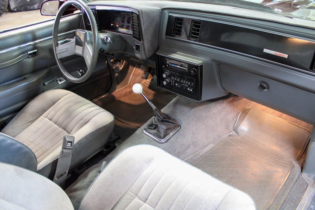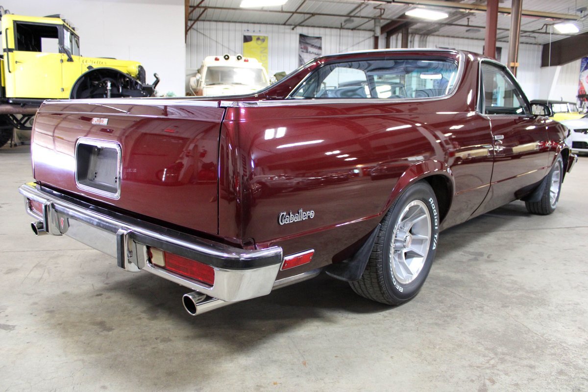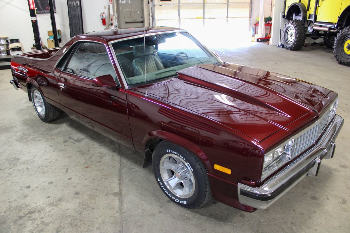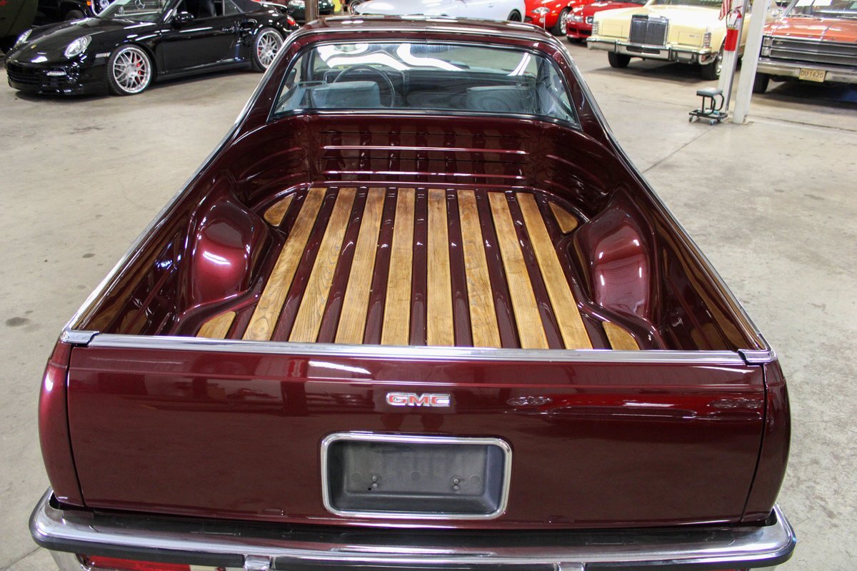 From 1971 through 1987, GMC took Chevrolets platform, which had been being sold since the late 1950', and the El Camino nameplate and pretty much duplicated it. The first and second-generation cars (71-72) and (73-78) were called the Sprint and the third and final generation cars built from 1978 through 1987 was called the Caballero. These vehicles were a cross-over car/truck and what is interesting is that these style vehicles are still being built today in Australia, called Utes. This particular absolute stunning Caballero is better than new and features a couple really cool modifications. First off, is the Tremec 5-speed manual floor shift that has been very nicely executed as well as the year correct bucket seats vs. the factory bench that would have been offered. Second, is the aluminum full-length true dual exhaust with headers. Third, is the incredible re-paint in a single tone all the way through that shows near perfect. The bed has wood inserts that are extremely well finished and backed with a magnet so they can be removed for cargo or to clean, a very thought out presentation. This Caballero is very well sorted, it starts perfectly, sounds fantastic, shifts perfectly, brakes perfectly, goes down the road very straight and true, has no weird noises, no funky smells, leaks or smoke. The A/C blows ice cold, the radio works, has power windows and locks and is 100% ready to go. This seriously is one of the nicest El Camino/Sprint/Caballero's I have ever seen or driven. This car was owned, cared for and built by a retired engineer. This car needs a second look if you are in the market. let us know if you have any questions or concerns and would like to set up an inspection.