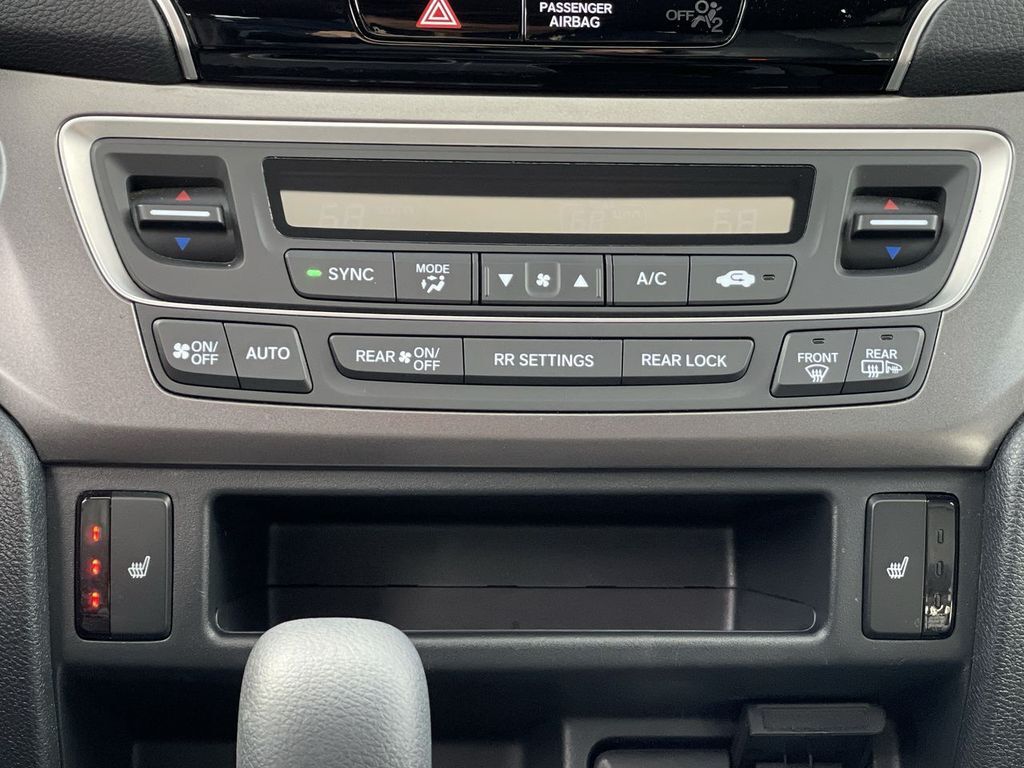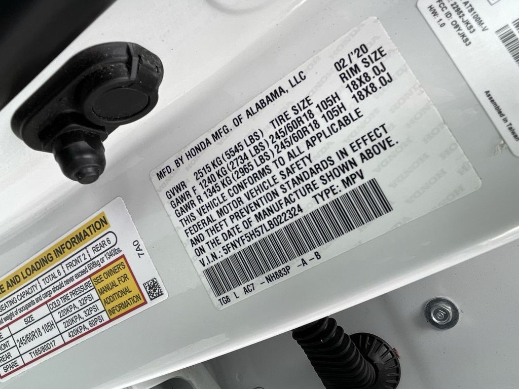 THIS VEHICLE INCLUDES THE FOLLOWING FEATURES AND OPTIONS: 18 Machine-Finished Alloy Wheels, 3rd row seats: split-bench, 4-Wheel Disc Brakes, 4.25 Axle Ratio, 7 Speakers, A/V remote: CabinControl, ABS brakes, Air Conditioning, Alloy wheels, AM/FM radio: SiriusXM, Apple CarPlay/Android Auto, Auto High-beam Headlights, Auto-dimming Rear-View mirror, Automatic temperature control, Blind Spot Information (BSI) System warning, Brake assist, Bumpers: body-color, Cruise Control, Delay-off headlights, Driver door bin, Driver vanity mirror, Dual front impact airbags, Dual front side impact airbags, Electronic Stability Control, Emergency communication system: HondaLink Assist, Exterior Parking Camera Rear, Forward collision: Collision Mitigation Braking System (CMBS) + FCW mitigation, Four wheel independent suspension, Front anti-roll bar, Front Bucket Seats, Front Center Armrest, Front dual zone A/C, Front fog lights, Front reading lights, Fully automatic headlights, Garage door transmitter: HomeLink, Heated door mirrors, Heated Front Bucket Seats, Heated front seats, Illuminated entry, Lane departure: Lane Keeping Assist System (LKAS) active, Leather Seat Trim, Leather Shift Knob, Low tire pressure warning, Memory seat, Occupant sensing airbag, Outside temperature display, Overhead airbag, Overhead console, Panic alarm, Passenger door bin, Passenger vanity mirror, Power door mirrors, Power driver seat, Power Liftgate, Power moonroof, Power passenger seat, Power steering, Power windows, Radio data system, Radio: 215-Watt Audio System, Rear air conditioning, Rear anti-roll bar, Rear reading lights, Rear seat center armrest, Rear window defroster, Rear window wiper, Reclining 3rd row seat, Remote keyless entry, Security system, Speed-sensing steering, Speed-Sensitive Wipers, Split folding rear seat, Spoiler, Steering wheel mounted audio controls, Tachometer, Telescoping steering wheel, Tilt steering wheel, Traction control, Trip computer, Turn signal indicator mirrors, and Variably intermittent wipers.