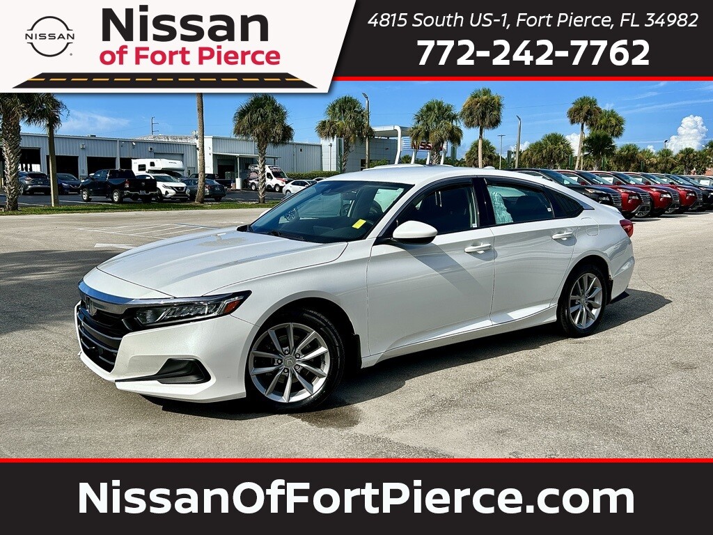 2021 Honda Accord 4D Sedan Platinum White Pearl CVT LX Clean CARFAX. CARFAX One-Owner. Priced below KBB Fair Purchase Price! Gray Cloth. FWD 1.5T I4 DOHC 16V Turbocharged VTEC