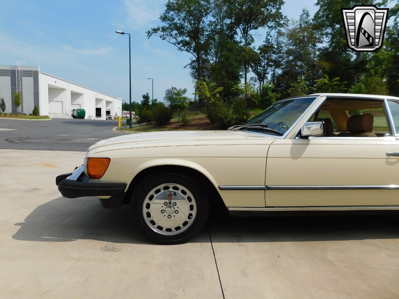 Presenting the classic 1983 Mercedes-Benz 380SL, a timeless piece of automotive history. This elegant vehicle is finished in a sophisticated tan exterior, complementing its luxurious tan leather interior, offering a seamless blend of style and comfort.