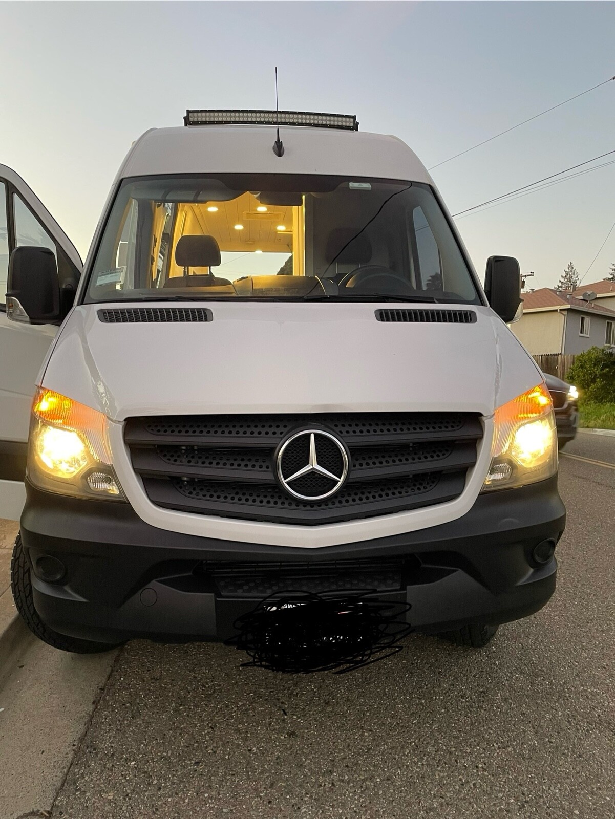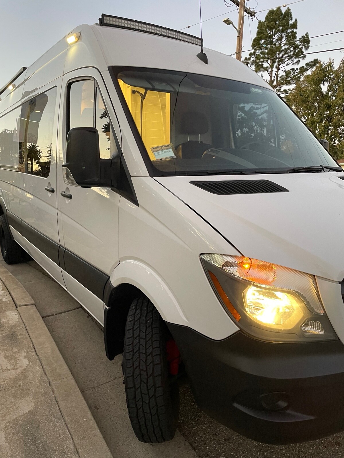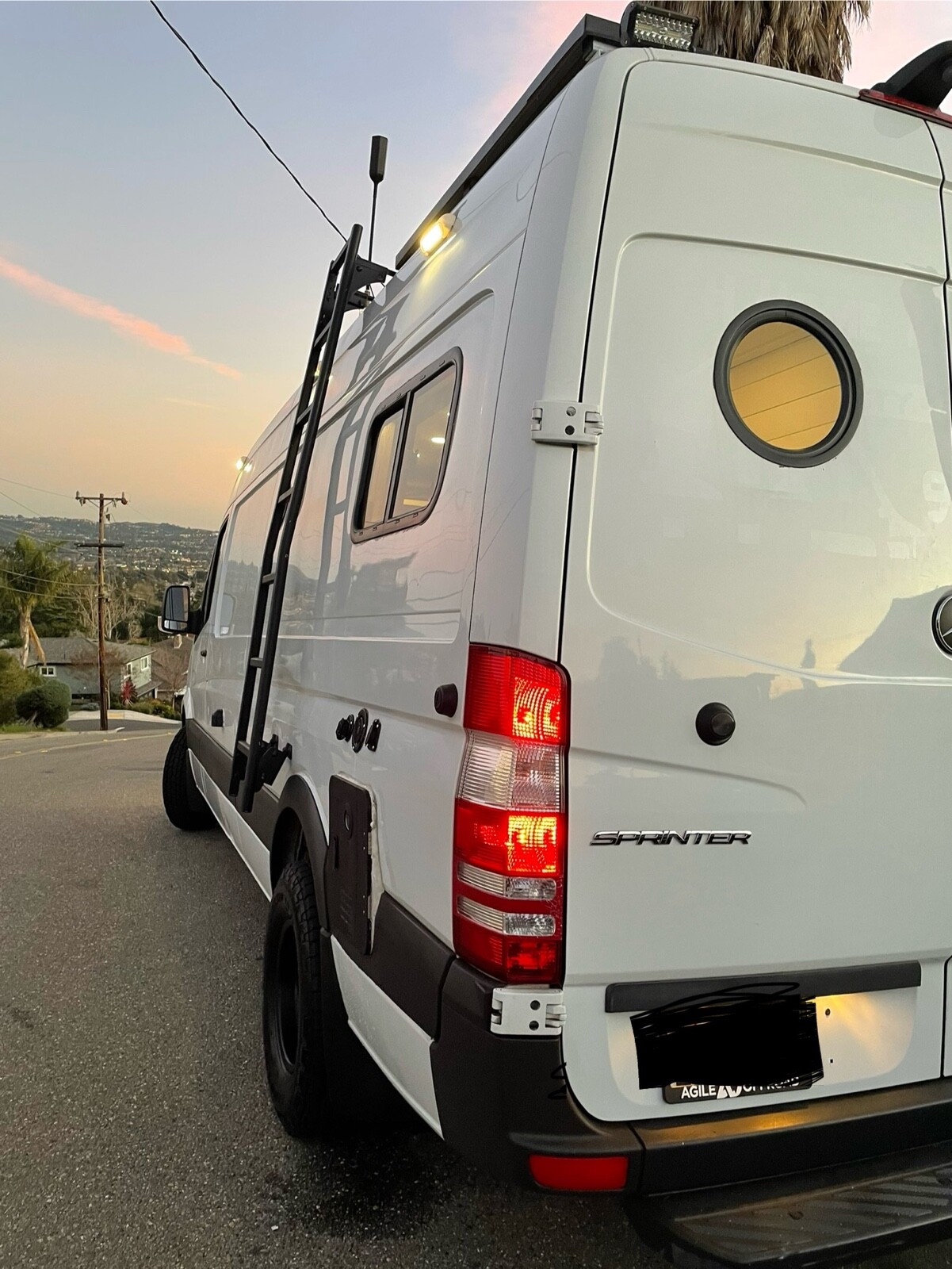 Mercedes Sprinter 170 3500 Dually (the bigger size). She has just been lifted with an Agile Offroad suspension, wheels, and tires and loves to be on or off the road. We love this sprinter because she makes every adventure easy, comfortable, and fun. We've invested extra love to make sure you are beyond comfortable-- from our plush bed, to extra padded seats, to making sure you have everything you need already inside.