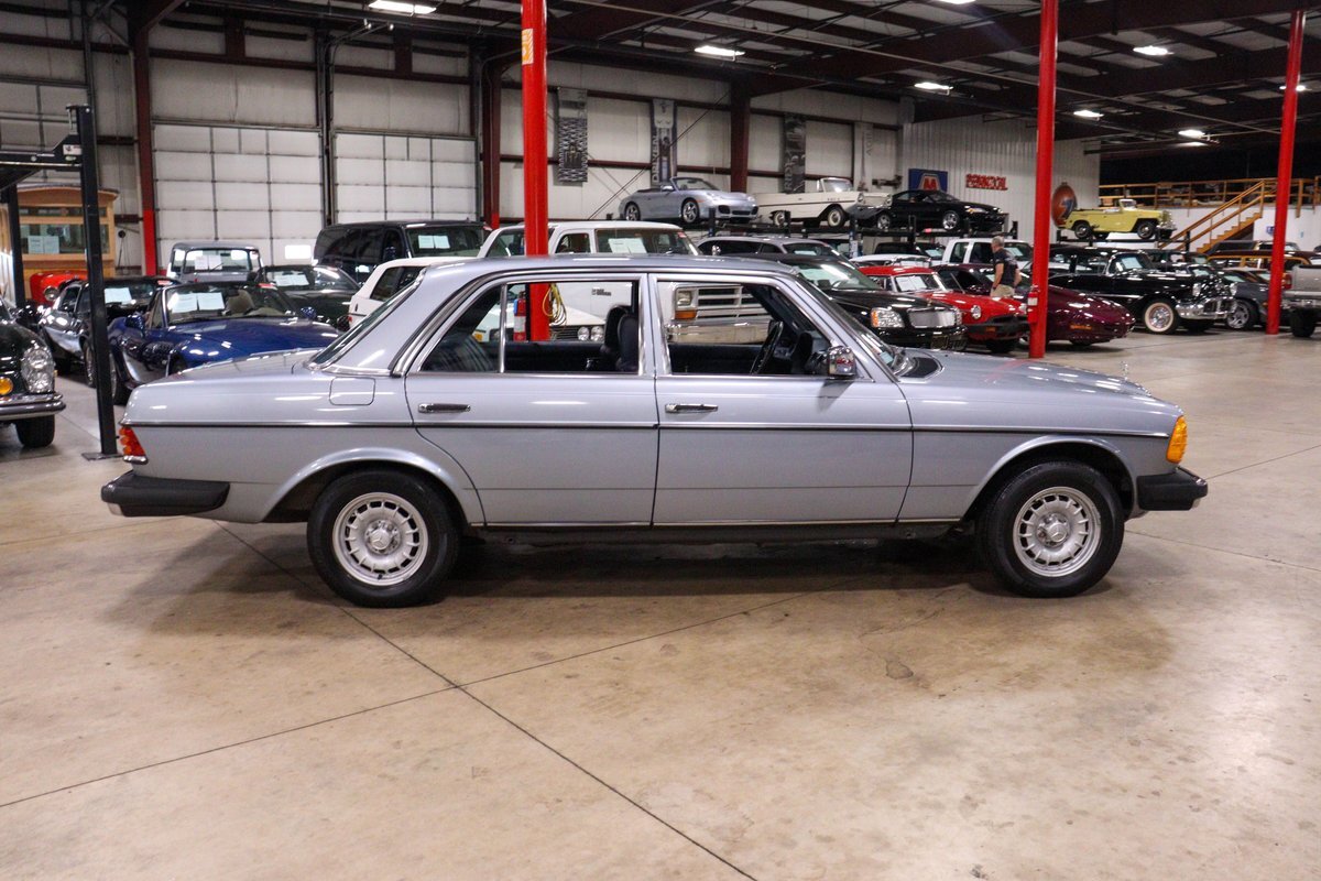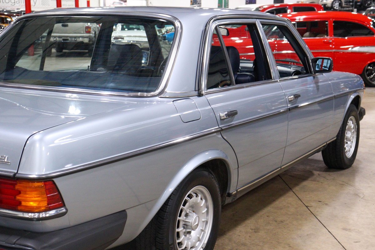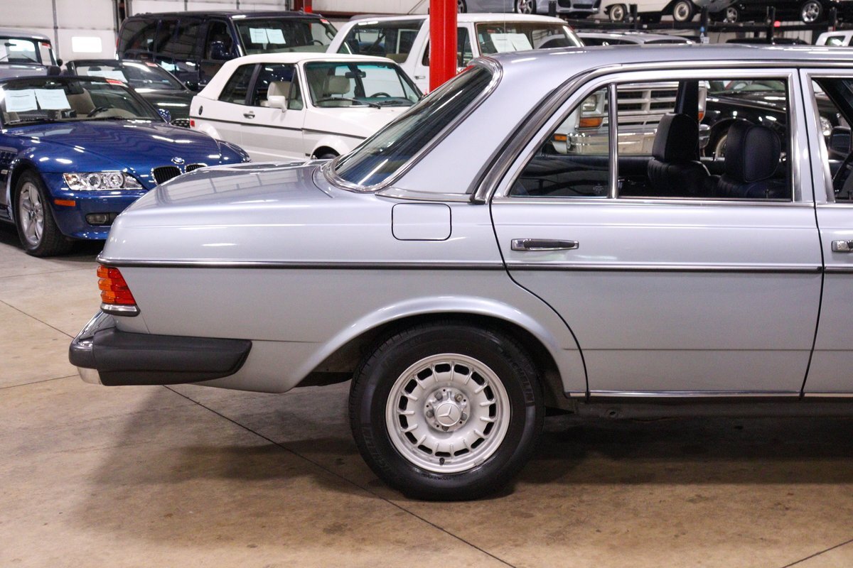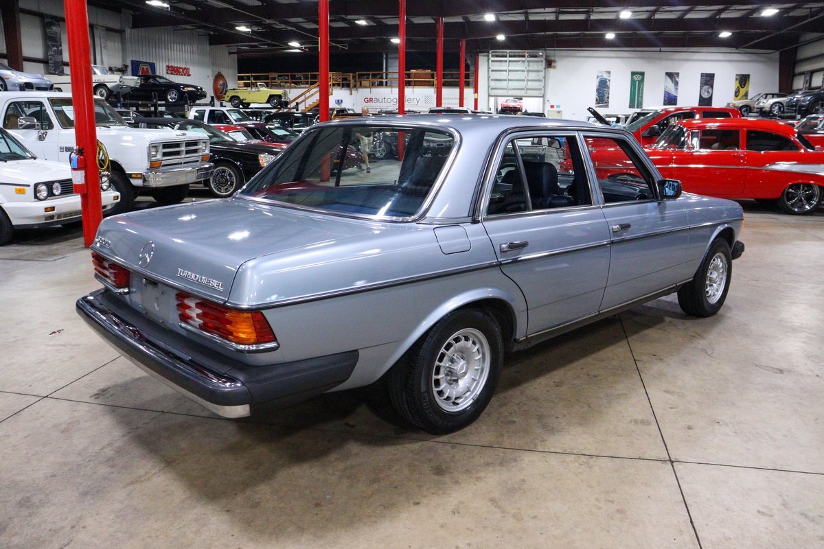 GR Auto Gallery is pleased to present this 1984 Mercedes-Benz 300D for your consideration. This classic sedan, a testament to Mercedes-Benz's legendary engineering and timeless design, is finished in an elegant Silver Blue Metallic exterior. The car's exterior is complemented by the iconic 14-inch "Bundt" alloy wheels, adding a touch of vintage charm and sophistication.