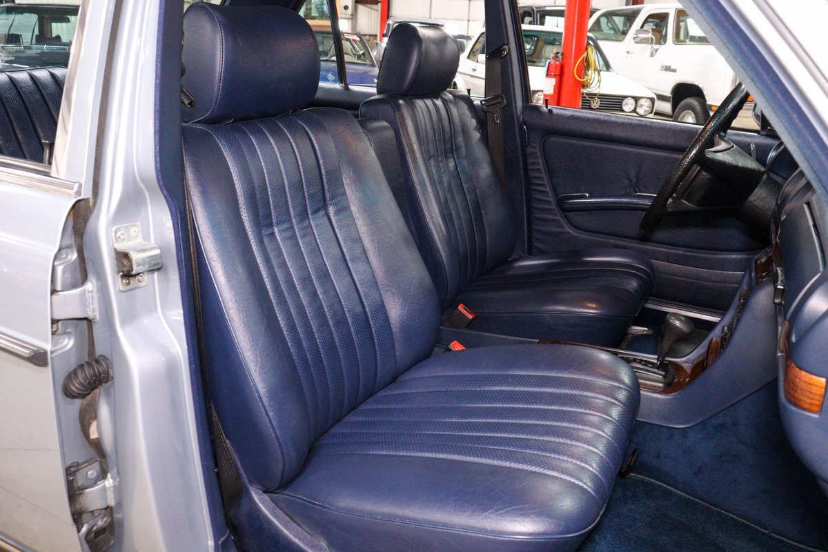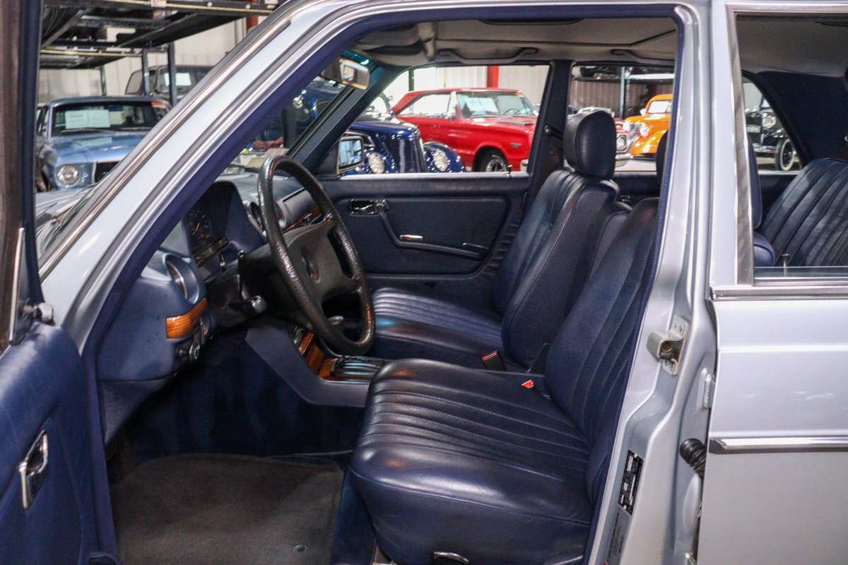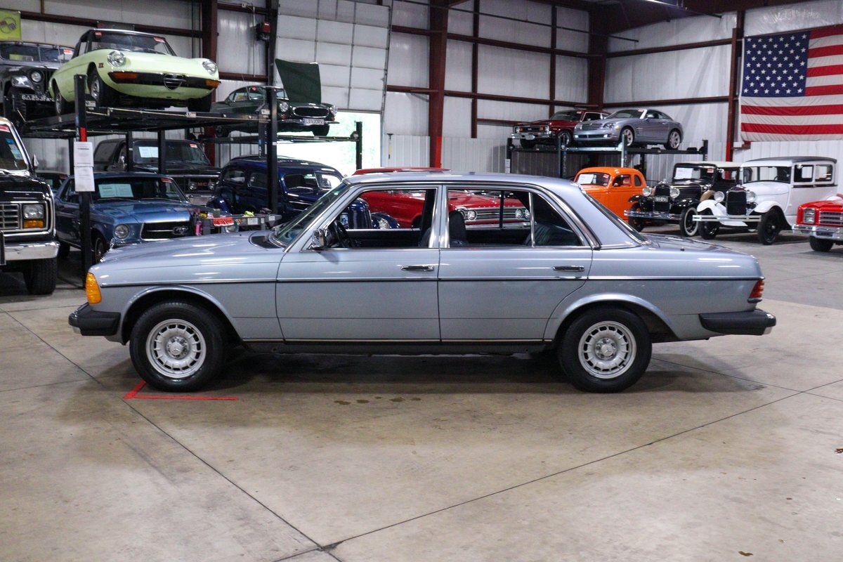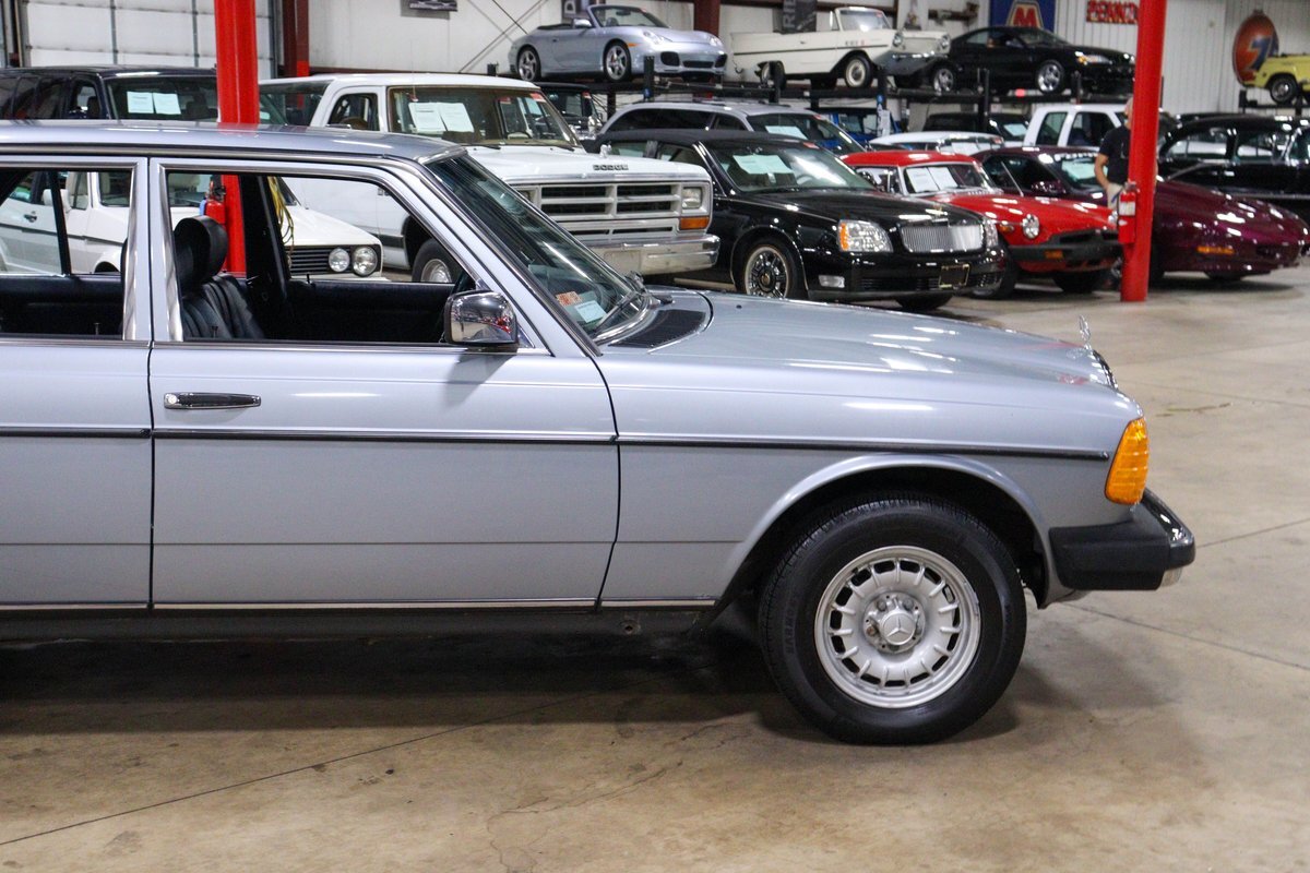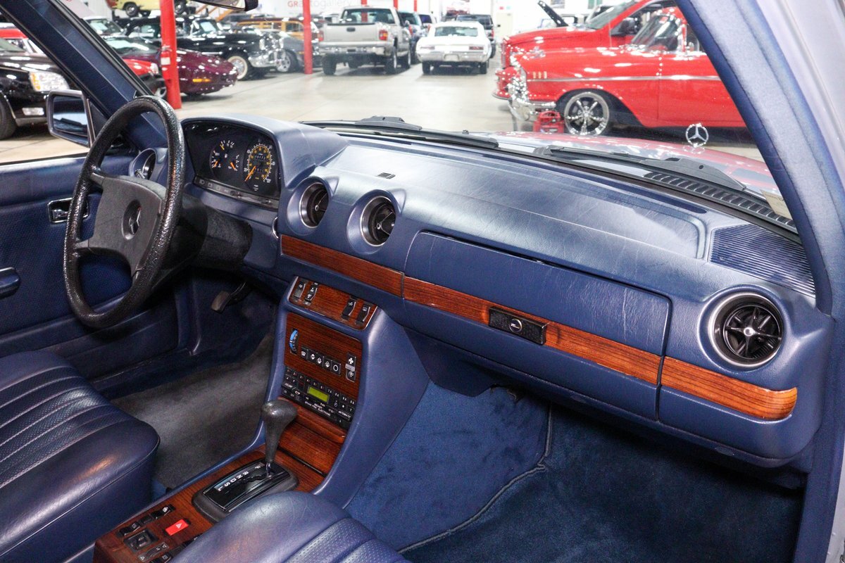 GR Auto Gallery is pleased to present this 1984 Mercedes-Benz 300D for your consideration. This classic sedan, a testament to Mercedes-Benz's legendary engineering and timeless design, is finished in an elegant Silver Blue Metallic exterior. The car's exterior is complemented by the iconic 14-inch "Bundt" alloy wheels, adding a touch of vintage charm and sophistication.