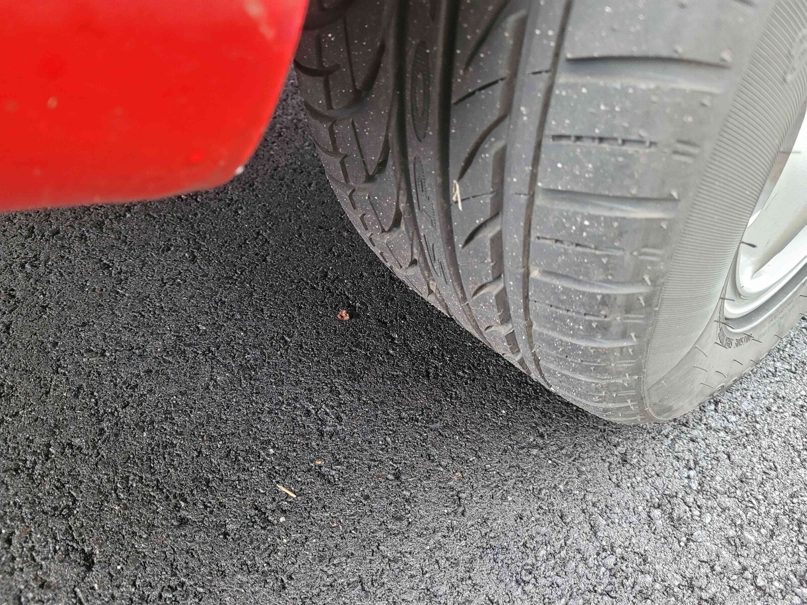 The car runs good and shifts thru all gears. Red paint is faded. Hood is black. Dent by passenger headlight.