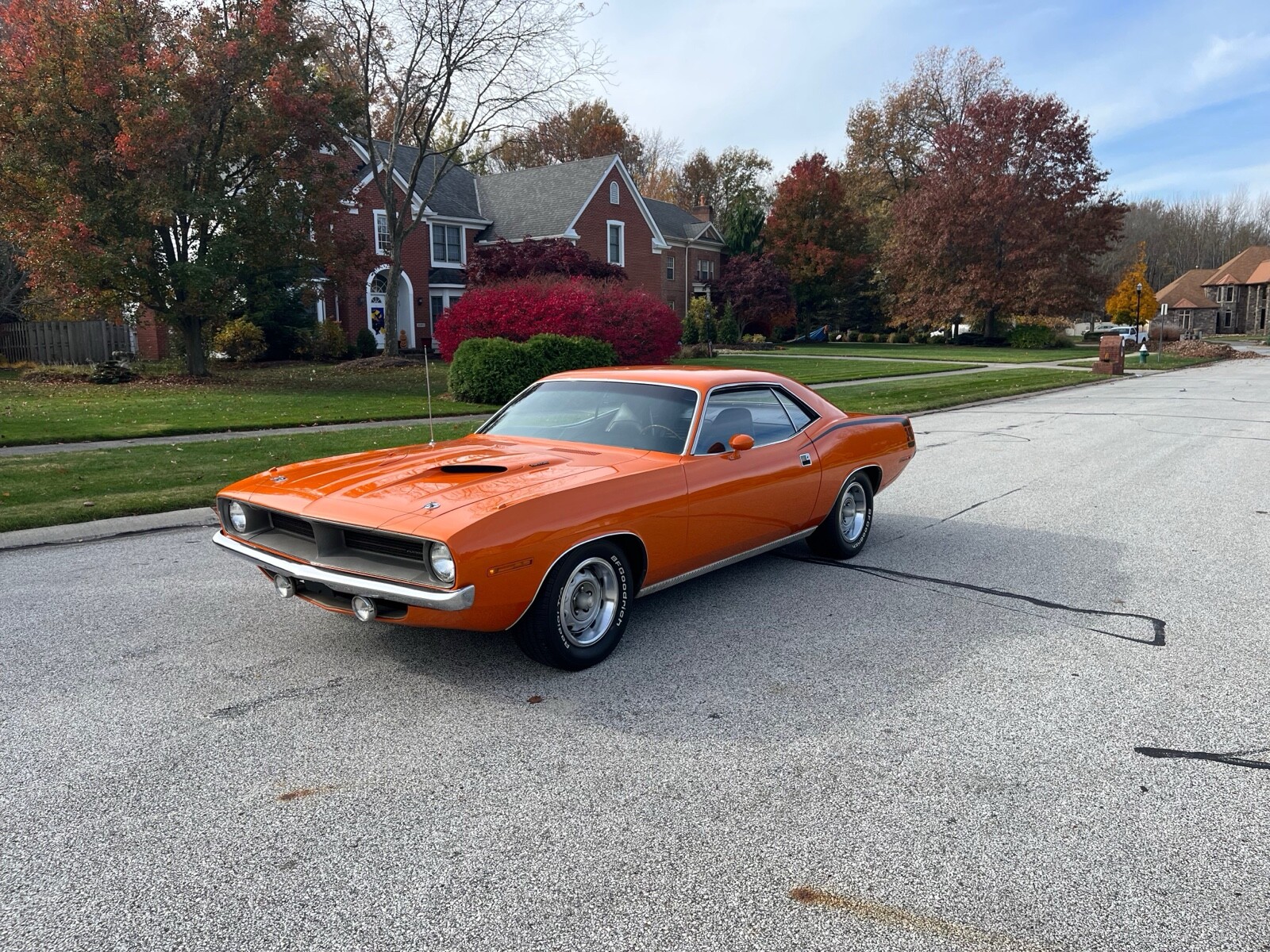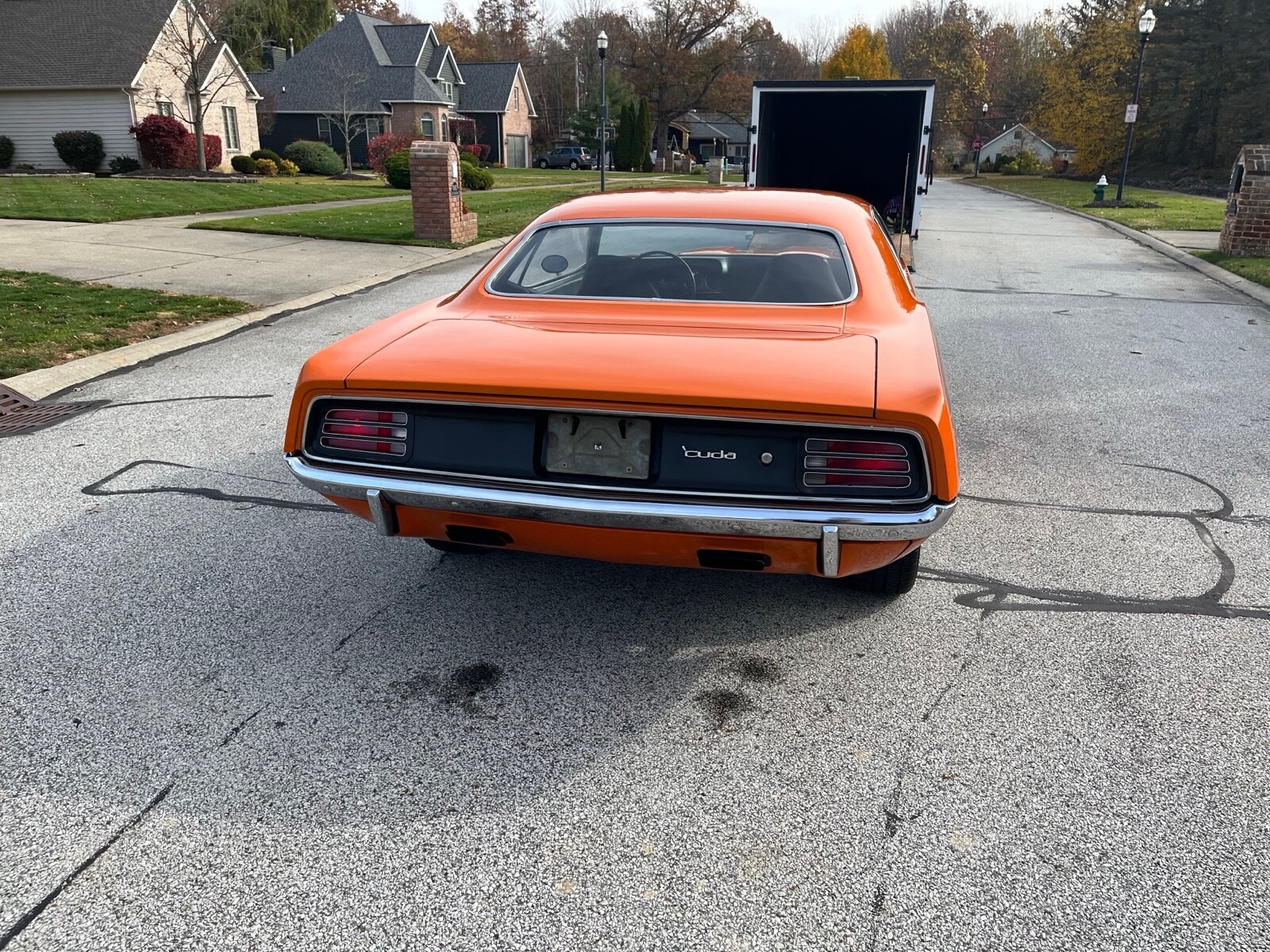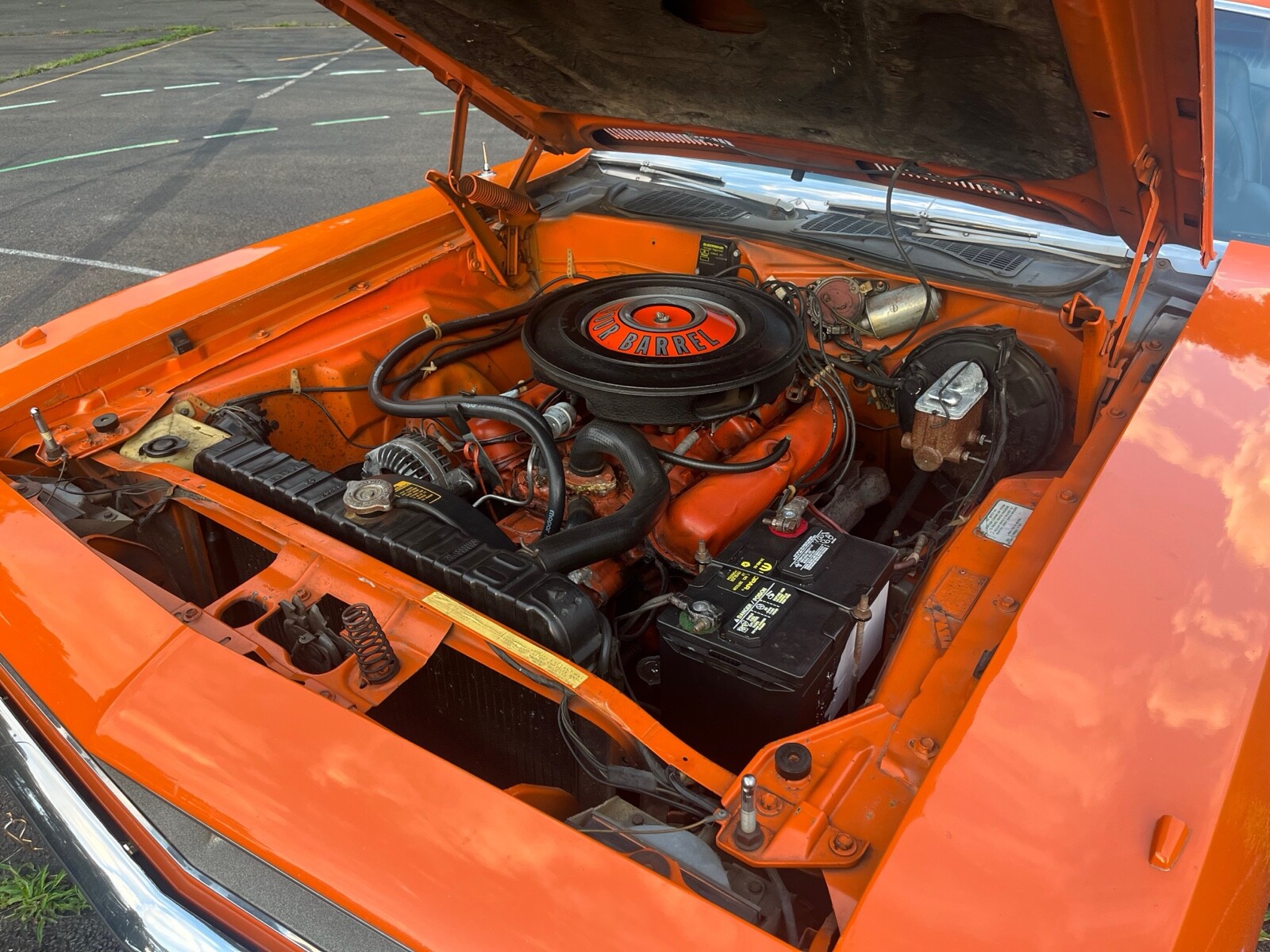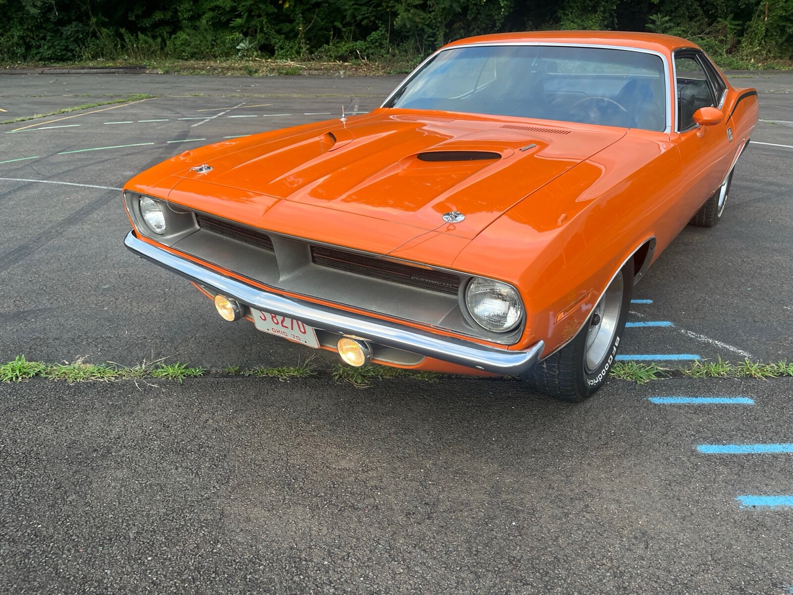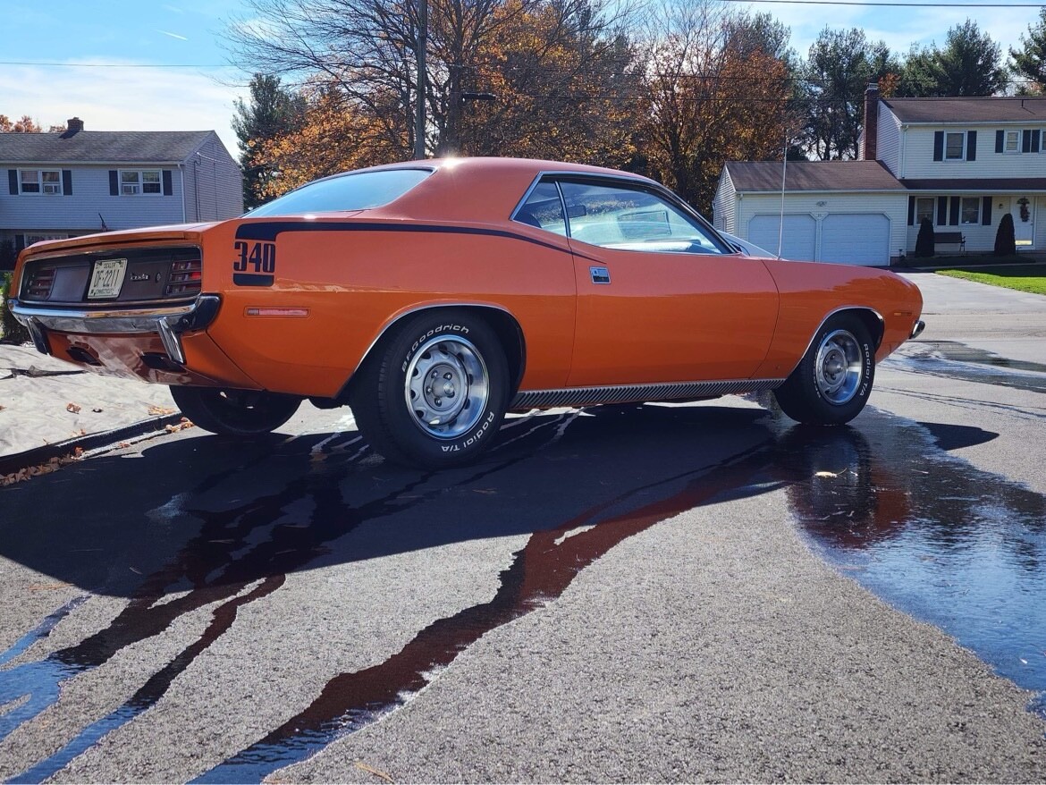 1970 Plymouth Cuda 340 V8, 727 AUTO 8 3/4 3:23 sure grip matching numbers, EK2 Go mango orange, unrestored mostly original paint original sheet metal 99,000 original miles build sheet, fender tag, super solid, undercoat car Rare bench seat, AUTO column car Power disc brakes 340 hockey Stick stripe,Seller's Notes