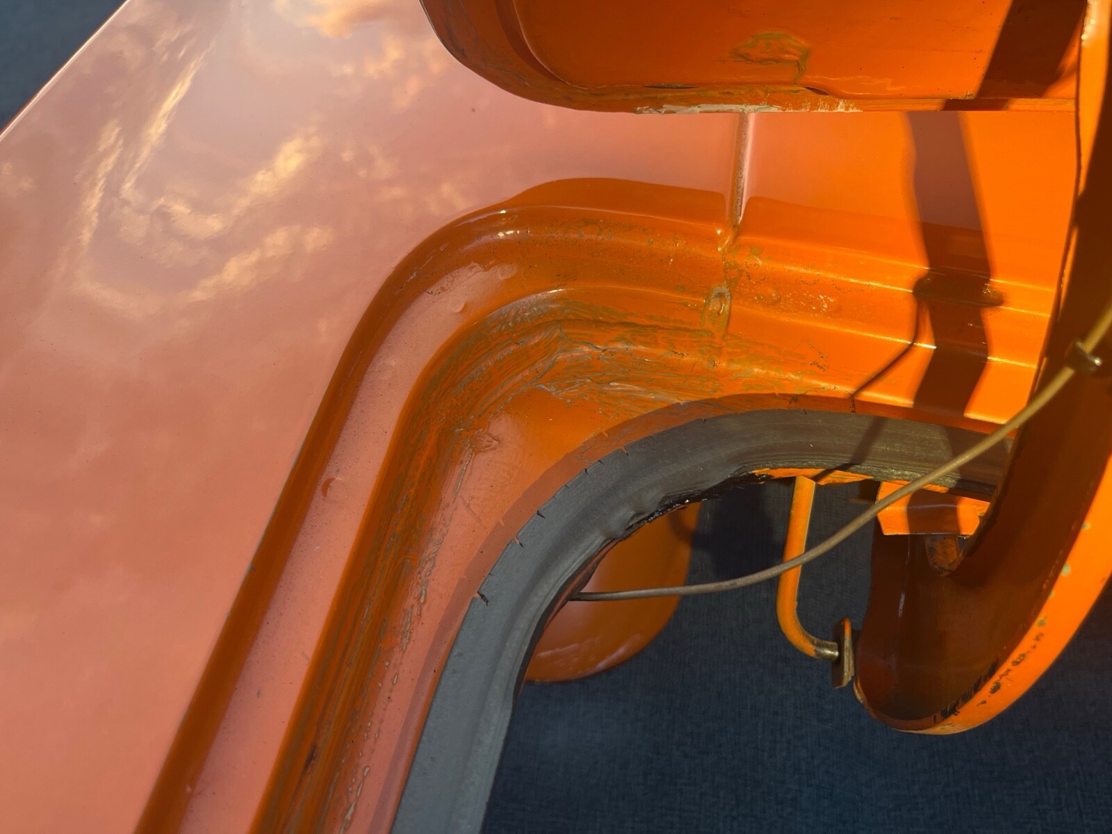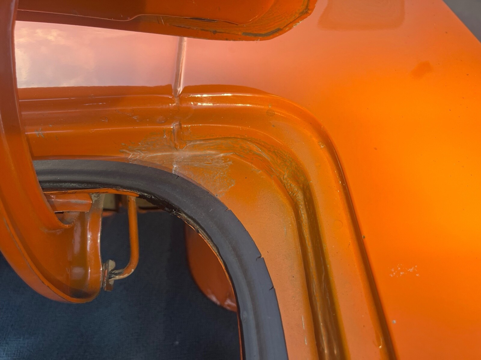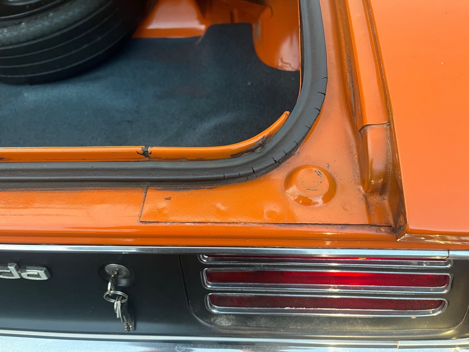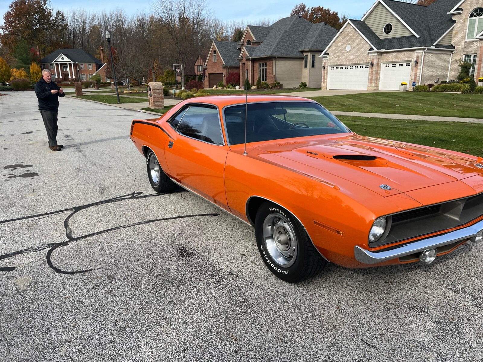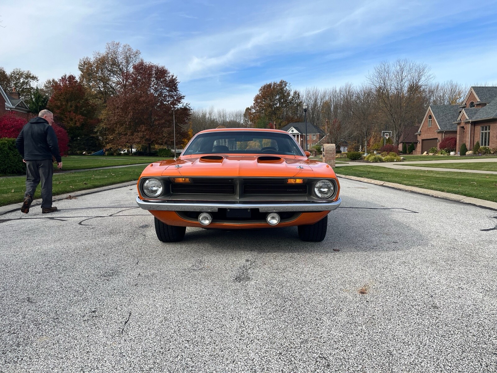 1970 Plymouth Cuda 340 V8, 727 AUTO 8 3/4 3:23 sure grip matching numbers, EK2 Go mango orange, unrestored mostly original paint original sheet metal 99,000 original miles build sheet, fender tag, super solid, undercoat car Rare bench seat, AUTO column car Power disc brakes 340 hockey Stick stripe,Seller's Notes