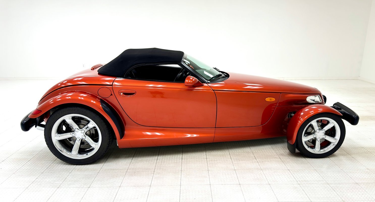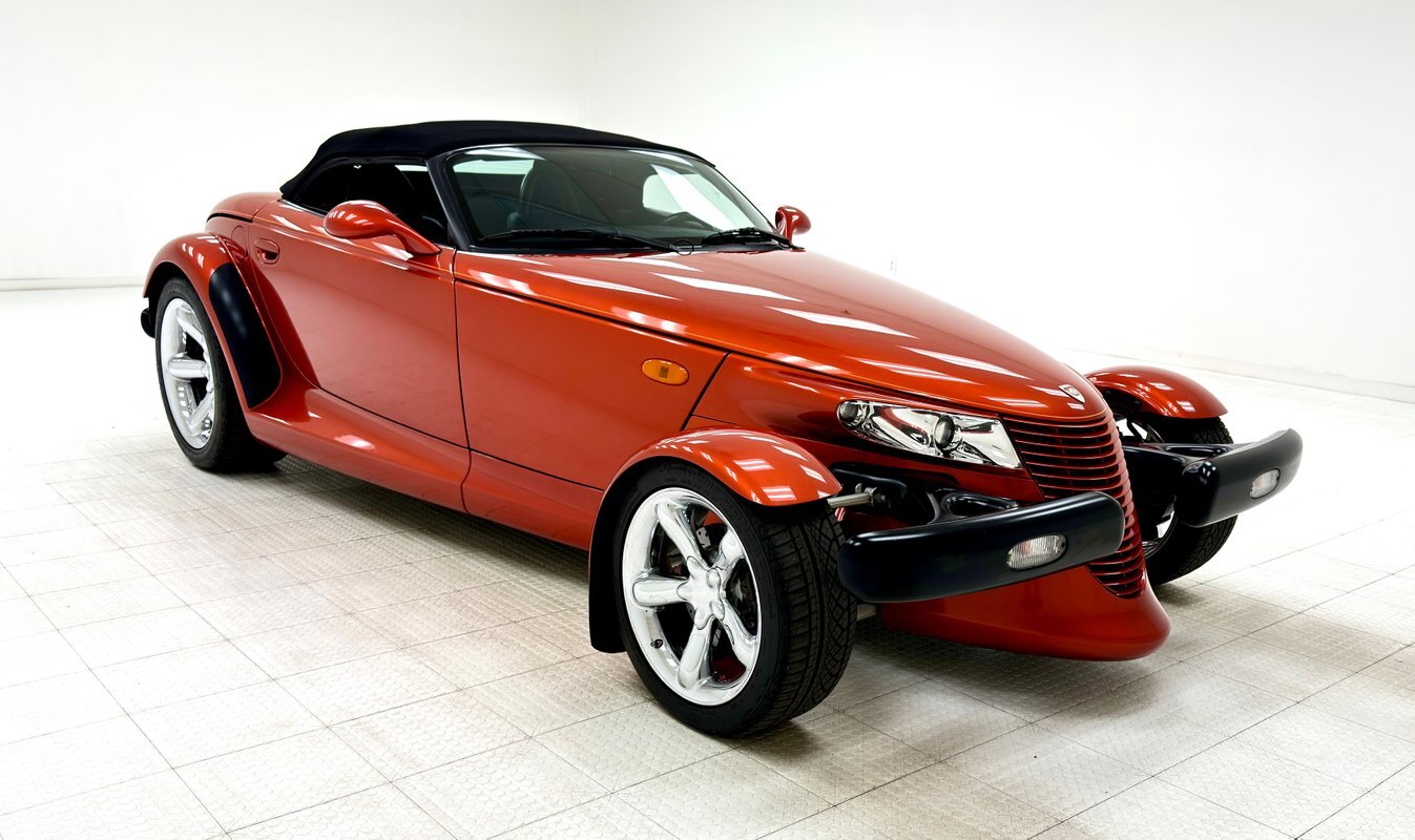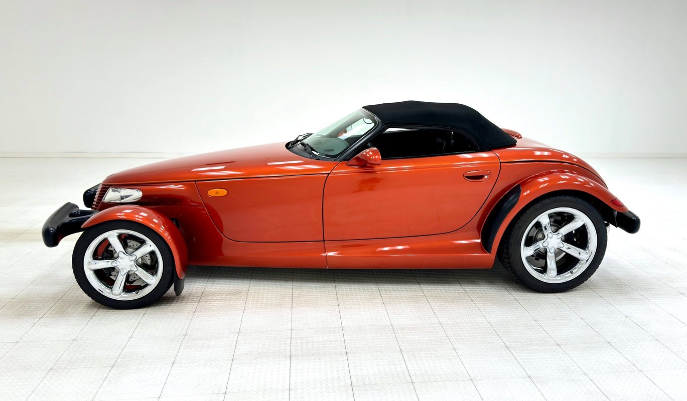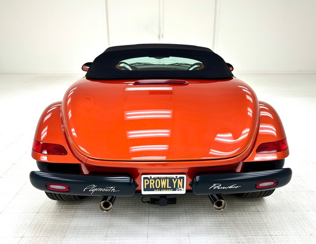 For consignment, a 2001 Plymouth Prowler convertible with a title verified 55,397 actual miles and wearing a coat of Prowler Orange Metallic and of the 11,000 Prowlers built between 1998 and 2002. Just 1,039 of them were orange and in our house, orange Prowlers peel out of here faster than most of the other 11 colors offered.