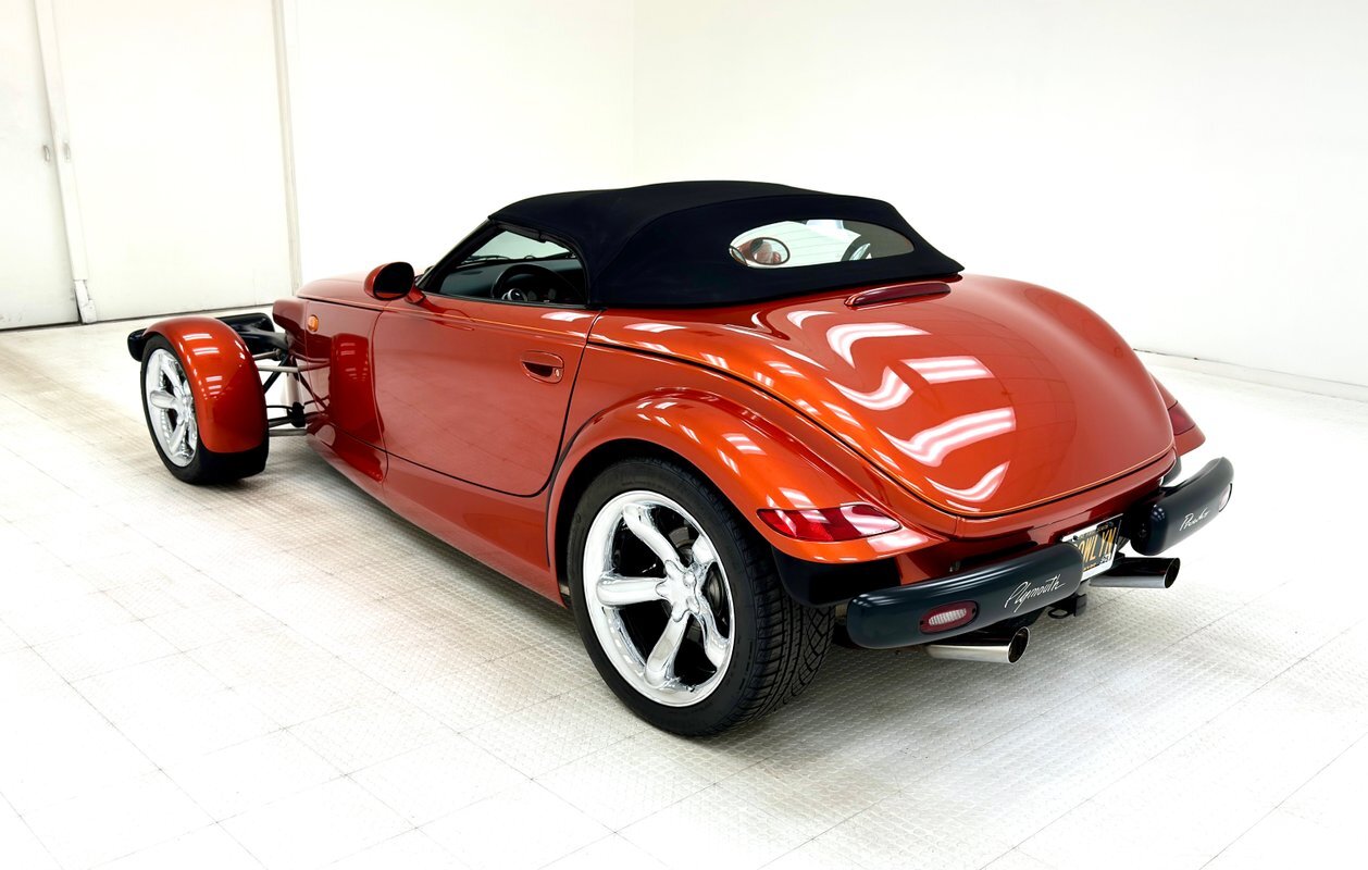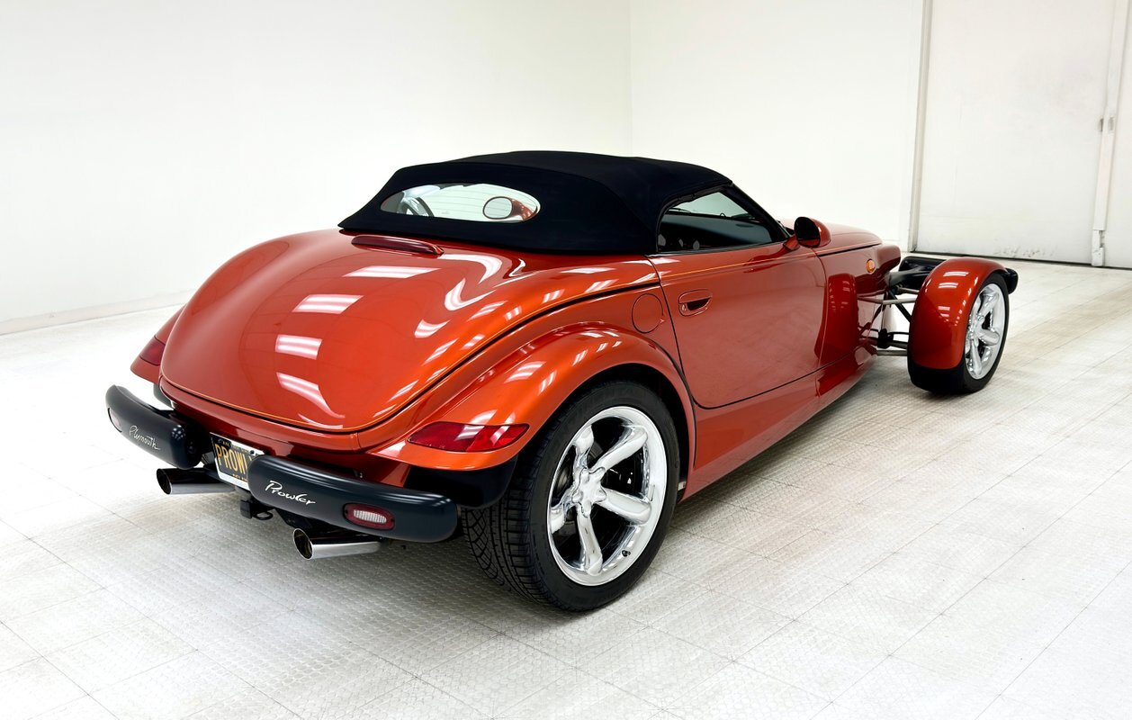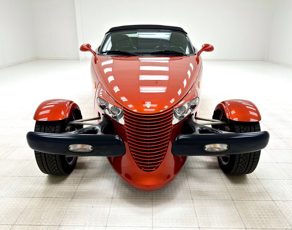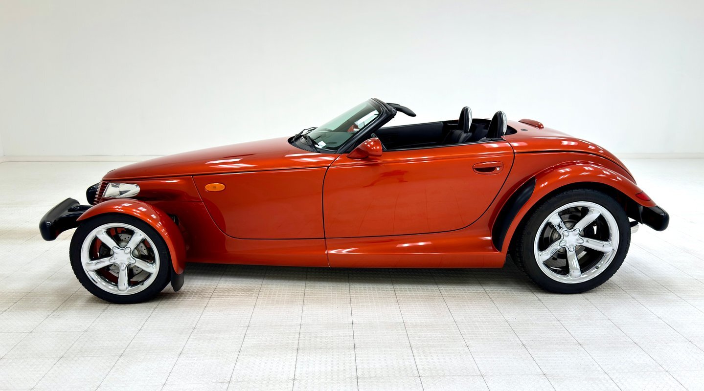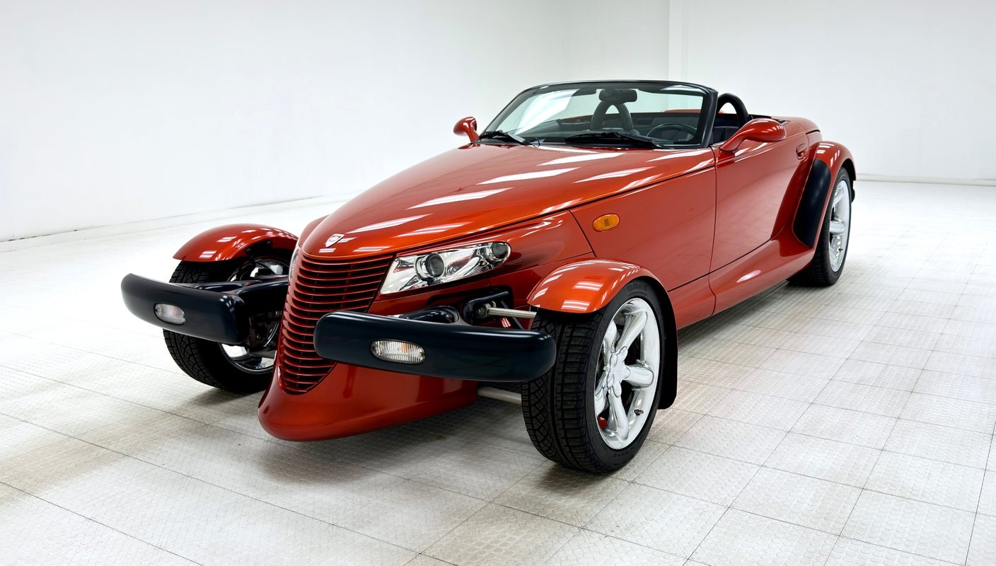 For consignment, a 2001 Plymouth Prowler convertible with a title verified 55,397 actual miles and wearing a coat of Prowler Orange Metallic and of the 11,000 Prowlers built between 1998 and 2002. Just 1,039 of them were orange and in our house, orange Prowlers peel out of here faster than most of the other 11 colors offered.