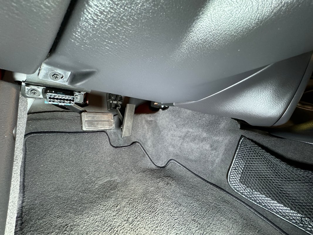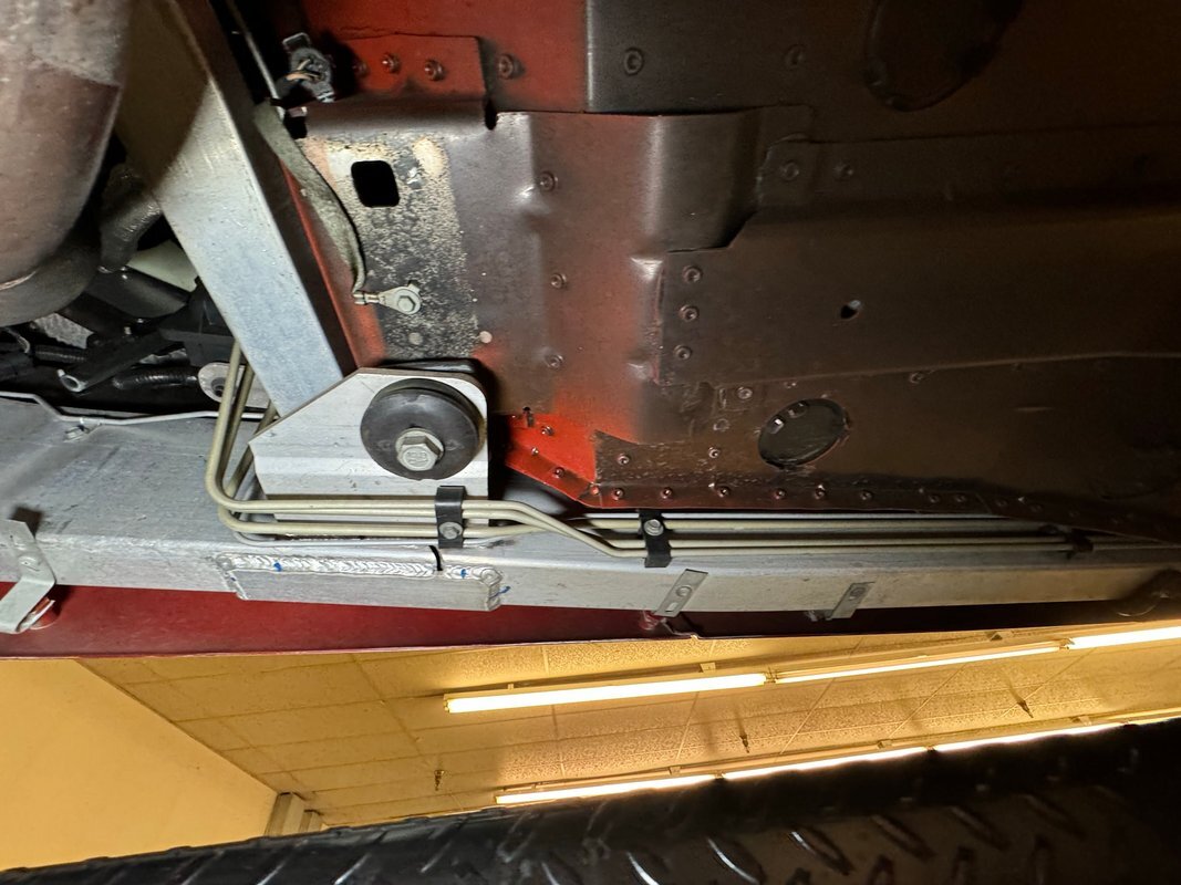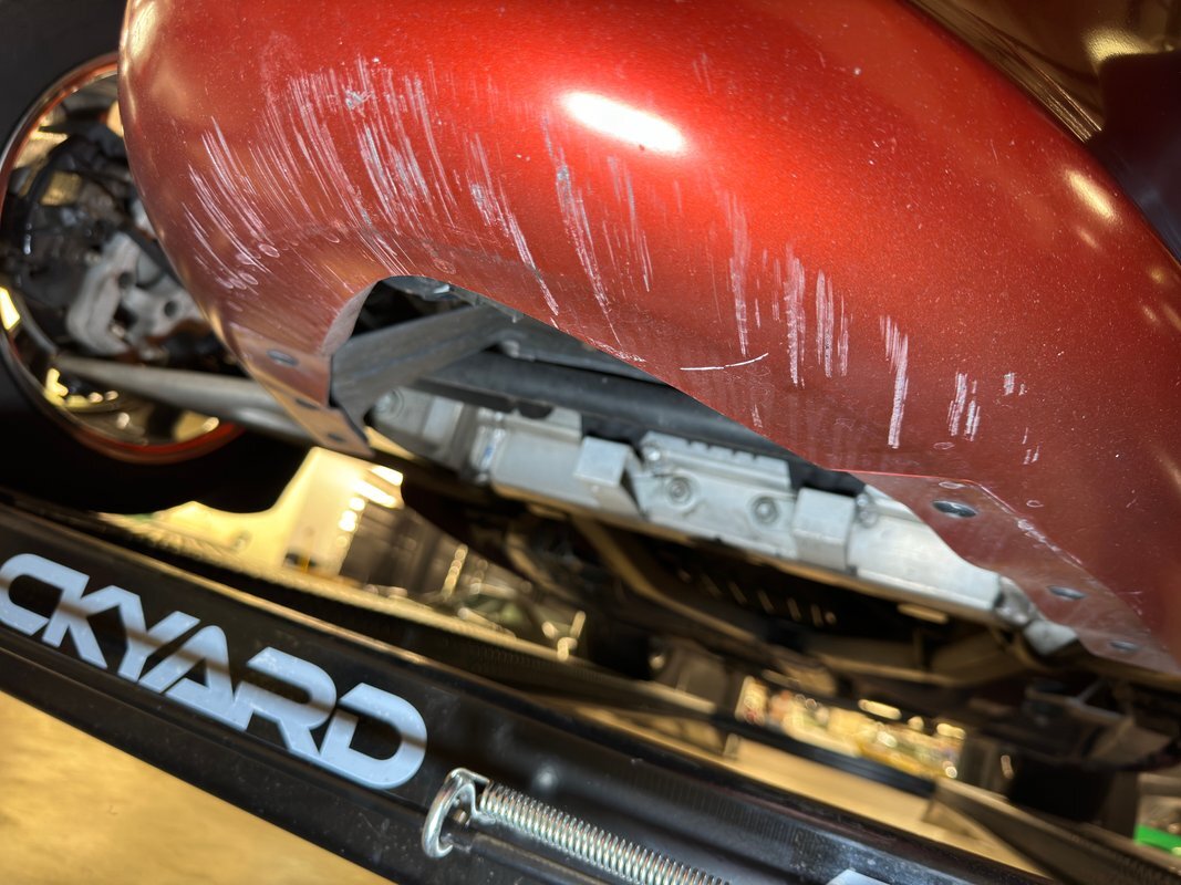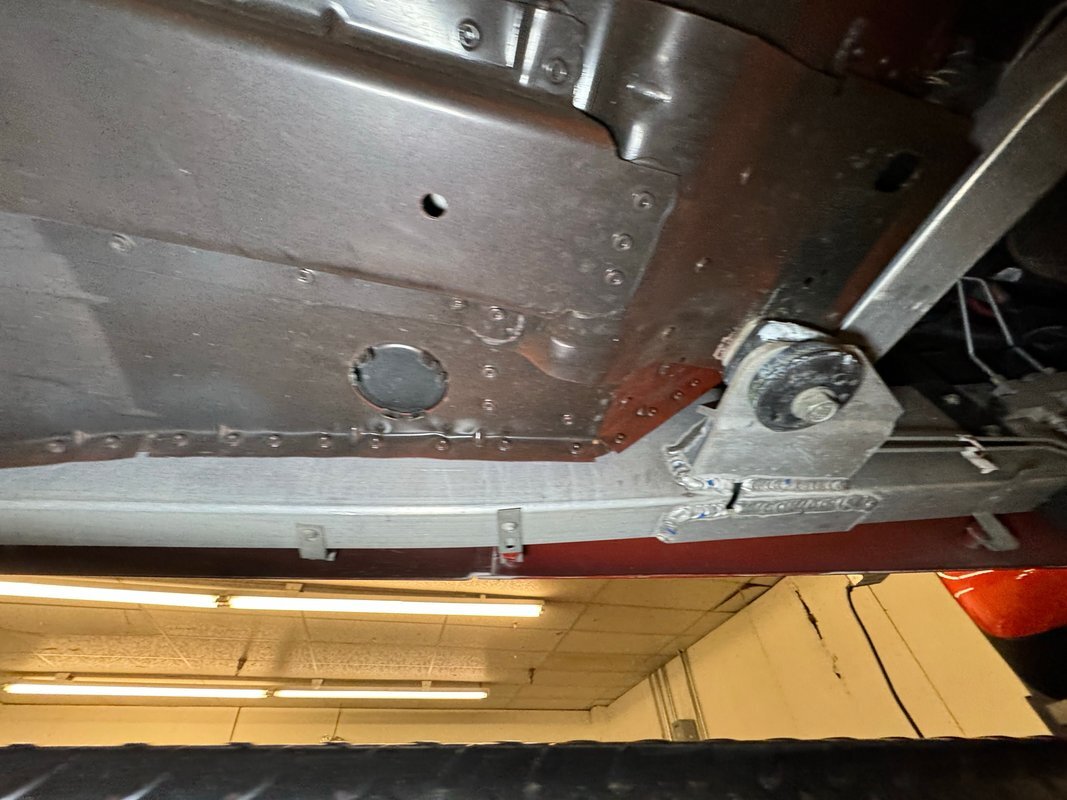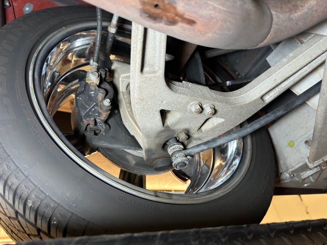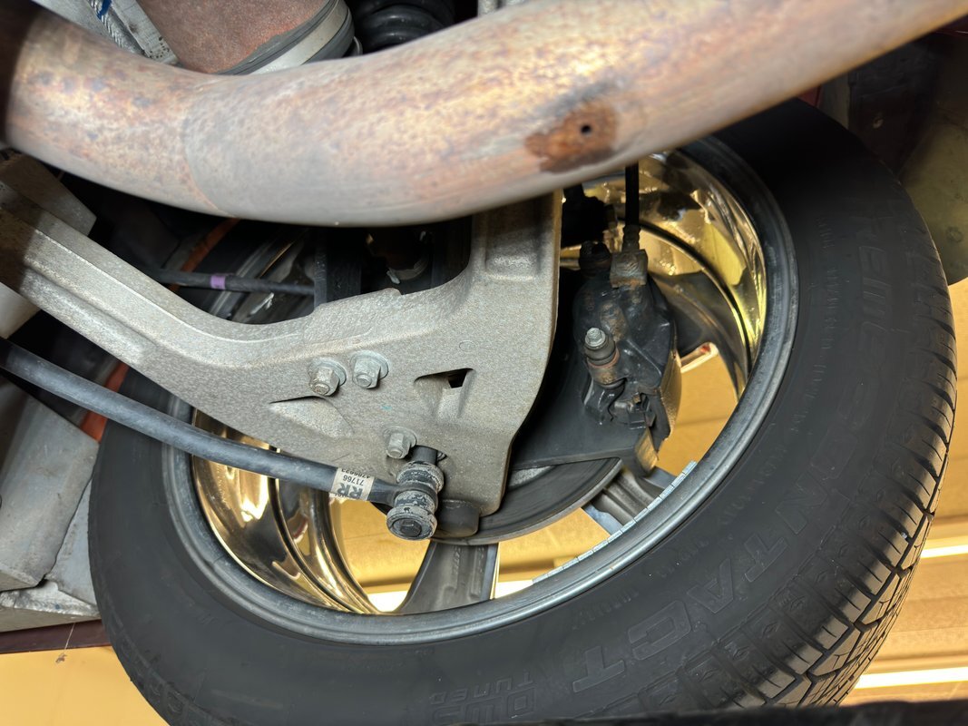 Very clean underneath as we take note of the tubular aluminum chassis and the dual exhaust which travels the length of the car and after some original equipment mufflers, heads out back in an epic, slightly upturned tail pipe display. There's no surface rust nor oil leaks anywhere, just some signs of light usage and no damage whatsoever. Coil over suspension is found front and rear.