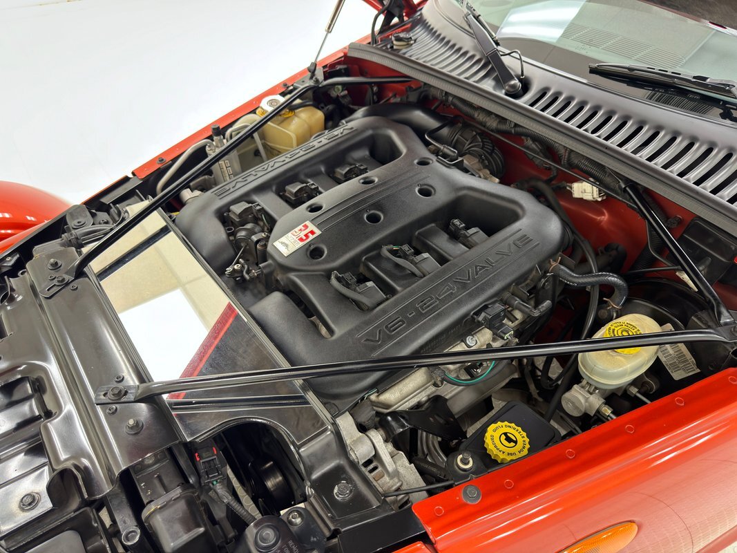 Under the hood we find a clean 3.5 liter V6 rated at 253 horsepower and tied to an 4-speed automatic transmission with Autostick and true to hot rod greatness, keeps power at the rear axle with 3.89 gears. Yes that's right, the transmission is in the back for a balance ratio of 50/50. Power disc brakes also bring us into the 21st century and are found on all four wheels.