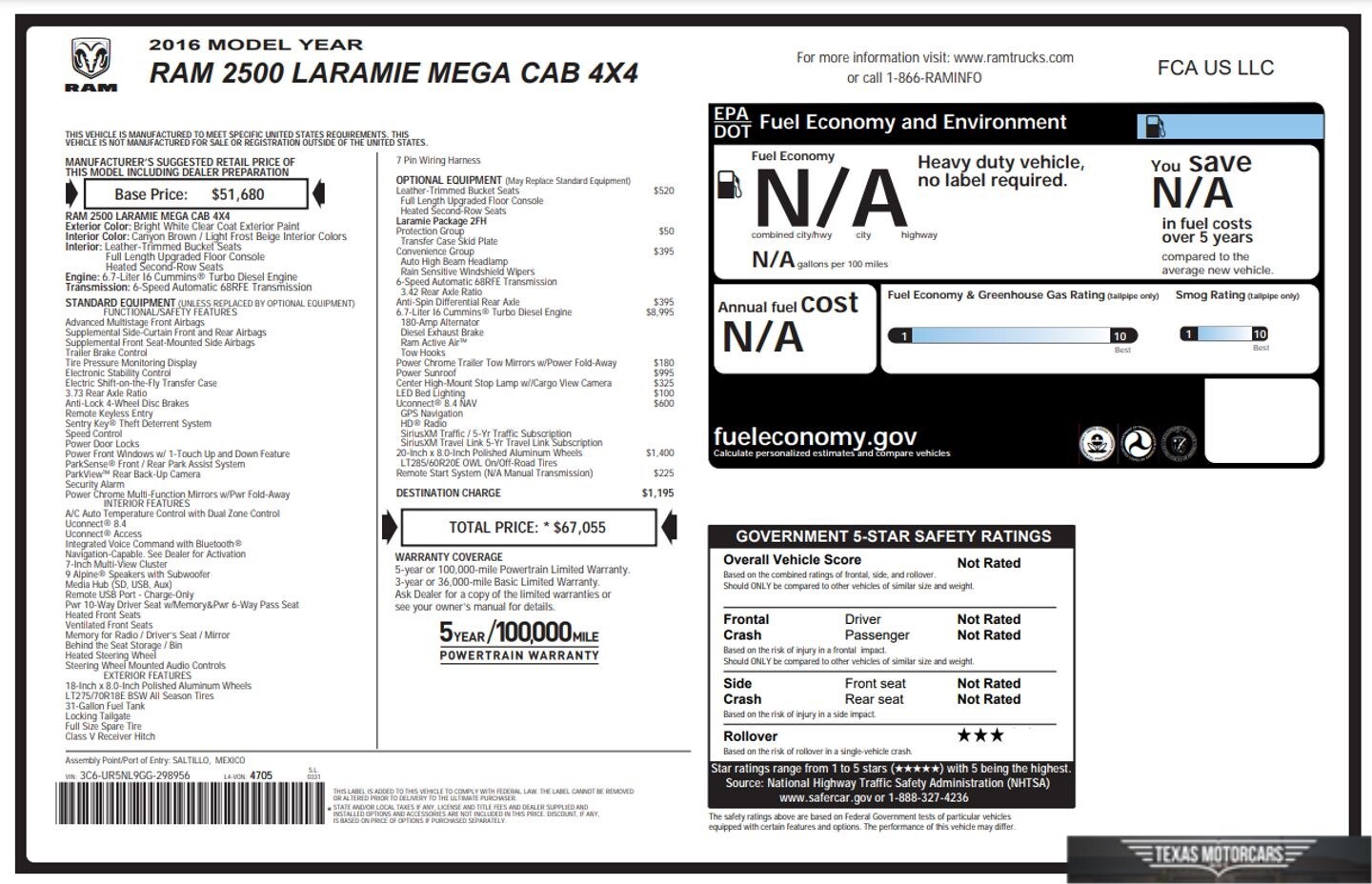 This show-stopping 2016 Ram 2500 Laramie is the final truck. What that means is, this Ram is the last truck you'll ever need, this is what buy-it-for-life embodies. With just 90,165 miles on it's wheels, this white beauty is ready to do your dirty work, thanks in large part to it's formidable Cummins 6.7L Diesel Turbo I6 engine. You'll be doing that work in unimpeachable style thanks to the Laramie trim package. Strength and swagger combine here with this beautifully designed truck.