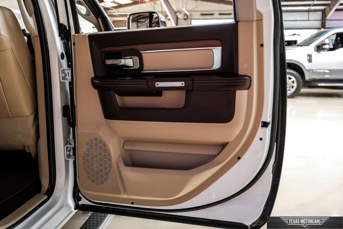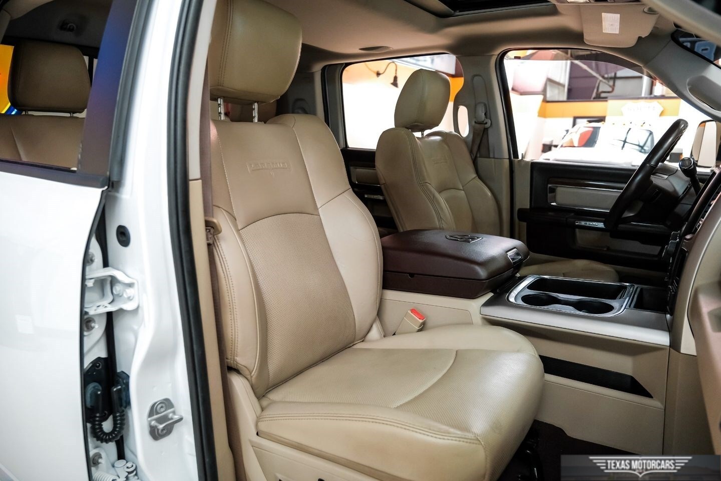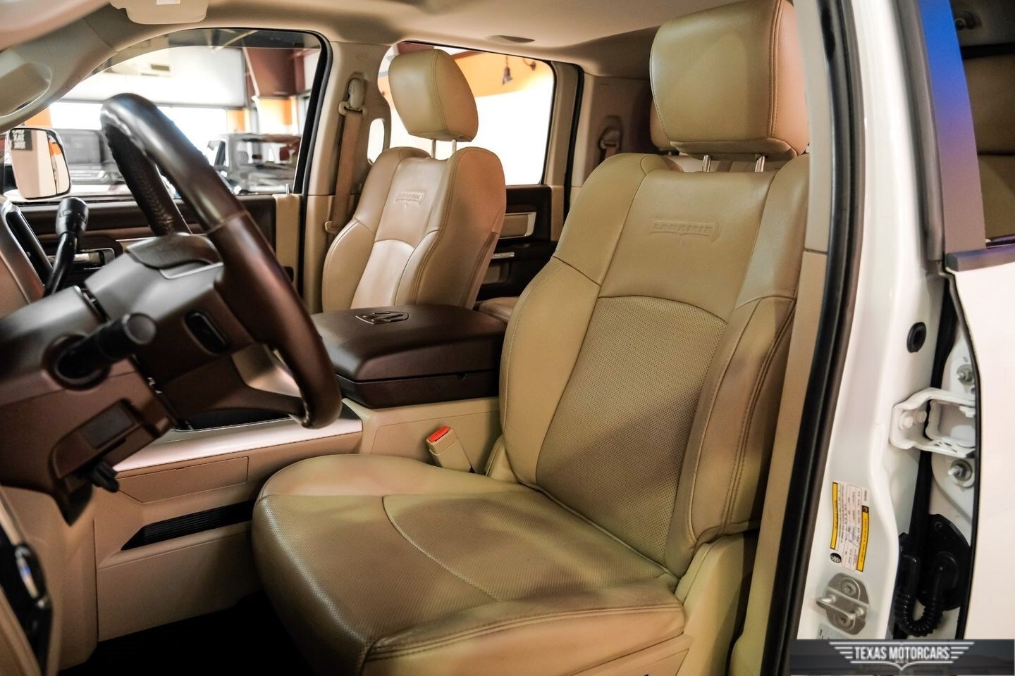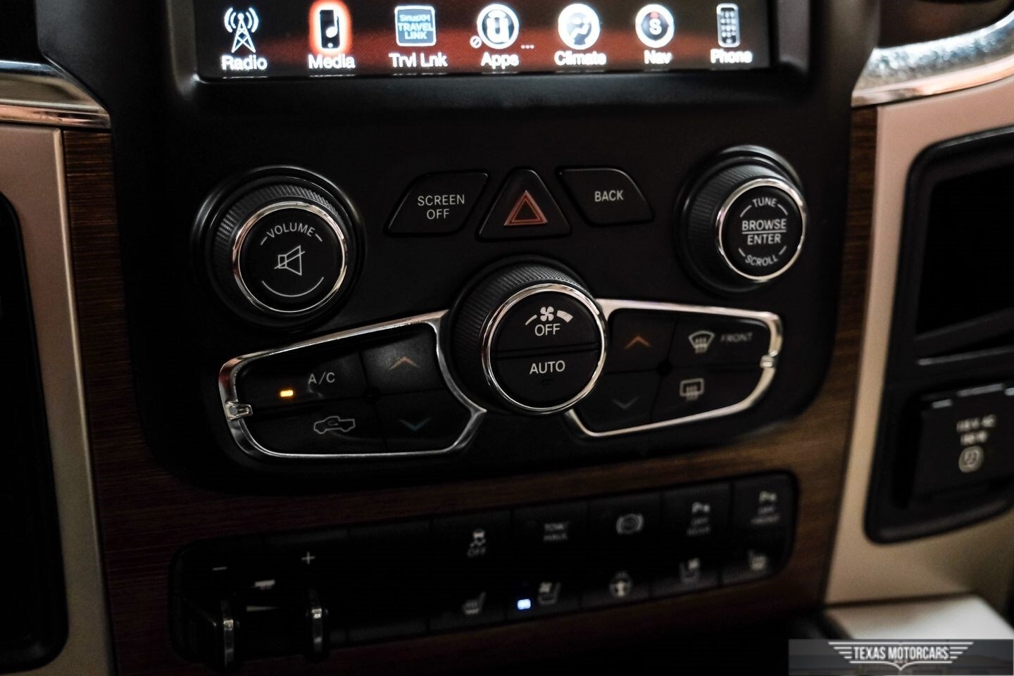 The sumptuous tan leather interior is real easy on the eyes and the back pockets, it features leather-trimmed bucket seats that provide unparalleled comfort and support. The Laramie's interior is not just about comfort; it's packed with advanced technology to keep you connected and entertained. The UConnect 8.4AN system, complete with AM/FM/SXM//HD/BT/Nav, ensures you have all the information and entertainment you need at your fingertips. The premium Alpine sound system delivers crystal-clear audio, and bumping bass.