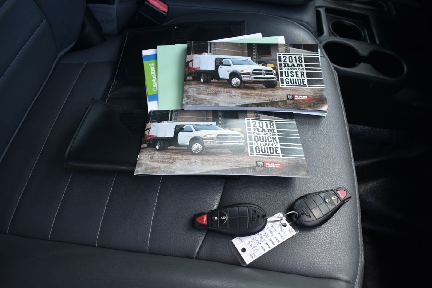You are looking at a 2018 Dodge Ram 5500 Regular Cab 4x4. It is powered with a 6.7L Cummins Diesel I-6 and Aisin automatic transmission. It is equipped with power trailer mirrors, power windows, power locks, tilt, cruise, receiver hitch, gooseneck hitch, and am/fm radio. Also included are the owner's manuals and one keyless remote.