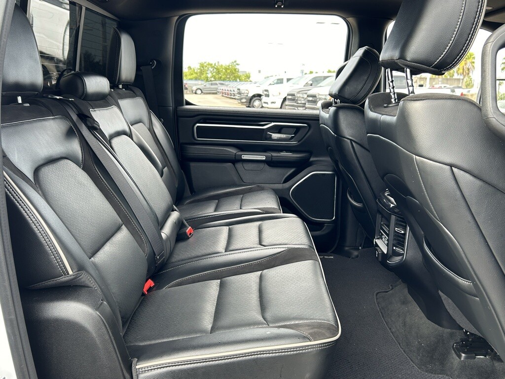 Accent Color Premium Power Mirrors, Auto Dimming Exterior Passenger Mirror, Auto High Beam Headlamp Control, Bed Utility Group, Black Exterior Truck Badging, Black Headlamp Bezels, Black Interior Accents, Black Painted Exterior Mirrors Caps, Body Color Door Handles, Body Color Front Bumper, Body Color Rear Bumper w/Step Pads, Dual Exhaust w/Black Tips, Foam Bottle Insert (Door Trim Panel), GPS Navigation, Grille Surround 3 Black Texture 2 Black, harman/kardon 19 Speaker Premium Sound, Heated Second Row Seats, Laramie Level B Equipment Group, Leather Trimmed Bucket Seats, MOPAR 4 Adjustable Cargo Tie-Down Hooks, Mopar Black Tubular Side Steps, MOPAR Deployable Bed Step, MOPAR Spray In Bedliner, Night Edition, ParkSense Front/Rear Park Assist w/Stop, Pick-Up Box Lighting, Quick Order Package 28H Laramie, Radio: Uconnect 4C Nav w/8.4 Display, Rain Sensitive Windshield Wipers, Rear 60/40 Folding Split Recline Seat, Rear Underseat Compartment Storage, Remote Tailgate Release, Sport Performance Hood, Tailgate Ajar Warning Lamp.