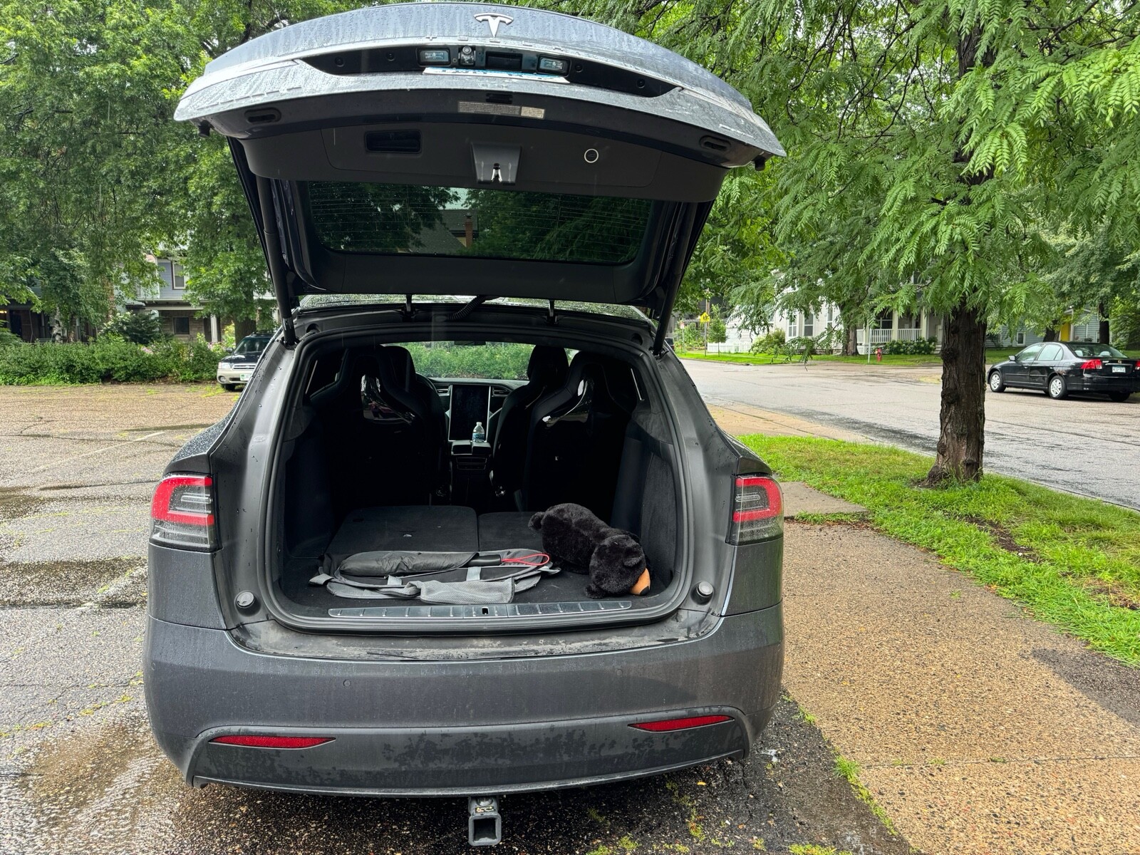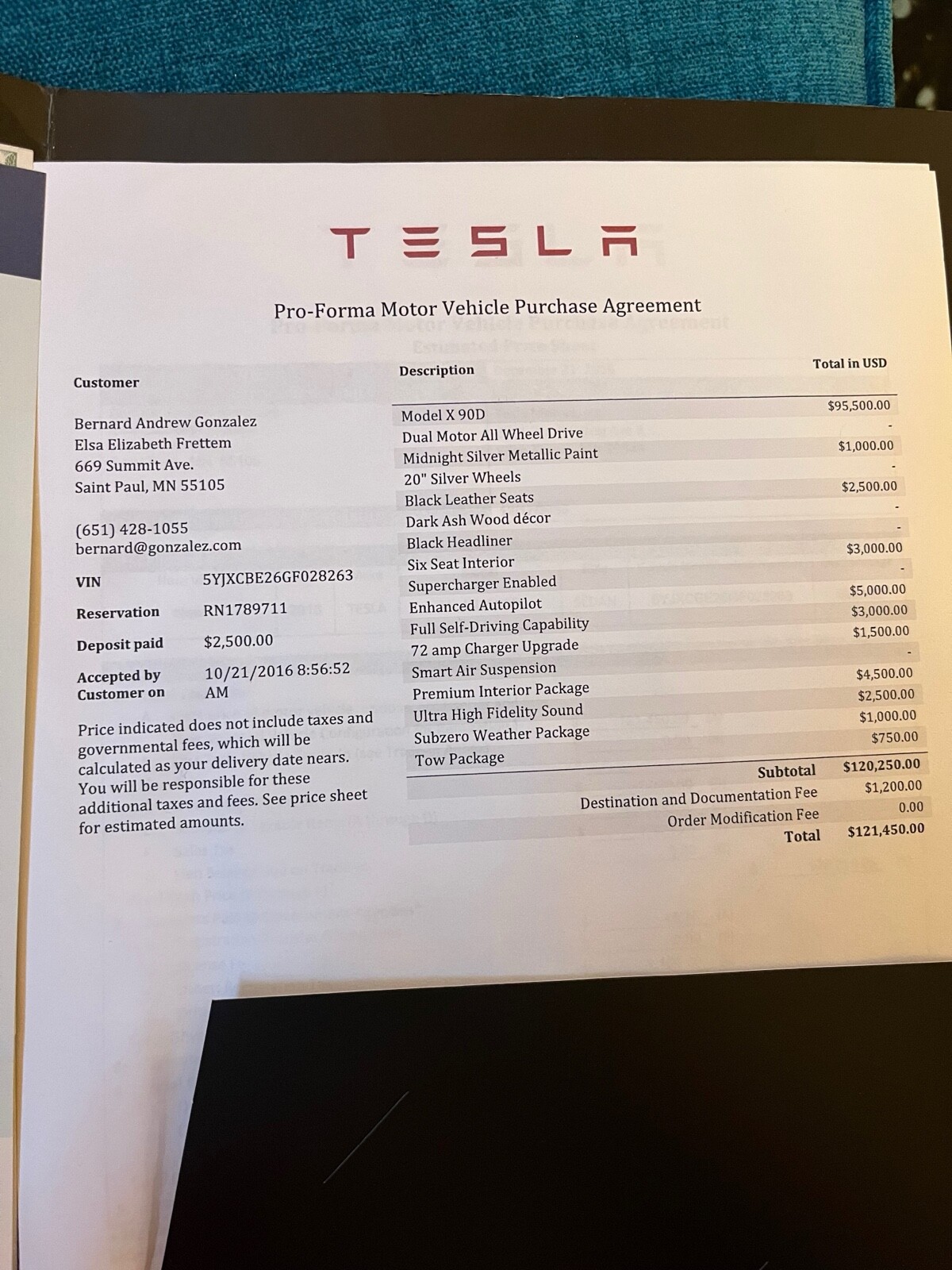 Loaded.We added every option we could. Upgraded processor and 75 Watt charger added. Small ding (<2 in) in right rear panel. Last month Tesla fixed a rattle in the drive train for 2K at Maplewood Tesla. CV joints replaced 5 years ago.