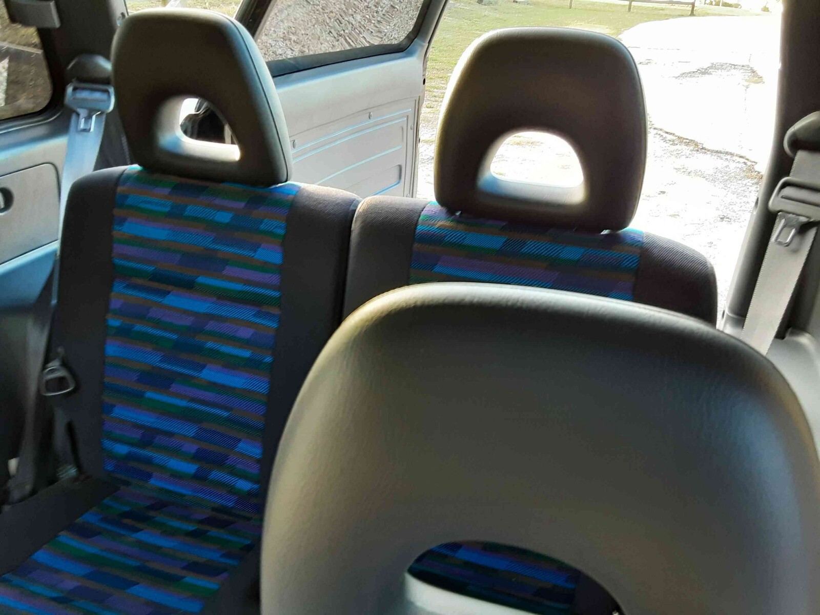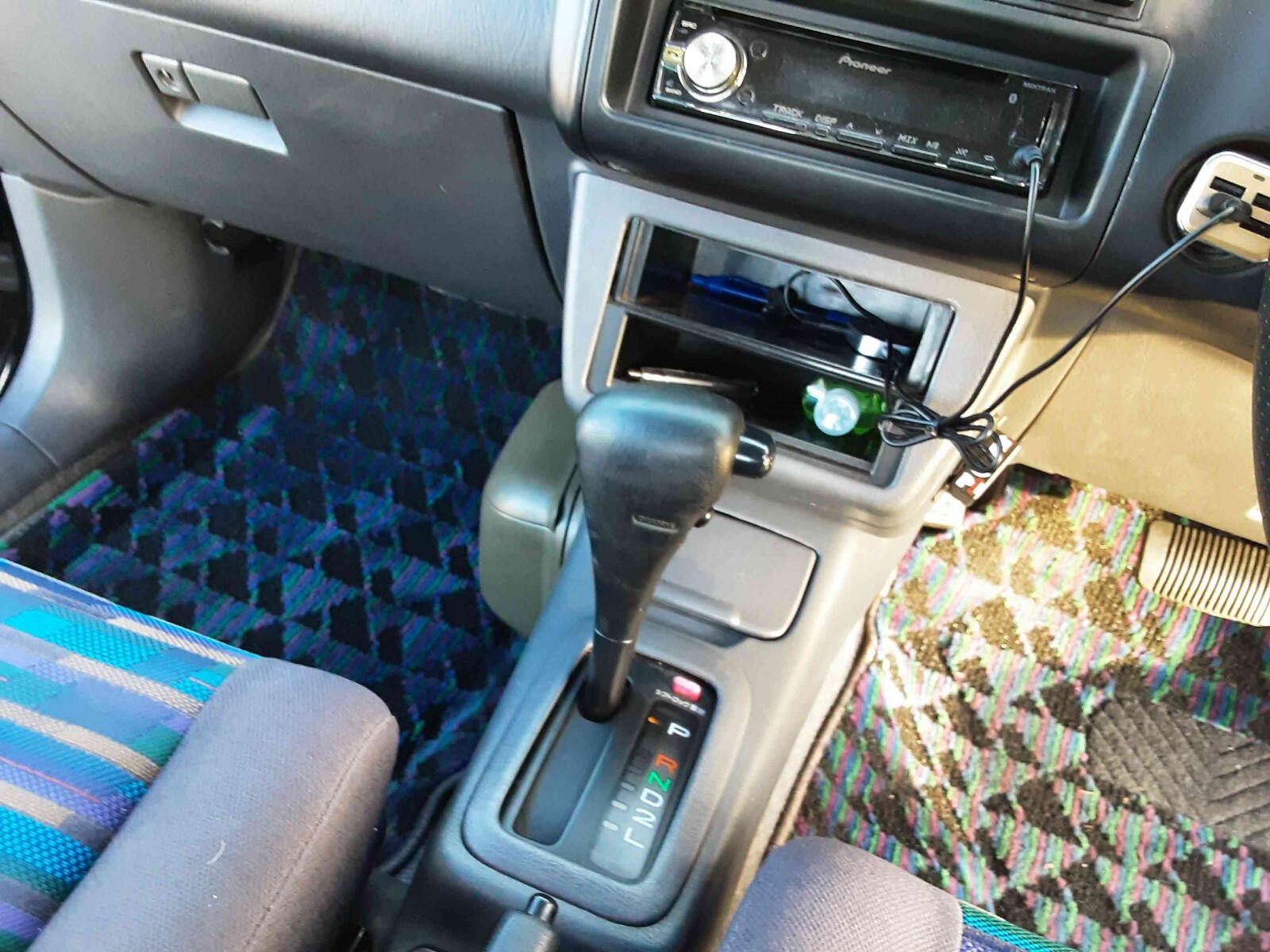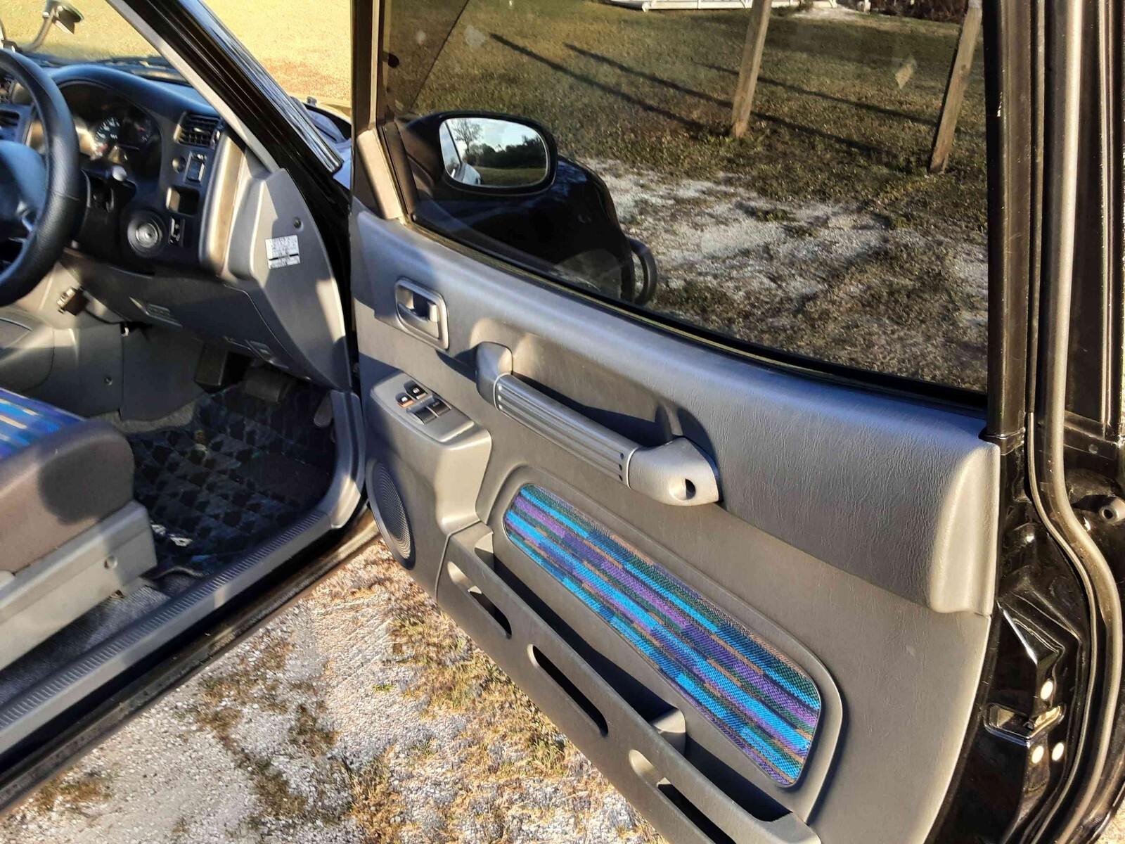 Factory equipment includes full-time 4WD, a rear wiper, a tailgate-mounted spare tire, cloth upholstery, power windows, power locks, power mirrors, and air conditioning.