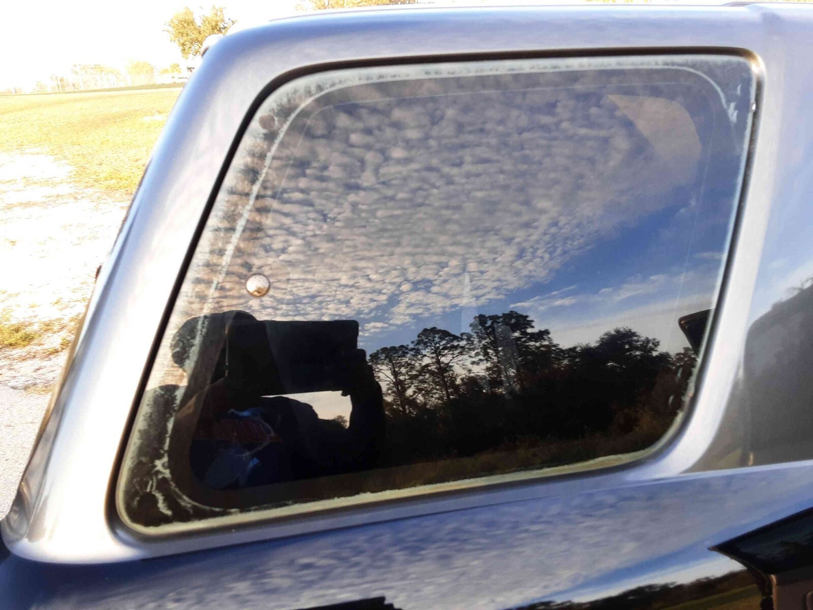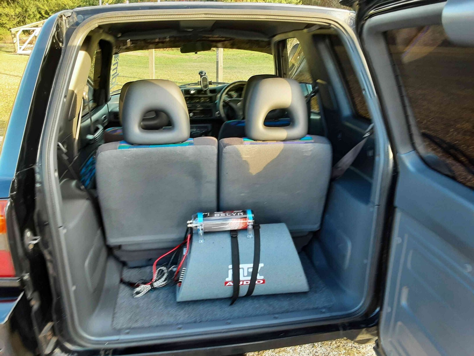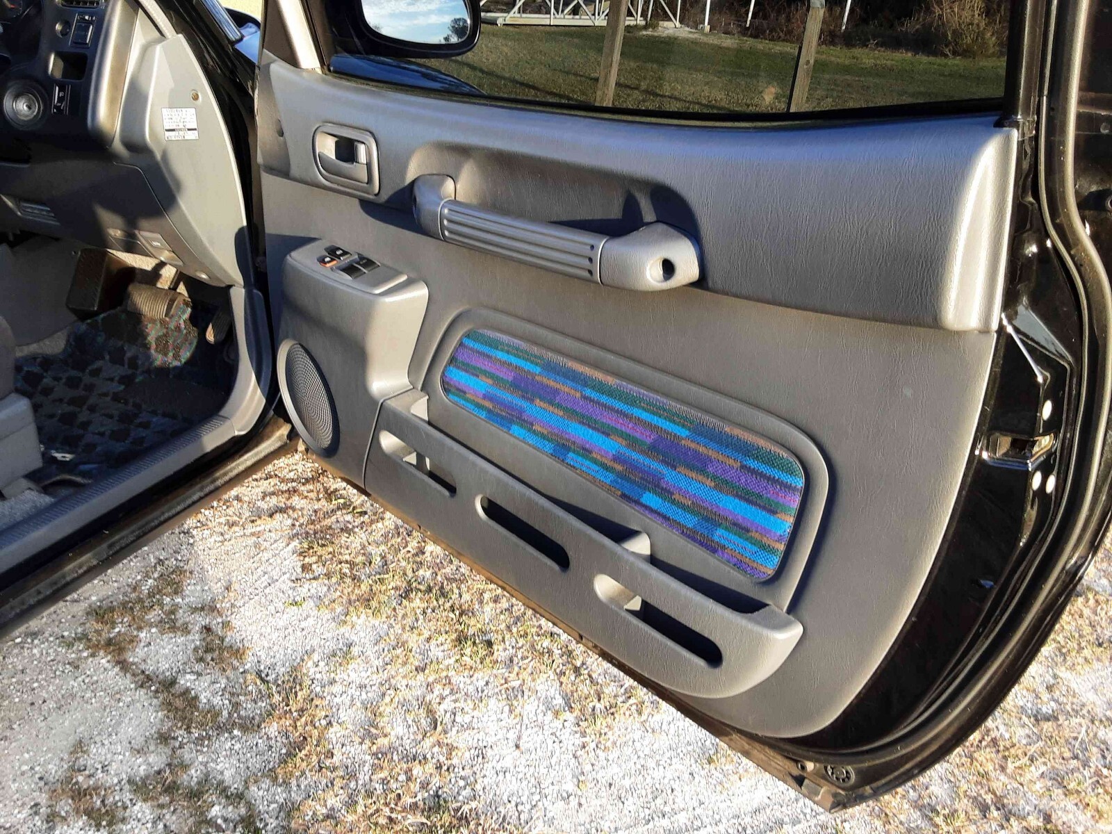 Factory equipment includes full-time 4WD, a rear wiper, a tailgate-mounted spare tire, cloth upholstery, power windows, power locks, power mirrors, and air conditioning.