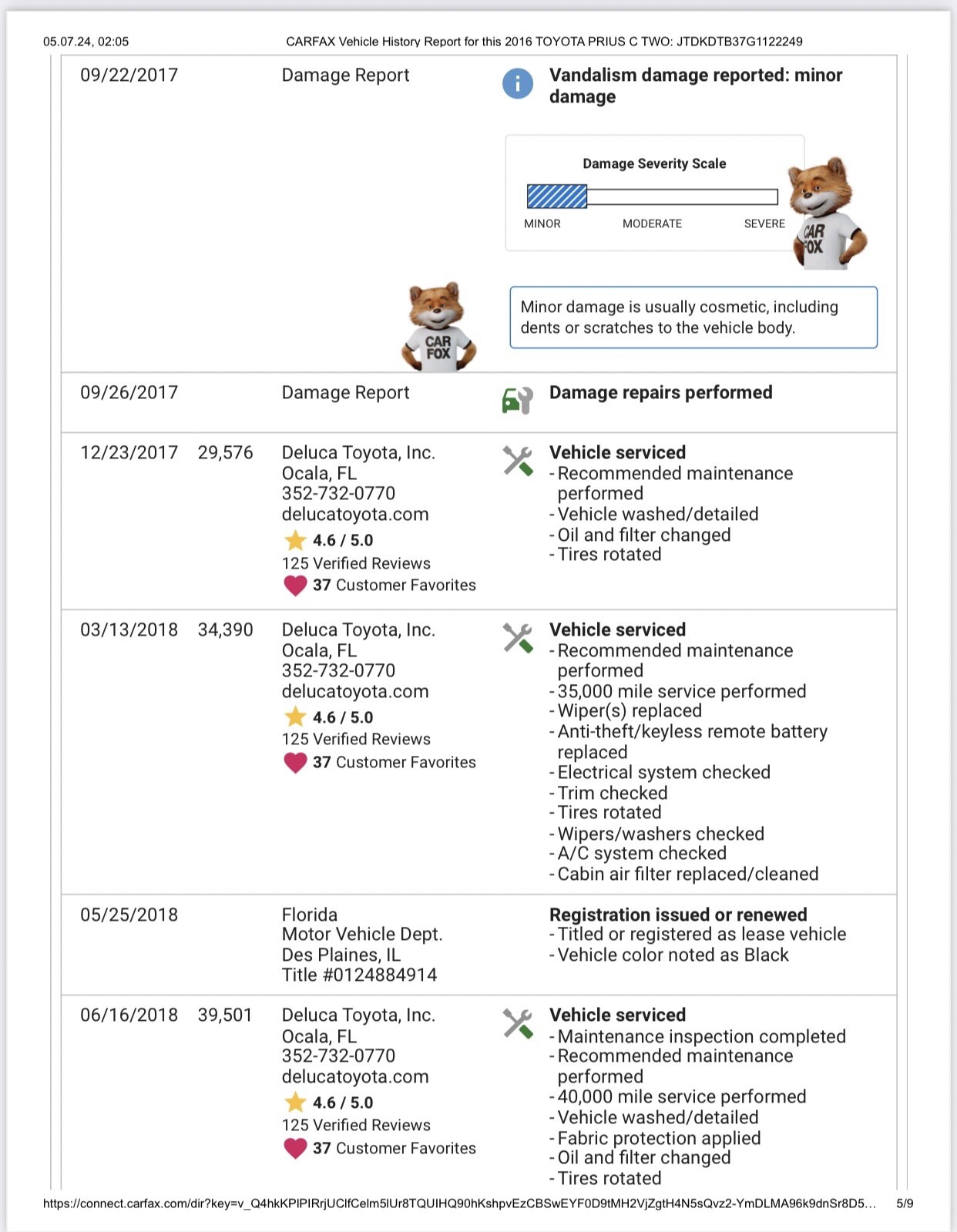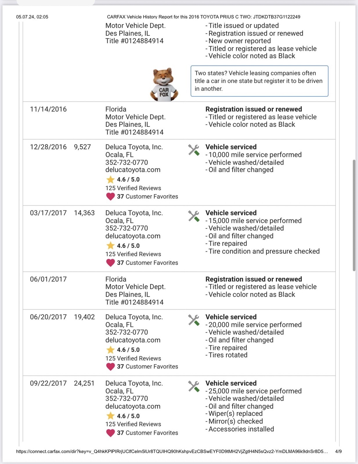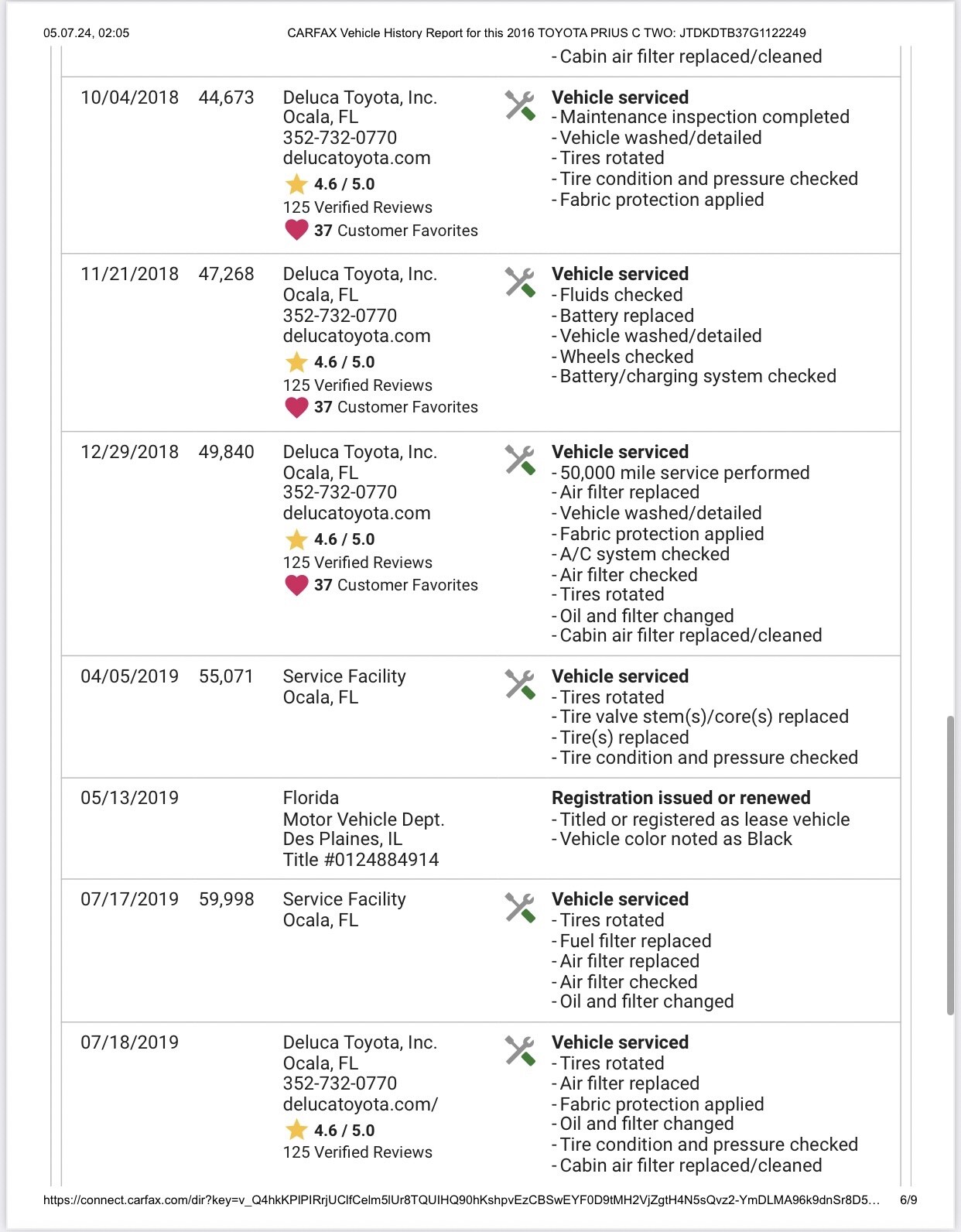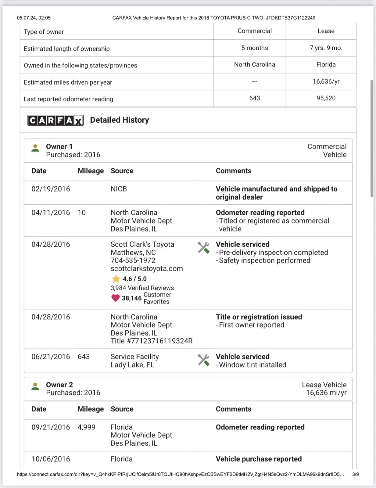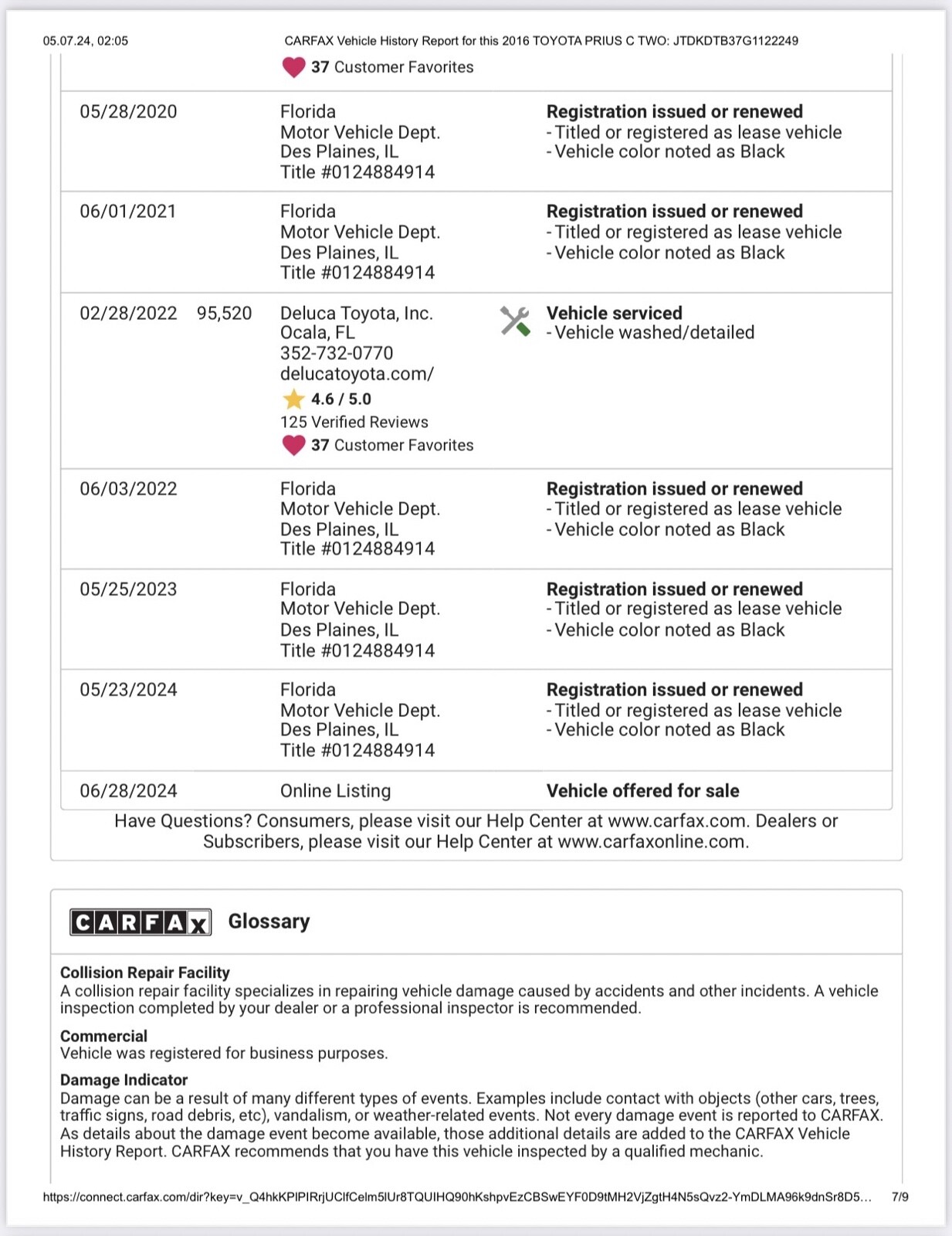 Clean title. Runs great. Maintenance record. Miles over 130 k. as is. *For Florida buyers + taxes&title transfer.Seller's Notes