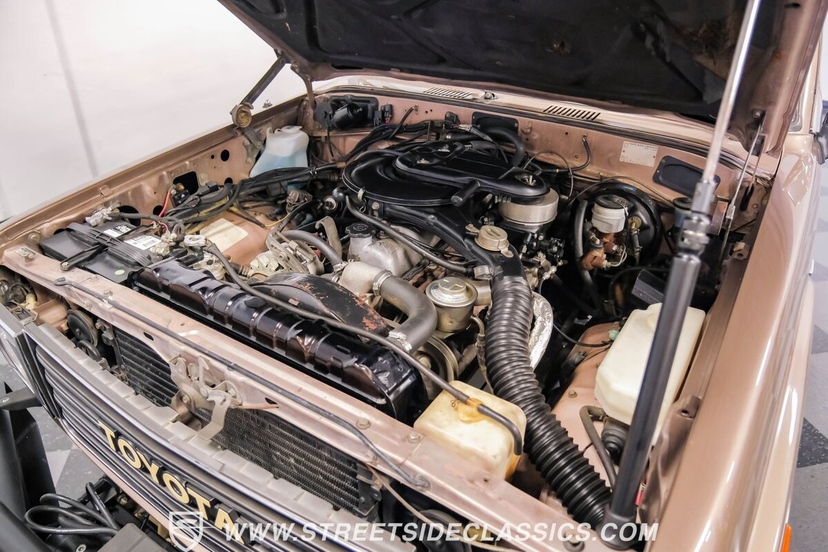 Under the hood, the 4.2-liter 2F inline-six was fitted with Holley Sniper electronic fuel injection by Goode's Off-Road in Rowlett, Texas, in October 2021. Further services performed under current ownership involved adjusting the valves as well as replacing the radiator, water pump, thermostat, exhaust manifold, oil pan, timing cover, fuel filter, battery, coolant fan and hoses, drive belts and motor mounts. An H55 five-speed manual transmission and a replacement dual-range transfer case were additionally installed and route power to the rear or all four wheels. Additional work performed since 2021 involved resurfacing the flywheel, resealing the rear axle, cleaning the fuel tank and replacing the clutch master and slave cylinders.