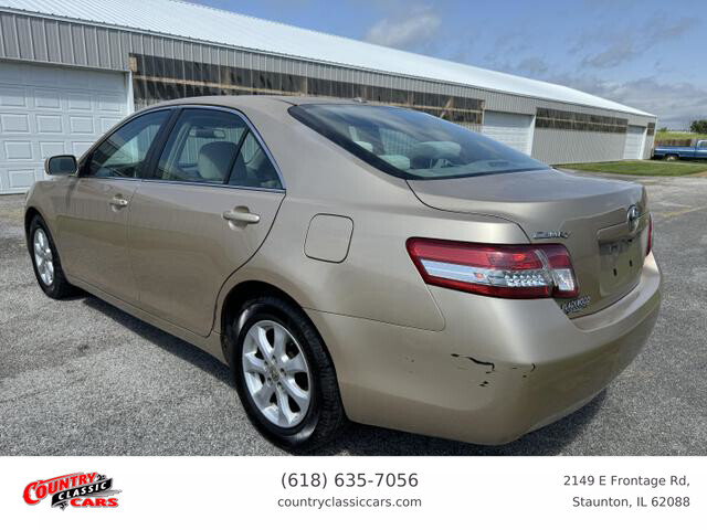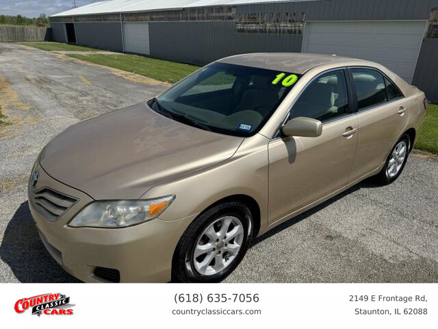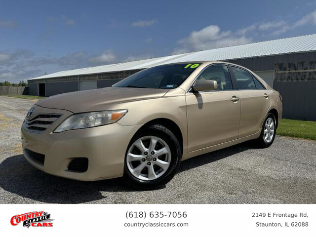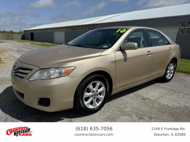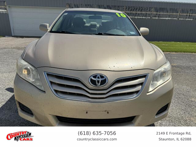 Available now is this 2010 Toyota Camry LE 4 door sedan finished in tan over a tan cloth interior. This Camry is powered by the 2.5L inline 4-cylinder engine mated to an automatic transmission and runs and drives excellent. Air conditioning blows cold. This Toyota is a single owner car with a clean Carfax reports showing no accidents. Has paint fade / peeling on hood, roof, and trunk lid.