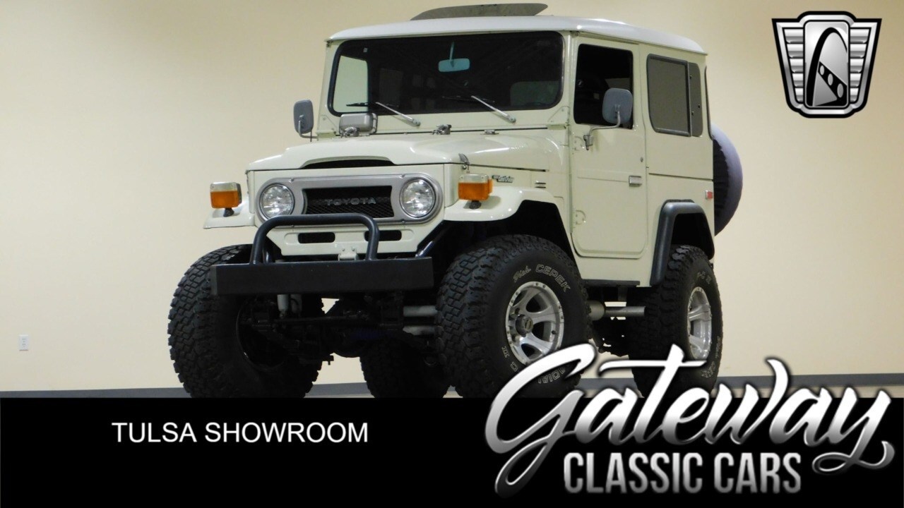 Introducing the nostalgic 1977 Toyota FJ 40, a classic embodiment of Toyota's legendary off-road prowess and dependability. This model boasts a striking white exterior that beautifully contrasts with its black vinyl interior, imbuing it with a timeless appeal that is sure to turn heads.