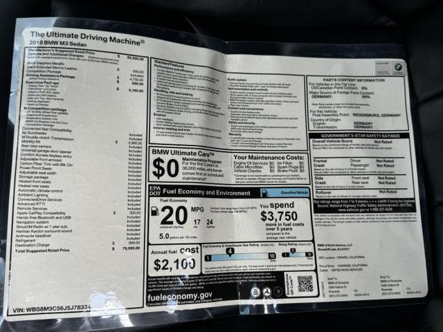 Carbon Fiber (Front Inlets, Roof, Rear Diffuser, Interior Trim ,Rear Spoiler), CS Style Hood, Upgraded Exhaust, Upgraded Taillights, Heated Seats, Lane Departure Warning, harman/kardon Sound, Daytime Running Lights, Head-Up Display, Parking Assistant, Park Distance Control, Dual Power Seats, RWD, LED Headlamps, Dynamic Cruise Control, Competition Pkg, Driving Assistance Pkg, Executive Pkg, Keyless Entry, Dynamic Stability Control, Backup Camera, Premium Wheels 19'+, 6-Spd Automatic, Navigation System, Keyless Start, Leather, ABS (4-Wheel), 6-Cyl, Twin Turbo, 3.0 Liter, Bluetooth Wireless, BMW Assist