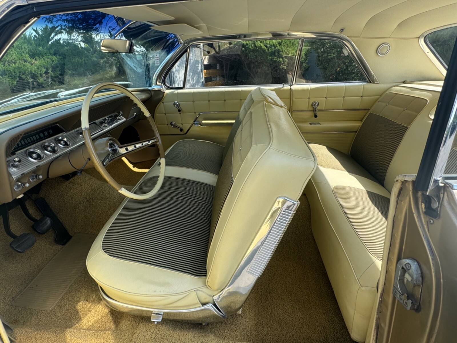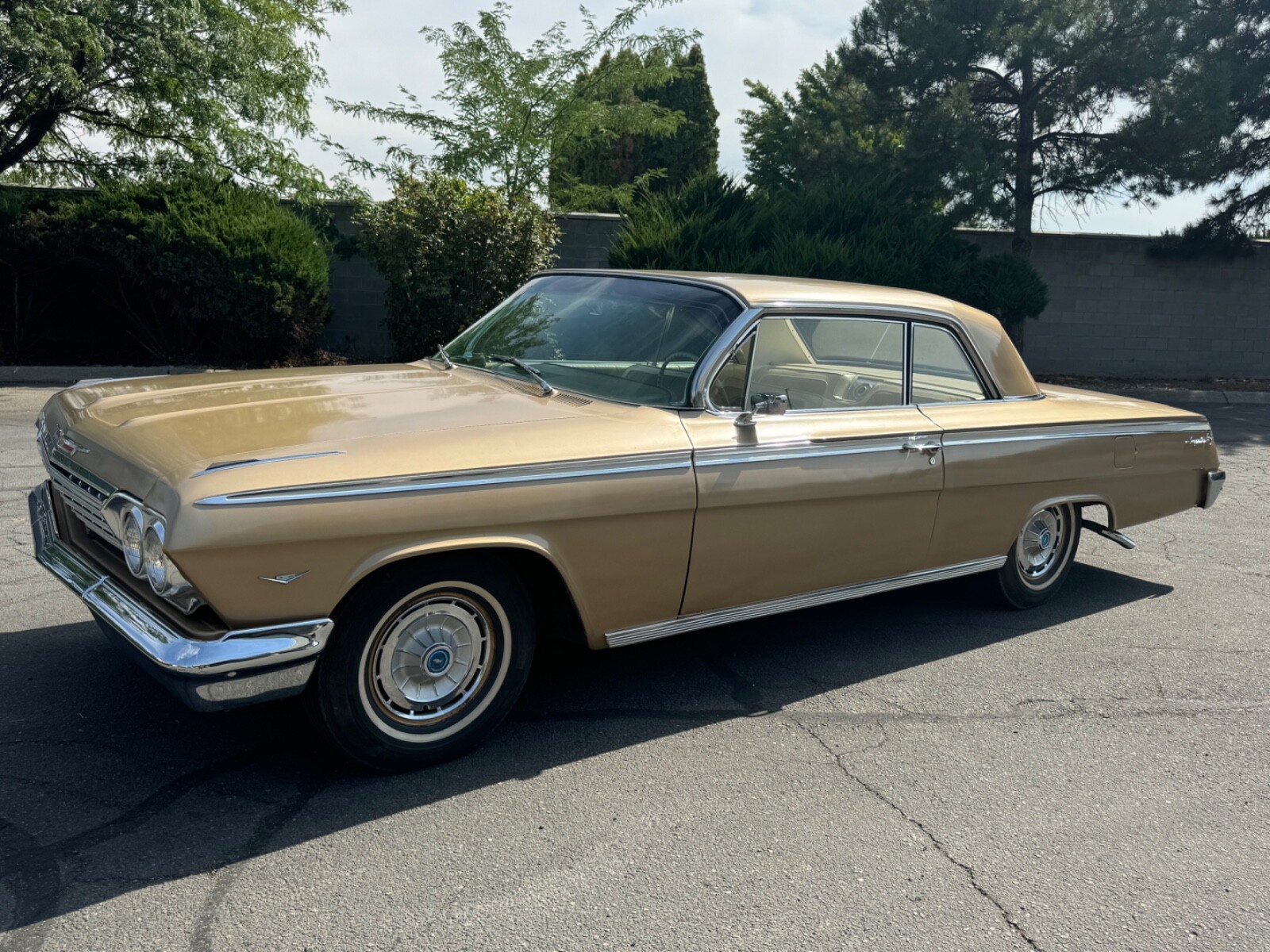 This is an all original 1962 Chevrolet Impala 2 door hardtop sports coupe with 89,951 original miles. This car has only had 2 owners. Has a 283 V8 engine and 3 speed manual transmission. The car was sitting in a garage for 20 years until it was recently pulled out and and given a full complete detail and gone through mechanically. All gas was flushed out. New gas tank, filter, and fuel pump was installed. Carburetor was rebuilt. Car was given a full tune up. Brakes have been gone through. All fluids and filters were changed. Car runs and drives very good. I have driven it on the freeway at 70 mph with no issues. Everything in the car works correctly such as turn signals, gauges, lights, wipers, heater, horn, radio, ect. Speaker for radio needs replaced. The car has its original paint code 927 anniversary gold. The paint is in good original condition. Especially for it being 63 years old. Body is solid and straight. Has all its original GM metal. I was told no body work, pans, or panels have ever been changed out. All trim, chrome, and glass is in good original condition. The interior is in excellent original condition. It has its original trim code 892 gold cloth and vinyl. The dash pad does not have any cracks in it. This car has always been garage kept. This is a true survivor. Has a clean and clear Idaho title. It’s ready for its new home. If you have any questions or would like to know the buy it now price please call us at 208-258-9927. This is a landline and does not accept text messages. We are a dealership in Boise, Idaho. If you need help with getting the car shipped we can assist with getting you a discounted rate. Just let us know your city, state, and zip code and we can gladly get you a shipping rate. A $1000 non refundable deposit is due at time of sale and the remaining balance is due within 3 days of sale.