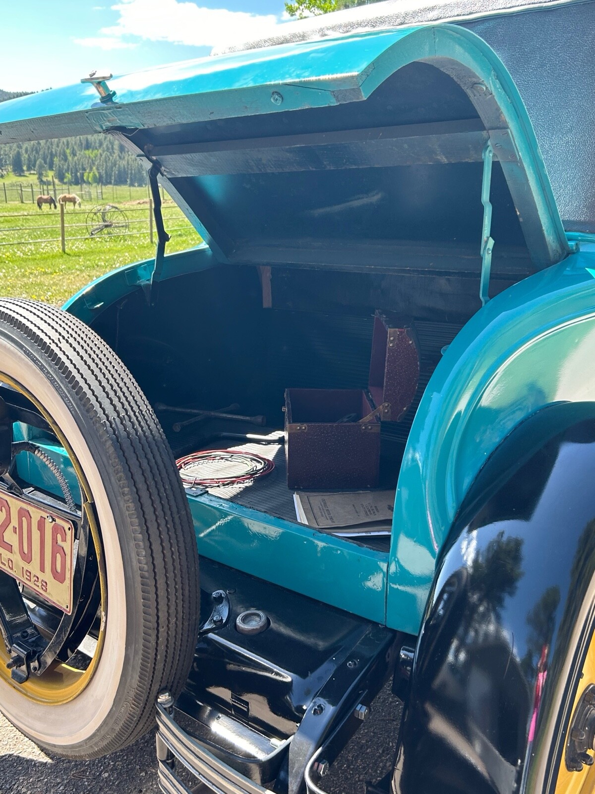 Engine turns over, but I have been unable to start. Husband passed away a few years ago. He could get it started as you see in the drive in photo but I have not been able to. I’m not exactly sure which gauges work, but maybe all of them since the new wiring was completed. Wiring harness was custom made to order for this make and model . Fuel pump is electric as the vacuum pump is not reliable in the mountains. I do think my husband said this car could run about 55 mph. Paint is probably a 6, there are a couple of scratches, etc . Vinyls top is “pebble” texture and on great condition, interior is a nylon material that looks like the original mohair. You will have questions that I will be happy to reply to the best of my knowledge and I can send photos as requested. Great over all car!!