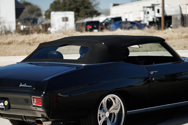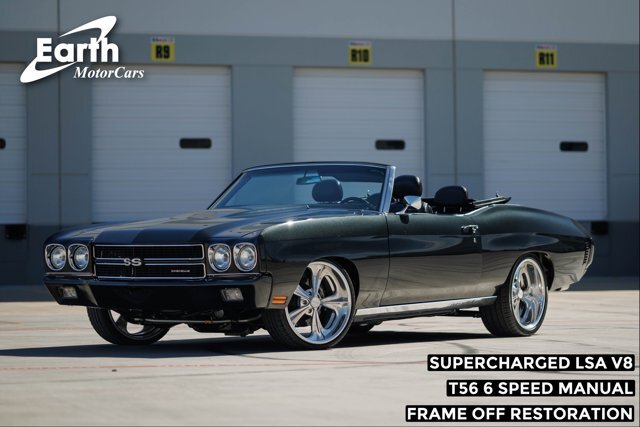Earth Motorcars is excited to offer this amazing: 1970 Chevrolet Chevelle SS Restomod Convertible. This custom 1970 Chevelle convertible recently received a frame-off restoration and only has 500 miles since completion. It is an outstanding example of a well-executed Resto-Mod. This Pro-Touring Chevelle was professionally restored and upgraded with a supercharged 6.2-liter V8 LSA Chevy engine and a T56 6-speed manual transmission mated to a custom Hurst shifter. Providing the stance and ride quality is a modified Heidts front and rear independent suspension. Outside, the goal was to keep the car's body lines as close to original as possible, and this high-quality restoration spared no expense with subtle modifications, like tightened bumpers painted to match the body, SS badging and many premium billet parts. It is finished with high-quality, high-gloss graphite black metallic paint, accented by SS-style ghost stripes along the tail and hood. Tucked behind the wheels you will see the shiny black 6 Piston front calipers of the Wilwood disc brakes. The one-of-a-kind interior features all-custom black leather SS bucket seats with center and back consoles, Grant SS steering wheel, Vintage Air, power windows, power top, billet pedals and custom-fabricated leather dash with blue LED Dakota Digital gauges. The stereo features a RetroSound head unit with built-in color LCD display, Bluetooth/AUX/MP3 playback all powered by a Kenwood amplifier along with Kenwood speakers. Completing the menacing look is a set of custom 20-inch chrome Esajian Viper wheels fitted with Lexani tires. This custom Chevelle convertible has been turned into a modern-day classic with all the greatest technology.All of our classic cars go through our rigorous inspection and items that need repair get fixed unlike cars bought at auctions, So rest assured that you are getting a quality classic car! All classics are sold Miles Exempt regardless of what the odometer shows. This vehicle may be eligible for our EXTENDED WARRANTY that covers a wide variety of components (certain exclusions apply).....Please ask your sales representative for details. Welcome to Dallas Fort Worth's Premier Lotus, Luxury, Exotic and Classic Cars Dealership. We specialize in offering the Finest Vehicles, Providing Outstanding Customer Service, Obtaining the Best Financing Options and Stocking a Large Selection of Luxury Vehicles, Exotics, Classic Cars and More! See for Yourself what Thousands of Customers have Discovered over the Years and Make your Next Purchase from Earth MotorCars! Our Goal is to Make you a Customer for Life! Learn more about us by calling 214-483-9040 or via e-mail at . Visit us on our Website at