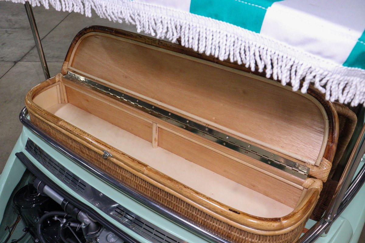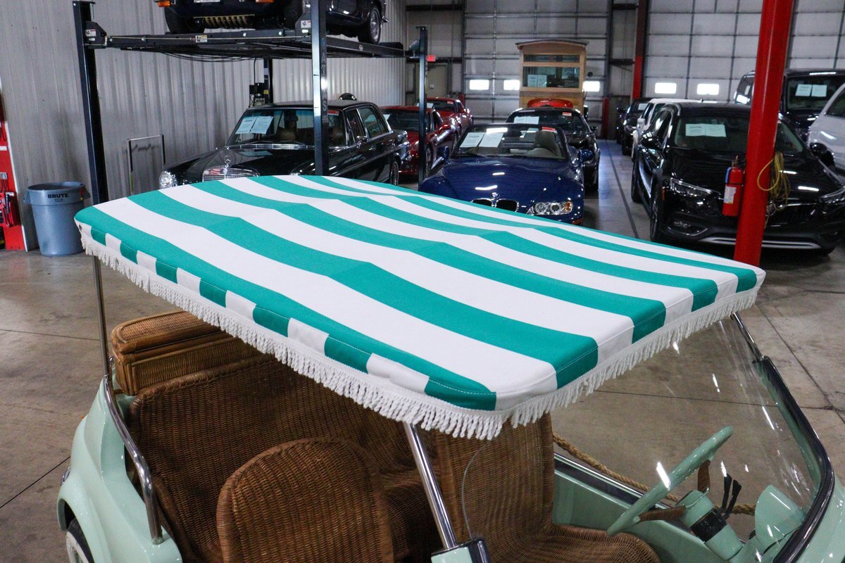 This one was done to a very high standard with the proper wicker seats, wicker steering wheel highlight, wide white wall tires, canopy top with stripes, and gauges. Owner has routinely had the oil and screen changed out each fall and always kept indoors and stored in a climate friendly environment. Vehicle runs and drives quite nicely and is a joy to experience. Pack up the picnic basket and load up a few friends and go experience your favorite spot in style.