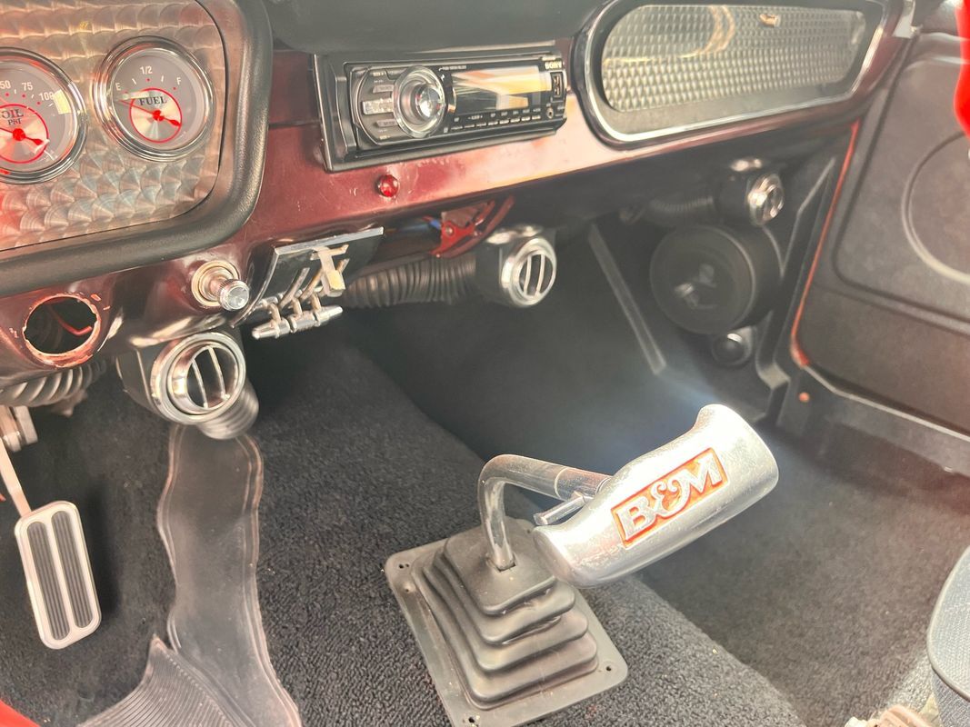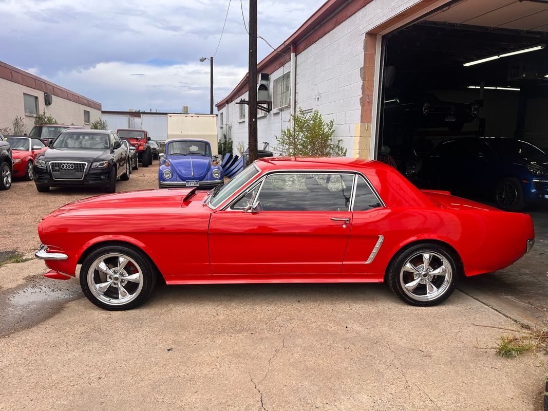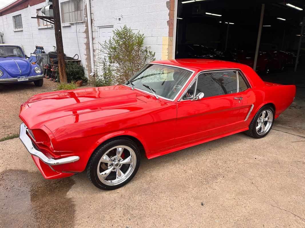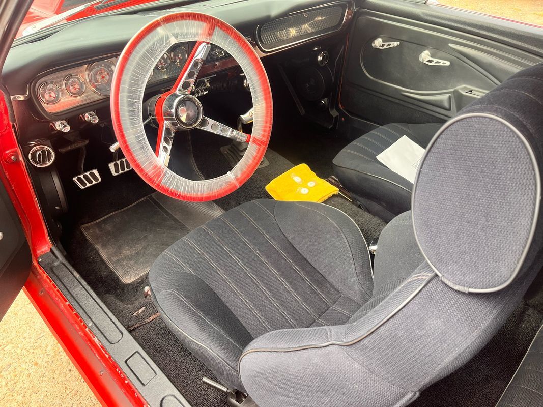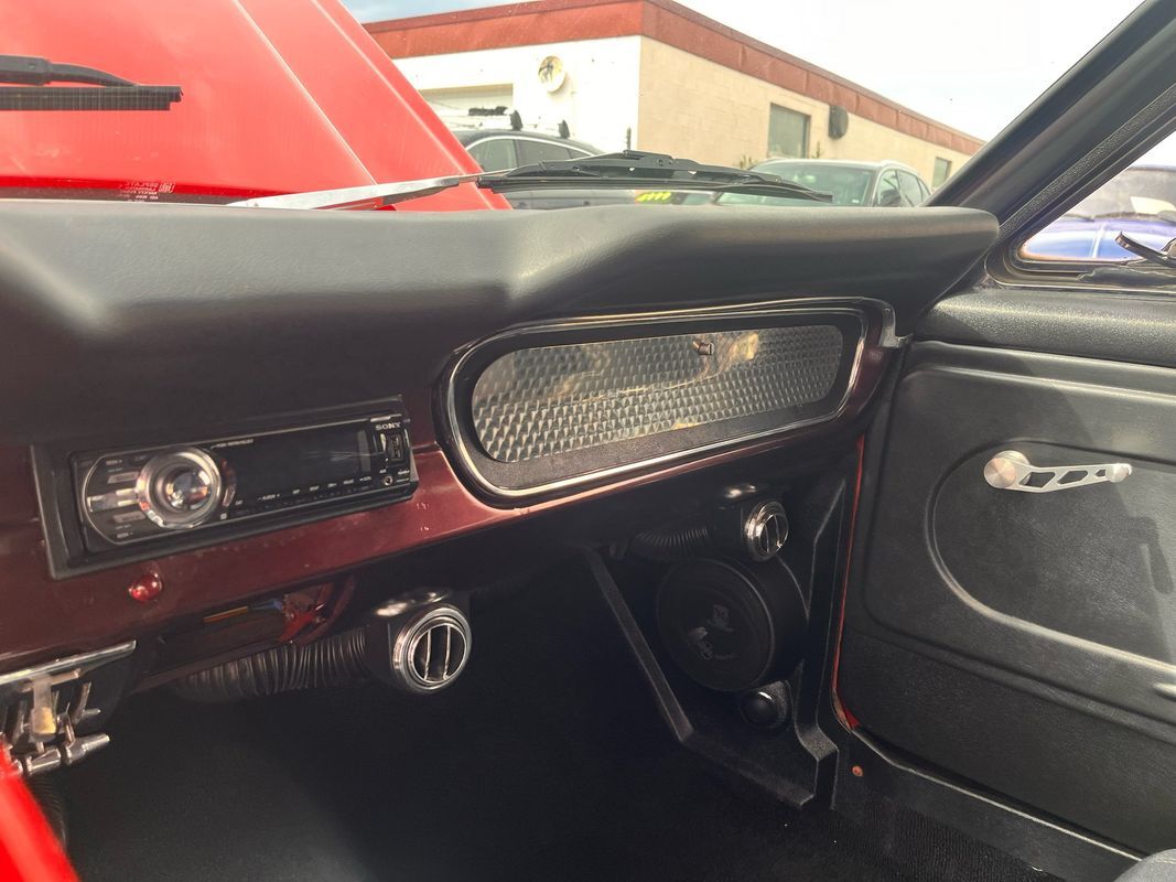 1965 Ford Mustang coupe Restomod with a 1989 Mustang 5.0L V8 with A/Cand 4-speed manual. This Mustang gets all the looks with it new Red paint and rust free body. Has custom fiberglass hood and body kit for a nice custom look. The inside has also been redone with nice back cloth bucket seats, and all new carpeting. Has a really nice upgraded with all new gauges however they are currently not working. This would be a great car for someone who likes to tinker as it still needs a little bit of modifying to get it to 100% but not much as it runs and drives just fine and the way it sits. All the glasses in good shape and the windows roll up and down nicely. Has custom chrome wheels with low profile tires that are nice shape. Has upgraded brakes front and rear. The battery has been relocated to the rear of the vehicle to make room in the engine bay for all the Electronics. This is an absolutely amazing car and sounds so good when youre driving it and turns heads everywhere you go. If you watch auctions on TV, you see these resto mod Mustangs selling for $80-$130,000 so dont delay as this car will not last long at this price, you couldnt begin to build it for this. Call Motors for additional information or to schedule an appointment time to view the vehicle in person. This car will need some tlc and is sold As Is things we know about gauge cluster is not functioning, clean up the wiring, a little bit under the dash, and some miscellaneous trim on the interior.