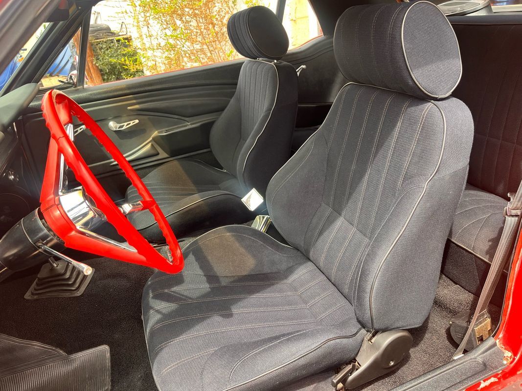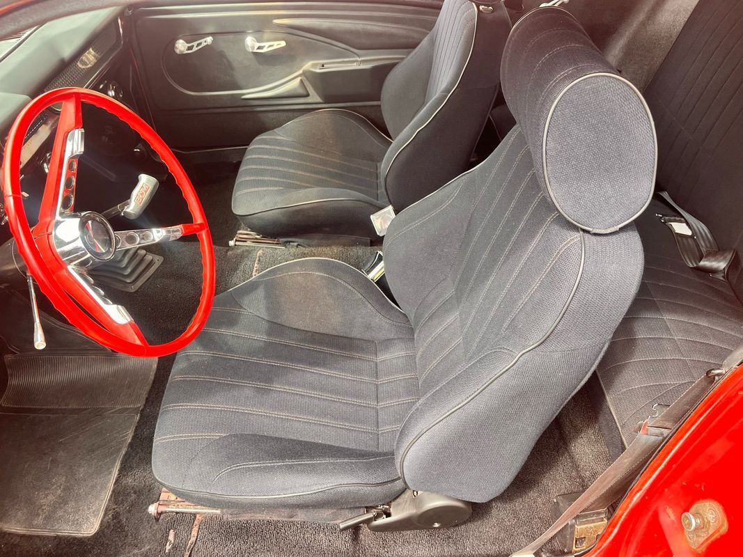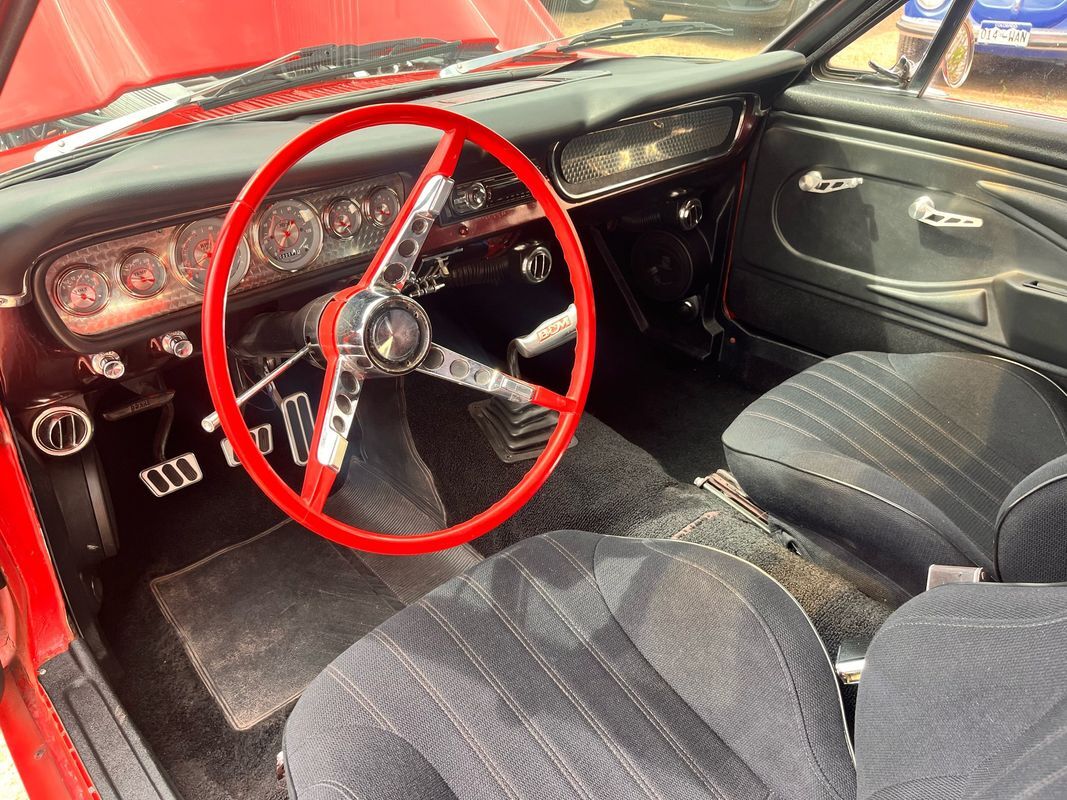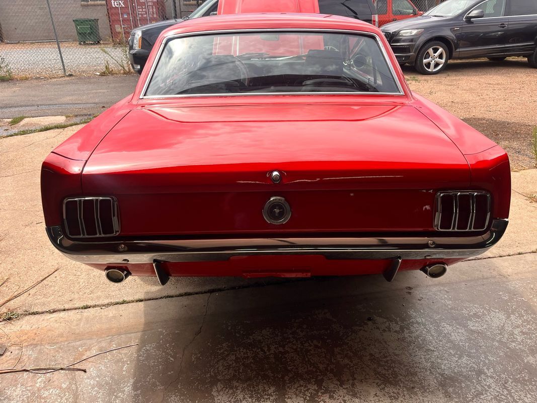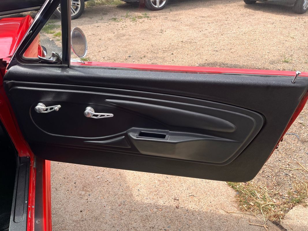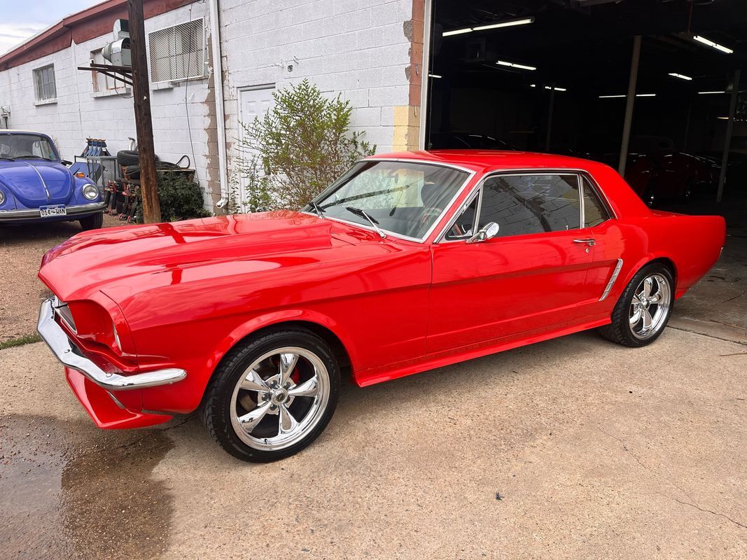 1965 Ford Mustang coupe Restomod with a 1989 Mustang 5.0L V8 with A/Cand 4-speed manual. This Mustang gets all the looks with it new Red paint and rust free body. Has custom fiberglass hood and body kit for a nice custom look. The inside has also been redone with nice back cloth bucket seats, and all new carpeting. Has a really nice upgraded with all new gauges however they are currently not working. This would be a great car for someone who likes to tinker as it still needs a little bit of modifying to get it to 100% but not much as it runs and drives just fine and the way it sits. All the glasses in good shape and the windows roll up and down nicely. Has custom chrome wheels with low profile tires that are nice shape. Has upgraded brakes front and rear. The battery has been relocated to the rear of the vehicle to make room in the engine bay for all the Electronics. This is an absolutely amazing car and sounds so good when youre driving it and turns heads everywhere you go. If you watch auctions on TV, you see these resto mod Mustangs selling for $80-$130,000 so dont delay as this car will not last long at this price, you couldnt begin to build it for this. Call Motors for additional information or to schedule an appointment time to view the vehicle in person. This car will need some tlc and is sold As Is things we know about gauge cluster is not functioning, clean up the wiring, a little bit under the dash, and some miscellaneous trim on the interior.