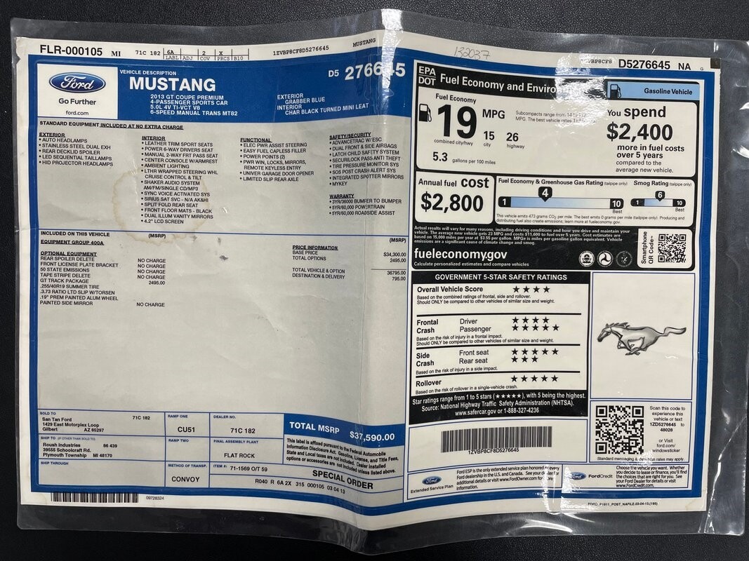22K ACTUAL MILES SUPERCHARGED COYOTE V8 6 SPEED MANAUL GRABBER BLUE LOW PRODUCTI