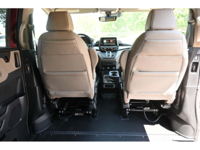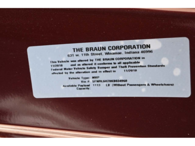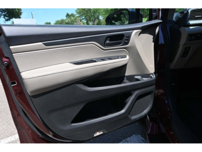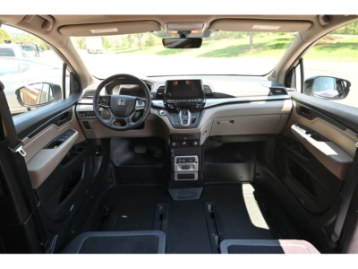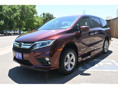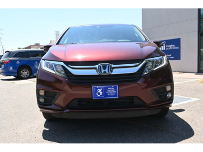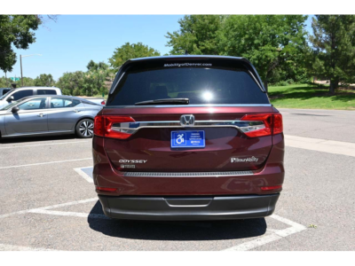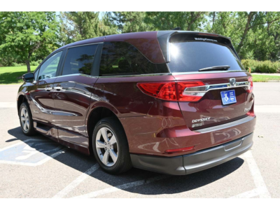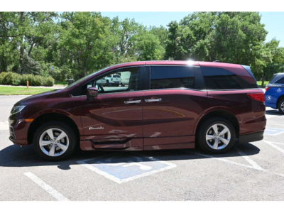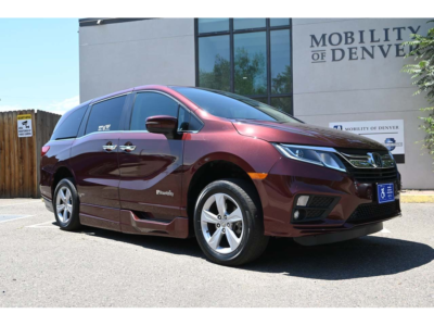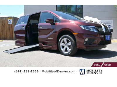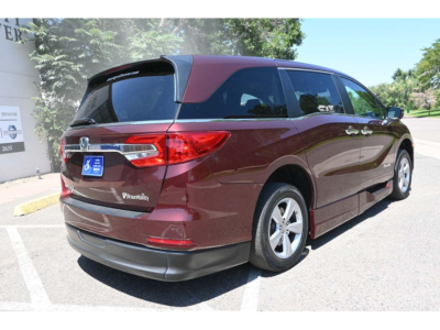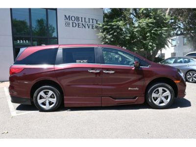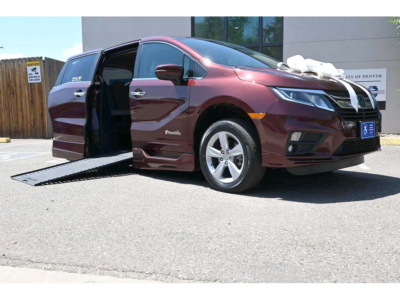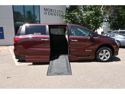 Door Opening Height: 54.5" and width: 30.25". 2019 Honda Odyssey EX-L Braunability in-floor Side Entry wheelchair accessible ramp van for sale. In great overall condition. The newly designed Braun power conversion is built on the state-of-the-art Honda Odyssey chassis. A great looking and highly functional vehicle, this conversion boasts: 54.5in tall door opening, 30.25in wide ramp with 1,000 lbs weight rating, 59.5in clearance inside, and two quick release removable Front Seats. This EX-L model Odyssey is packed with many top-of-the-line Honda options like; Apple CarPlay/Android Auto, Honda Sensing (HSE), new center console electronic shifter set up, Red exterior, tan leather interior, alloy wheels, tires have 60% tread life, full lowered floor, power side load in-floor ramp, Q'straint restraint system rails throughout, kneeling feature, front step flares, AM/FM/CD Satellite, Navigation, moon roof, Rear Entertainment, back-up camera, steering wheel controls, advanced key-less entry remote with power; windows, locks, lift-gate, and mirrors, rear privacy glass, automatic 3-zone climate control with front and rear Heat/AC controls, power front seats, cruise control, dual power sliding rear doors, remote start, tire change tools, original owner's manuals, powerful 3.5L Honda V6 motor and front wheel drive with 10-speed automatic transmission. This vehicle is currently available for sale at Mobility of Denver, located at: 2311 S Platte River Drive, Denver CO 80223. We don't charge a Dealer Handling Fee and are now your mobility one-stop-shop. Just give us a call as we offer it all: sales, service, parts, and rentals. Open M-F 9am - 6pm. Sat by appt. Call 303-351-7379.