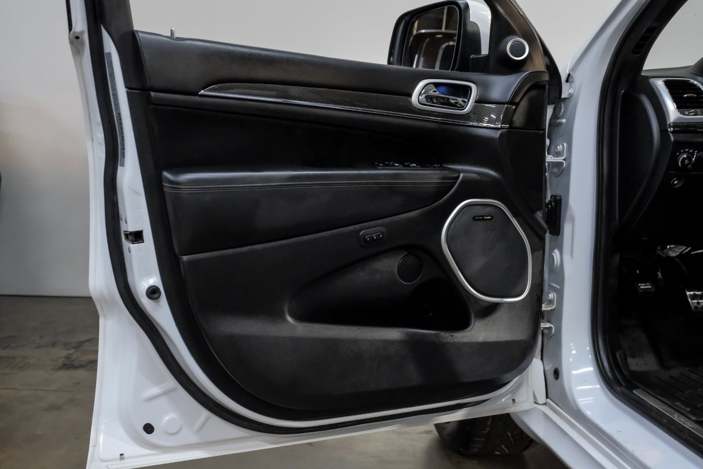 The exterior of this Grand Cherokee SRT is a sight to behold. The crisp white color not only adds a touch of class but also highlights the vehicle's bold and aggressive stance. Its muscular lines and distinctive design cues make a statement wherever you go, ensuring that you turn heads and command attention on every road.