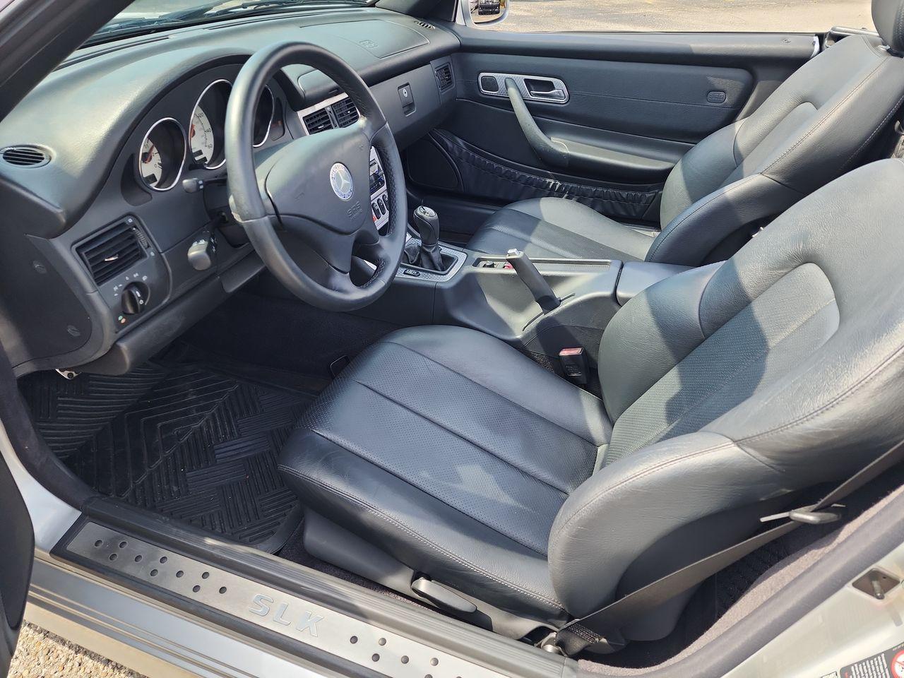 RARE 6SPD MANUAL TRANSMISSION! Super clean and low mileage SLK230 Kompressor with the powerful, reliable, and fuel efficient 2.3L Supercharged 4cyl engine mated to the super fun to drive 6spd manual transmission. 2001 was the first year the 6spd manual was offered, and one of the last years for the 2.3L Kompressor engine before it was reduced to the 1.8L. Super clean condition inside and out, this car has been very well cared for and always garage kept. A local trade in here on a Ford truck, this car was previously owned by an older family member of the previous owner who inherited the car and traded it in here. The paint and body are in super clean condition with no major cosmetic issues to be noted anywhere. The interior is also very clean with no major wear issues. The car runs and drives great with no known problems to be disclosed and was just fully serviced and inspected including oil service, brake service, and check over. All major functions are in excellent working order including the full power convertible top. Even the wheels are super clean with no major curb damage or corrosion, headlight lenses are clean and clear, etc. The car does have an upgraded Bluetooth Sirius XM capable radio playing through the factory premium sound system and does come with the original Cassette player as well. An exceptionally clean and low mileage example and a rare find with the fun 6spd manual transmission!!