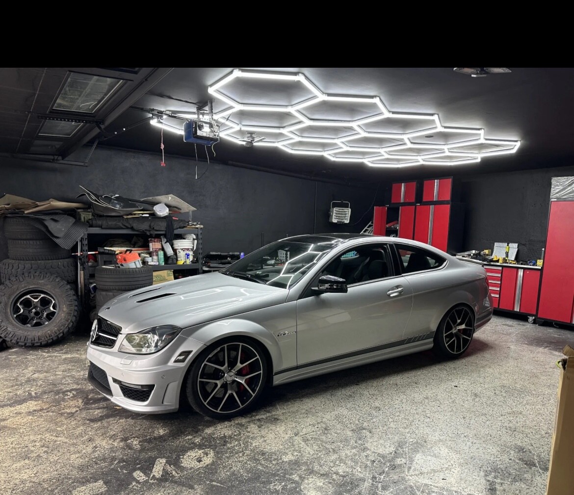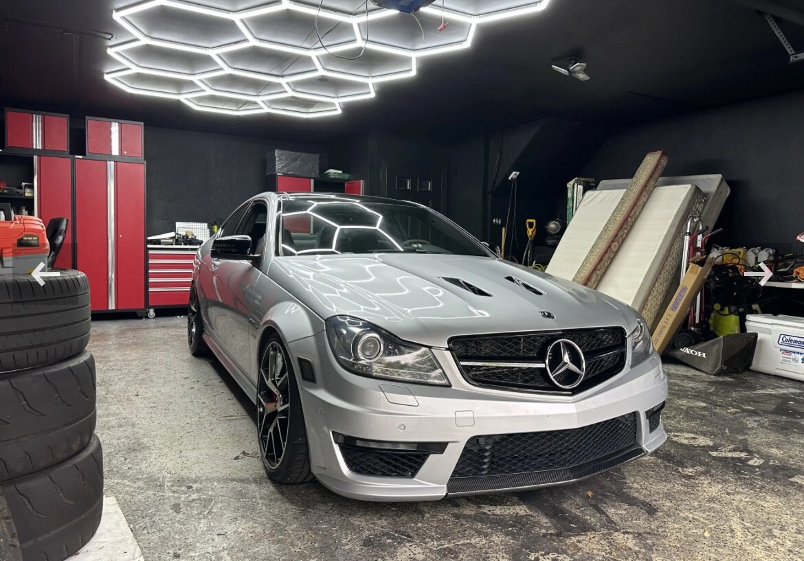 This 2015 Mercedes-Benz C63 AMG Edition 507 coupe was initially delivered to Mercedes-Benz of Honolulu in Hawaii, and it has 32k miles following the current owner’s purchase in 2024. The car is powered by a 6.2-liter M156 V8 paired with a seven-speed AMG Speedshift MCT automatic transmission and is finished in Iridium Silver Metallic over black Nappa leather upholstery. Edition 507-specific equipment includes upgraded engine components, re-mapped engine management software, a vented aluminum hood, and gloss black exterior trim. Additional features include KW coilovers, an aftermarket exhaust header and ECU tune, a carbon-fiber decklid spoiler, 19? forged alloy wheels, bi-xenon headlights, Parktronic, heated power-adjustable front seats, a panoramic sunroof, Keyless Go, Blind Spot Assist, CVehicle Details