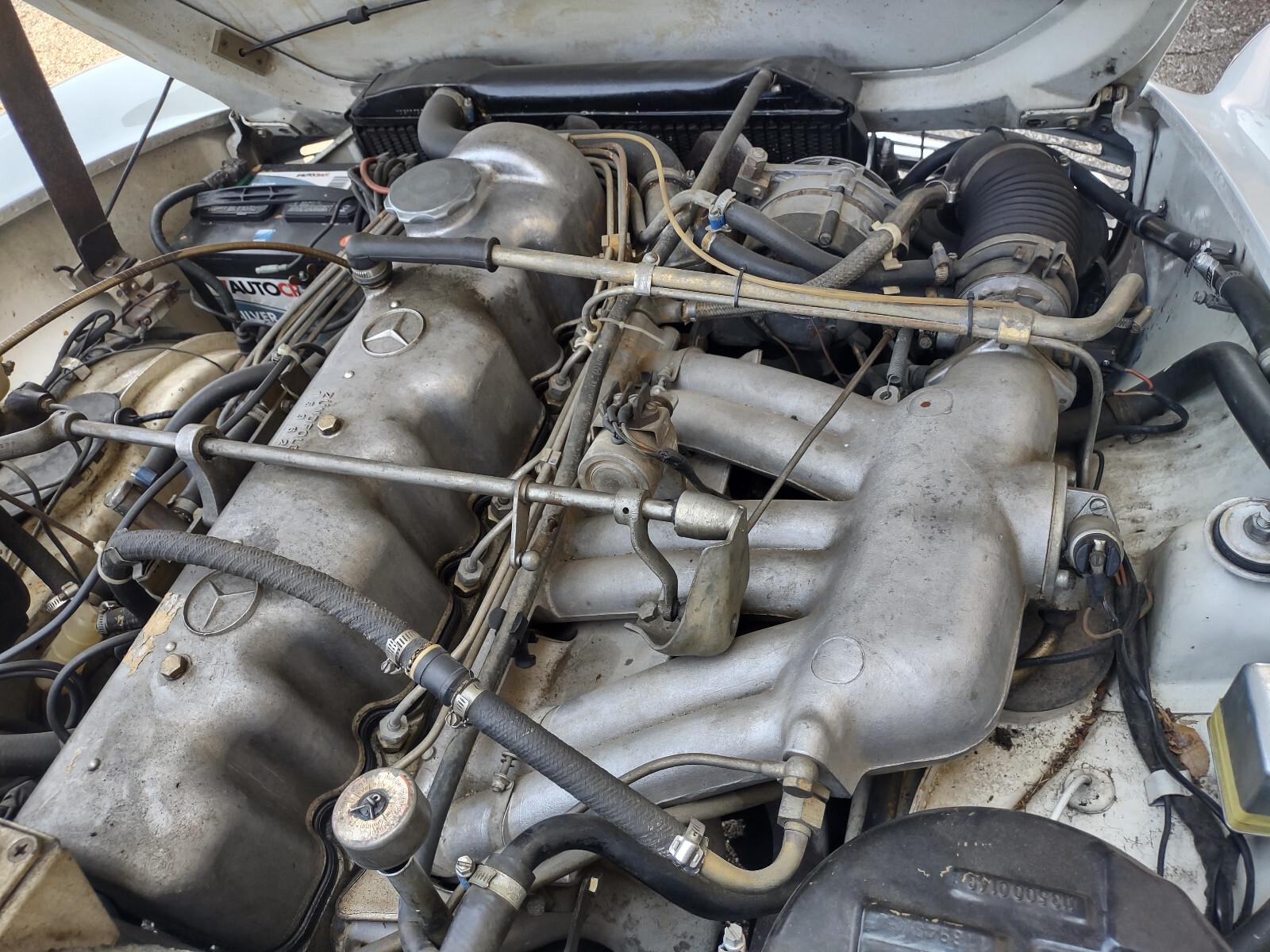 The long time owner of this beautiful Mercedes recently passed and his family asked me to find her a new home. The family asked me to put a very low reserve on the car. As you can see, she has always received the utmost of care and maintenance. I promised to do my best in finding her a good home. Her paint and body are in nice condition with very few nicks or scuffs. You will have to look to find them. Her in-line 6 cly. engine is in great shape, Feels really strong with no noises and always starts right up. Her automatic transmission shifts fine. We replaced the transmission gasket as there was a little fluid around the cork gasket. No leaks on the garage floor. I drove her today (just to check her out you know). AC works fine as well as do the gauges. She has power steering and brakes. The black soft top and the factory hard top are both in nice shape. Back window in the soft top looks like new, no fading. The rubbers all around are in great condition and seal up very good. Also has 195-70-14 Michelin MXL tires, Custom fit all weather cover and the original Becker Europa II AM/FM radio is in the trunk if you would like to remover the 80s cassette player. She still has her books and owner's manual. There's no cracking or worn spots in the dash, door panels, carpets, seats and headliner. The only thing I found needing attention other then the pan gasket was the headlight bezels were slightly fading and one had a small crack. They have been replaced also the steering wheel center cover has a small crack in it but hard to see it in the pics, I can email you my home number if you feel better talking in person or please ask questions through ebay before bidding. Please remember payment in full is due within 7 days from the end of the auction in the form of cash or bank to bank transfer. NO EXCEPTIONS. Buyer is responsible for transportation arrangements within 30 days or so. I can help setup overseas shipping or within the US. Or you can fly in and driver her home. I also have a friend that loves to travel and has a car trailer. Thanks for looking and good luck bidding.