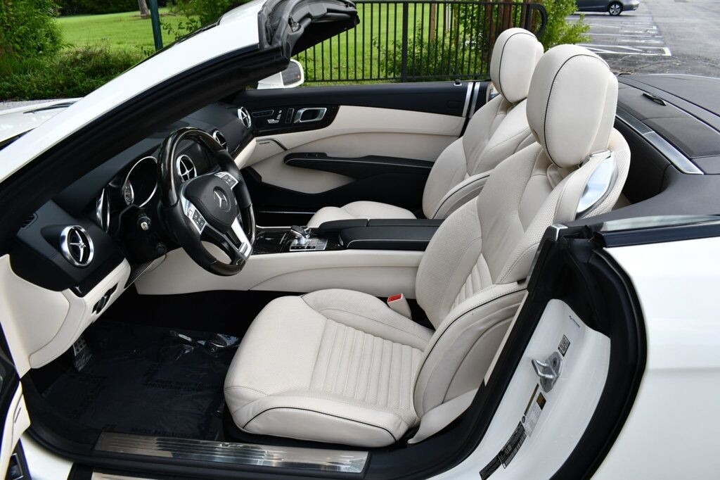 This 2015 Mercedes-Benz SL-Class 2dr SL 400 2 Door Roadster with Premium & Driver Assistance Packages features a 3.0L V6 CYLINDER 6cyl Gasoline engine. It is equipped with a 7 Speed Automatic transmission. The vehicle is designo Diamond White Metallic with a Porcelain/Black Leather interior. It is covered by a limited warranty. - Air Conditioning, Climate Control, Dual Zone Climate Control, Cruise Control, Power Steering, Power Windows, Power Door Locks, Power Mirrors, Leather Steering Wheel, Power Drivers Seat, Wood Trim, Clock, Tachometer, Digital Info Center, Homelink System, Tilt Steering Wheel, Telescoping Steering Wheel, Steering Wheel Radio Controls, Sunroof, Moonroof, Driver Airbag, Passenger Airbag, Side Airbags, Keyless Entry, Security System, Traction Control, Rear Defogger, Fog Lights, Intermittent Wipers, AM/FM, Anti-Theft, Leather Interior Surface, Adaptive headlights, Air Conditioned Seats, Blind Spot Monitor, Bluetooth, Carpeted Floor Mats, Center Arm Rest, Center Console, Collision Avoidance System, Cup Holders, Daytime Running Lights, Front AC Seats, Front Heated Seats, Heated Mirrors, HID Headlamps, Lane Departure Warning, Lane Keep Assist, Navigation System, Parking Sensors, Power Brakes, Premium Alloy Wheels, Premium Sound, Rain Sensing Wipers, Rear Fog Lamps, Reverse Camera, Roll Stability Control, Side Curtain Airbags, Tire Pressure Monitor, Vanity Mirrors, Xenon -